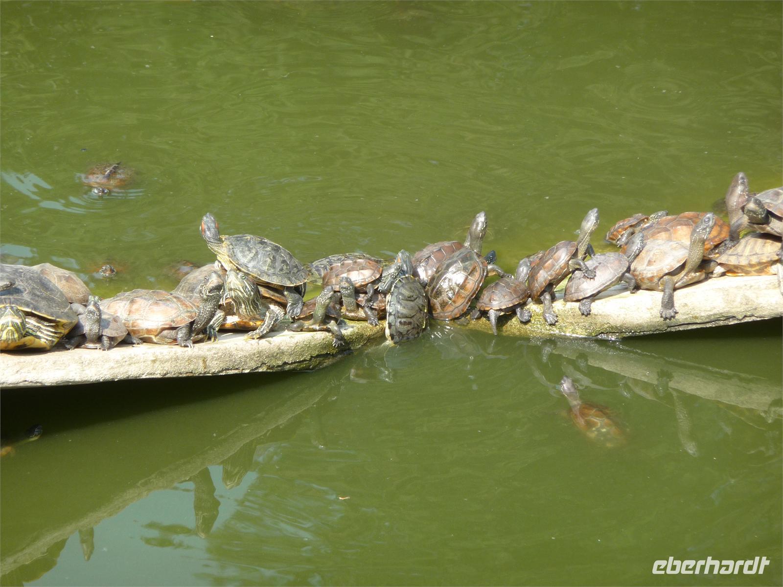 Bei der Besichtigung im "Garten des Meisters der Fischnetze" bleibt etwas Zeit für Ruhe und Erholung. Beim anschließenden Bummel durch Blumen- und Haustiergassen ist davon allerdings nicht mehr viel zu spüren. Teilweise ist es wirklich erschreckend, wie eng die Tiere da zusammenhocken.