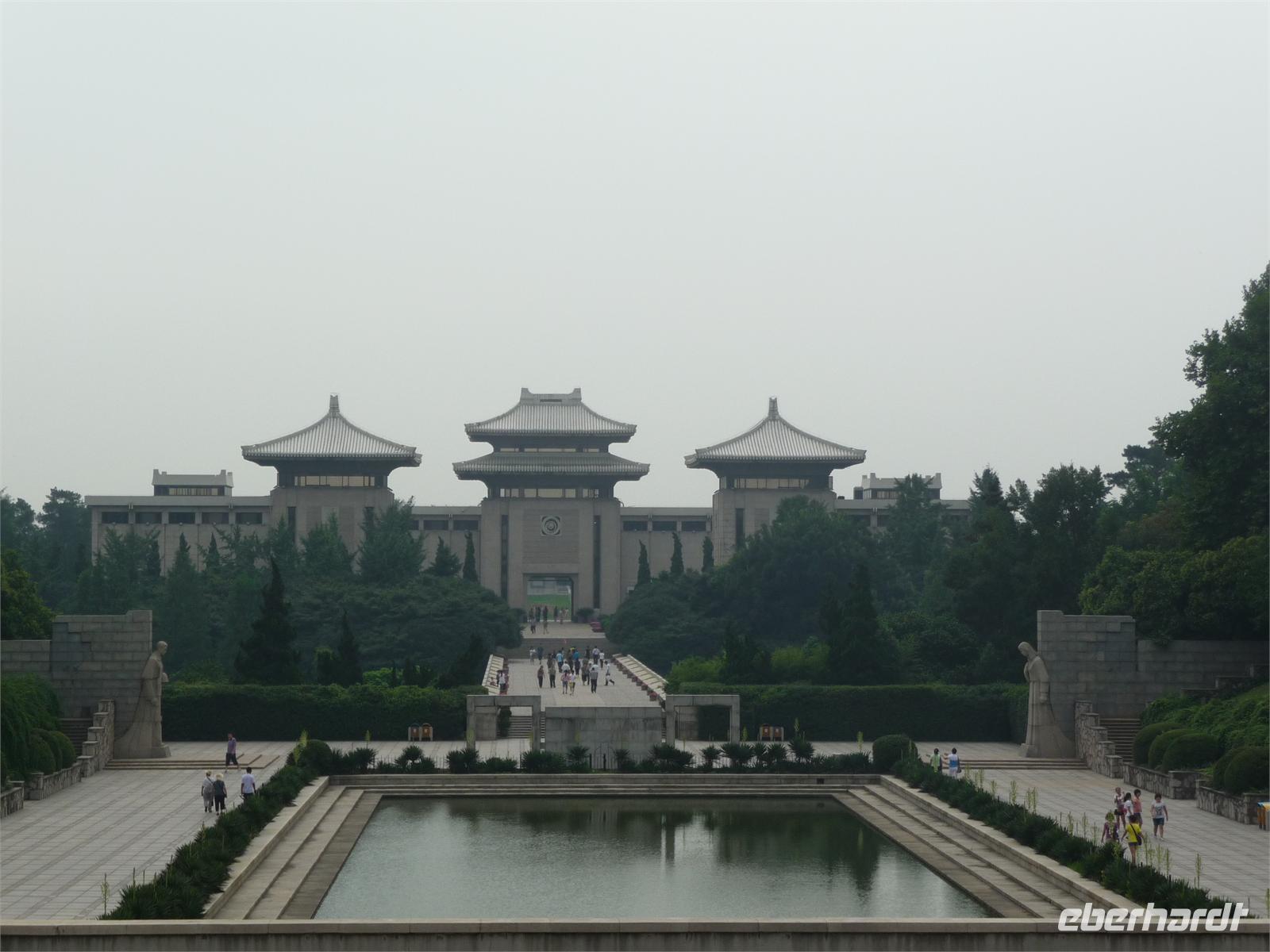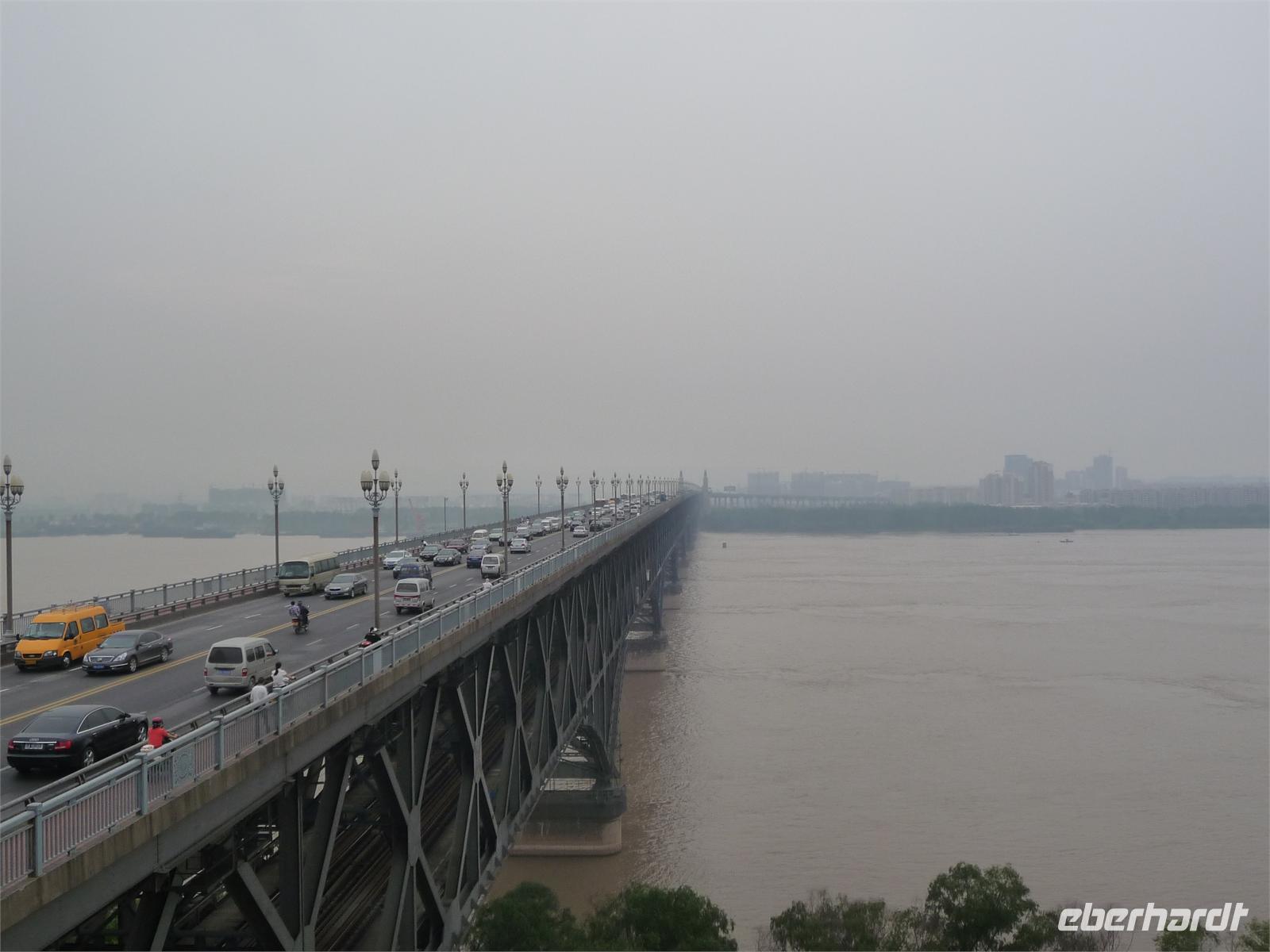 Heute ist ein recht „politischer" Tag, denn wir besuchen den Park und Friedhof der Märtyrer von Yuhuatai, das Mausoleum von Dr. Sun Yat-Sen - der erster provisorischer Präsident der Republik China war - zwischendurch den Trommelturm und die recht hübsche Altstadt mit vielen Geschäften und Restaurants und schließlich die unglaublich beeindruckende Yangtze-Brücke. Mit dem Aufzug fahren wir in dem gewaltigen Brückenpfeiler hinauf und genießen - trotz trüben Wetters - einen tollen Blick auf die unter uns liegende Stadt und den vorbeifließenden Yangtze.