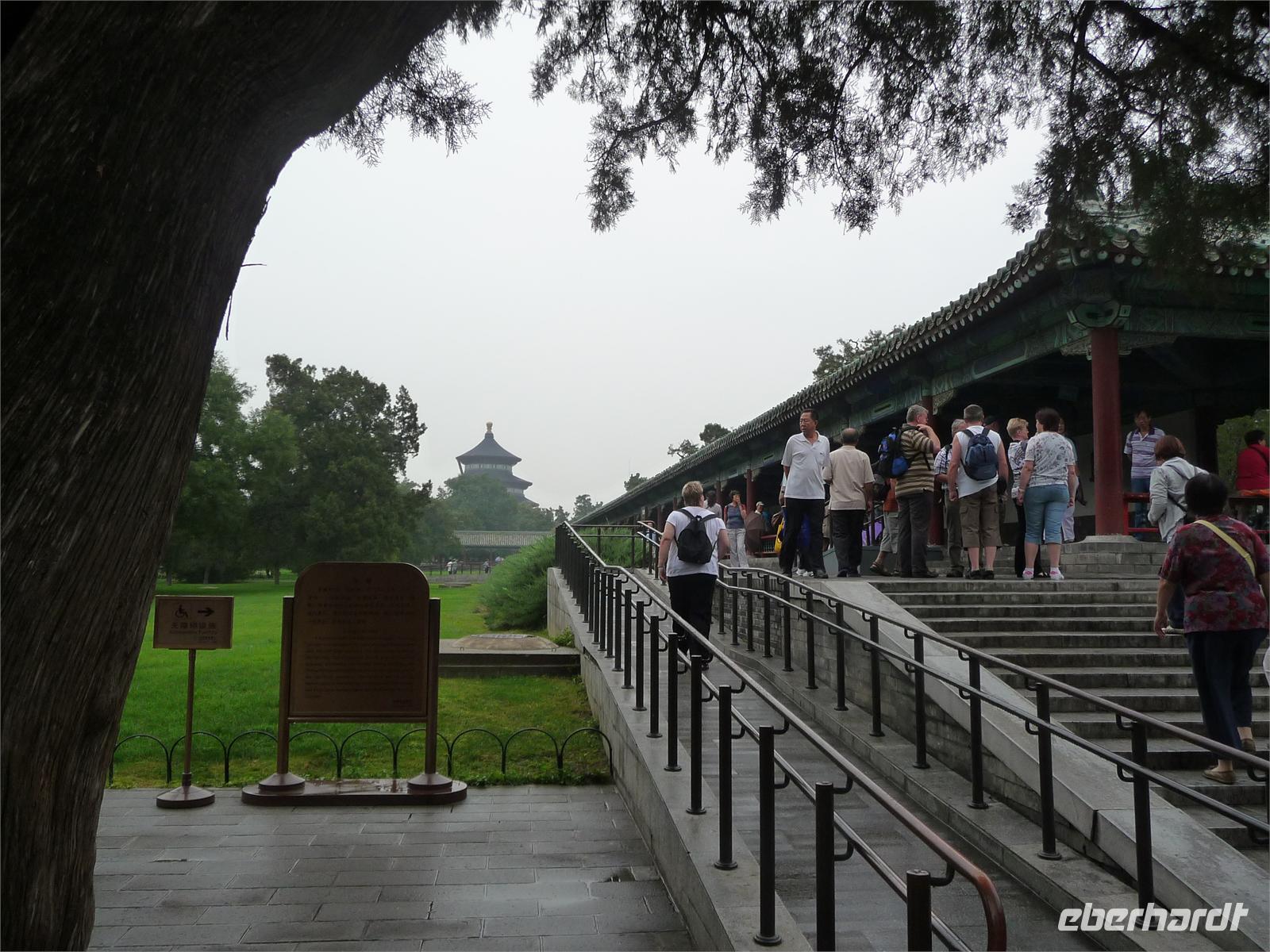 Der Wettergott ist uns heute Morgen nicht hold - es regnet. Nichts desto trotz freuen wir uns auf den bevorstehenden Besuch der Anlage des Himmelstempel. Auch diese beeindruckt uns mit ihrer Weitläufigkeit und den vielen älteren Gäste, die hierher kommen und Sport treiben.