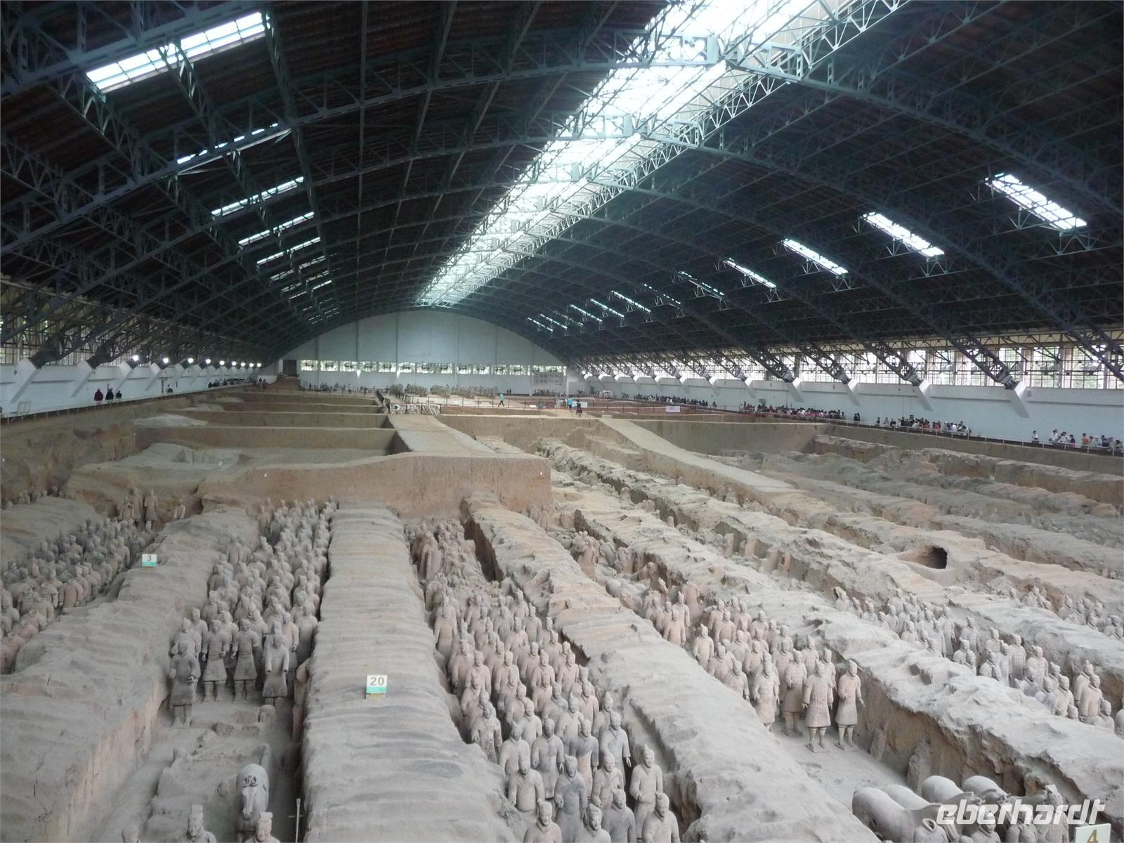 Heute steht der Besuch der weltbekannten Terrakotte-Armee auf dem Programm. Schon während der Fahrt dahin gibt uns der örtliche Reiseleiter sehr interessante Einblicke in deren Geschichte. Später verstehen wir noch besser, warum - denn in den Ausstellungshallen selbst ist es sehr laut, stickig und warm und eine ordentliche Führung vor Ort mit ausführlichen Erklärungen fast unmöglich.