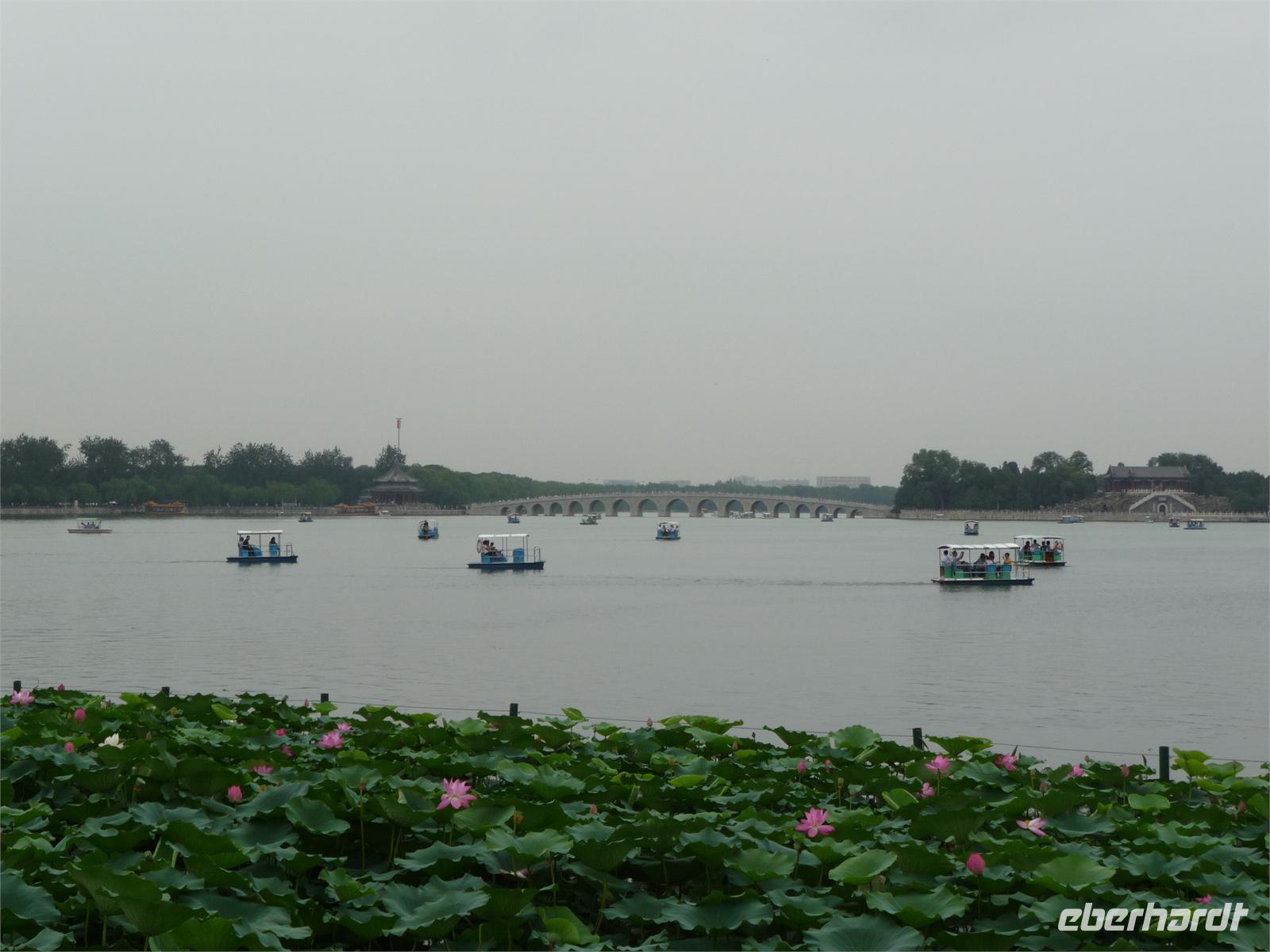 Am Nachmittag unternehmen wir in einem kleinen überdachten Boot (nur für uns) eine gemütliche Bootsfahrt auf dem Kaiserkanal mit Ende an der Marco-Polo-Brücke. Danach haben wir erstmal damit zu tun, die fliegenden Händler in der „Hallo-Gasse" abzuschütteln.