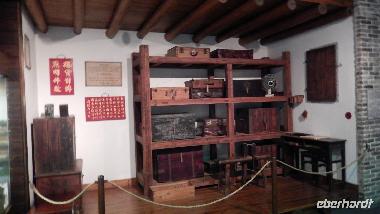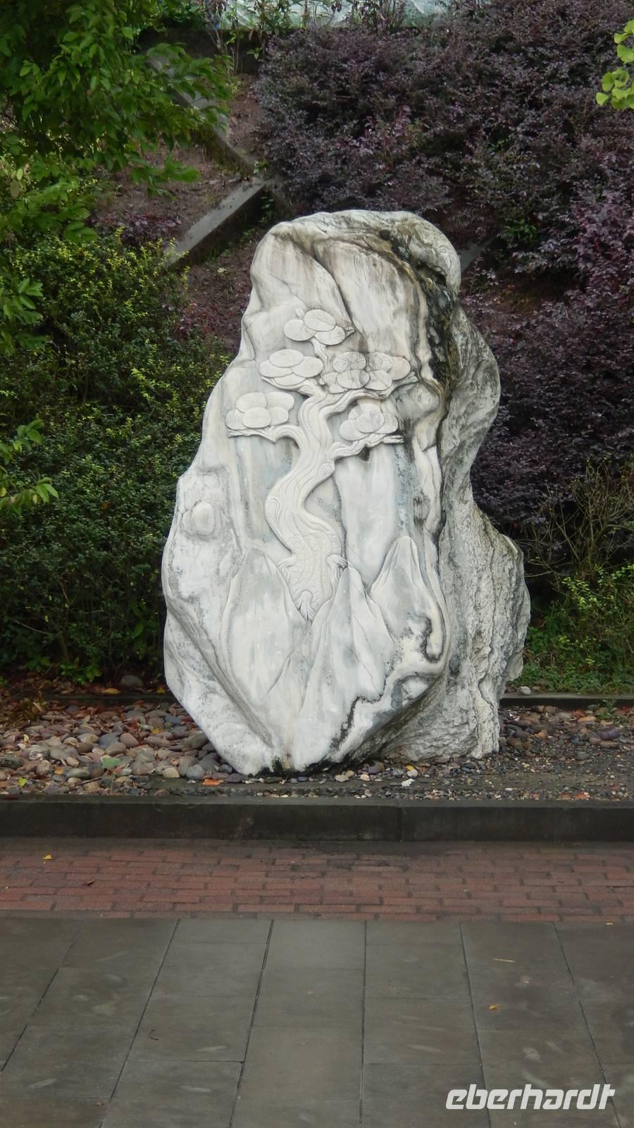 Heute brachen wir auf zu einer Bootsfahrt auf dem West-See von Hangzhou auf, dessen drei kleine Pagoden mitten im Wasser sich ebenfalls auf den chinesischen Geldscheinen befinden. Natürlich herrschte immernoch Feiertagstrubel und wir mussten uns zuerst einmal in der langen Schlange einreihen, bevor es schließlich losging. Nach der entspannten Bootsfahrt besuchten wir zur Mittagszeit die auf dem Land gelegene Teeplantage, auf der der berühmte Drachenbrunnentee angebaut wird. Wir konnten die Anlage besichtigen und natürlich den Tee auch verkosten und kaufen. Auch im Geschäft nebenan gab es viele weitere Sorten Tee und allerlei Produkte die Tee enthalten oder etwas damit zu tun haben. Am Nachmittag besuchten wir schließlich noch den Garten des lächelnden Buddha, wo wir wieder viele in den Fels gehauene Plastiken bestaunen konnten. Der nahegelegene Tempel mit seinem Blumenschmuck war ebenfalls sehenswert und anschließend konnte jeder individuell herumschlendern, etwas einkaufen oder auf den Berg gegenüber des Flusses klettern.