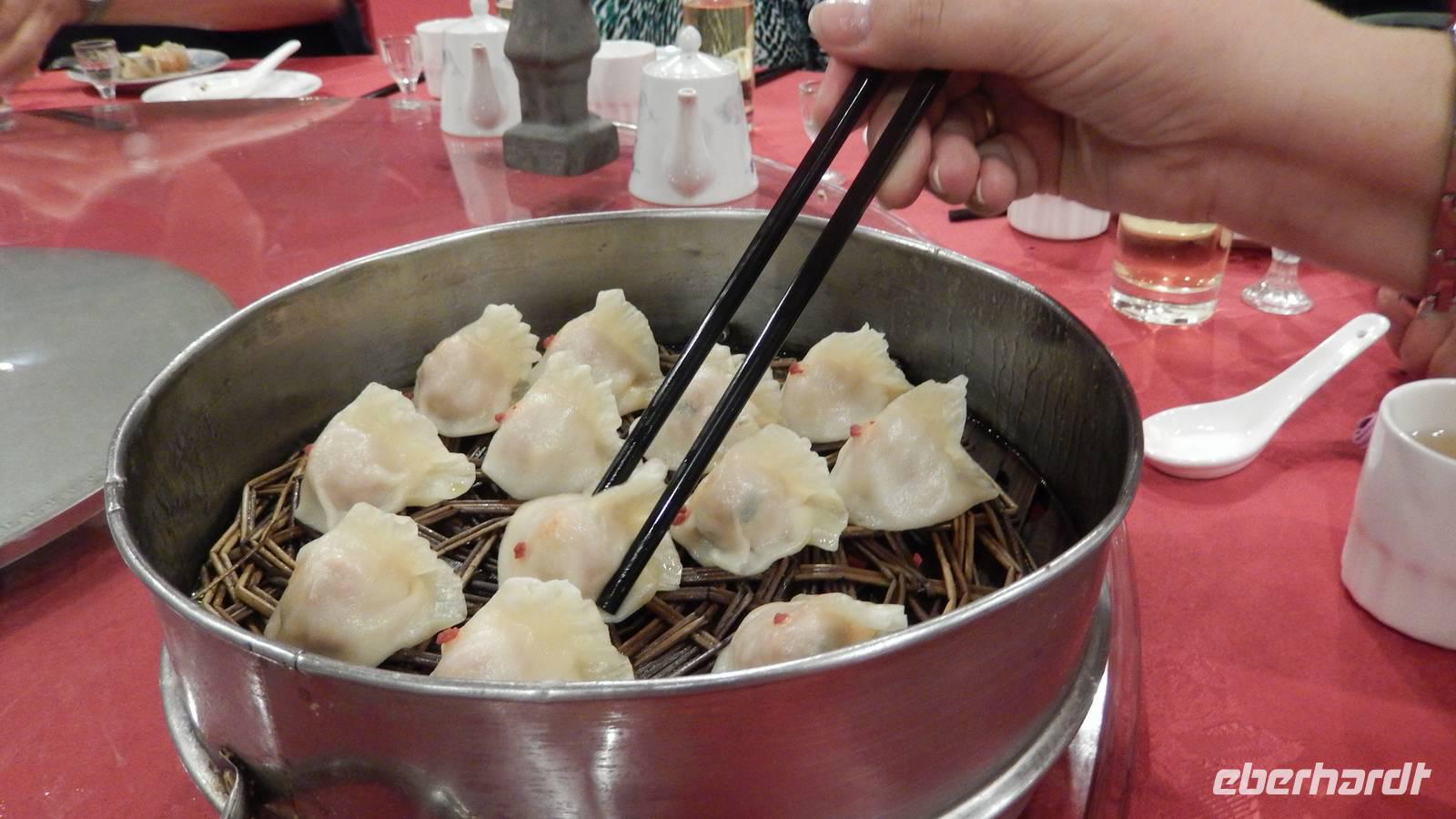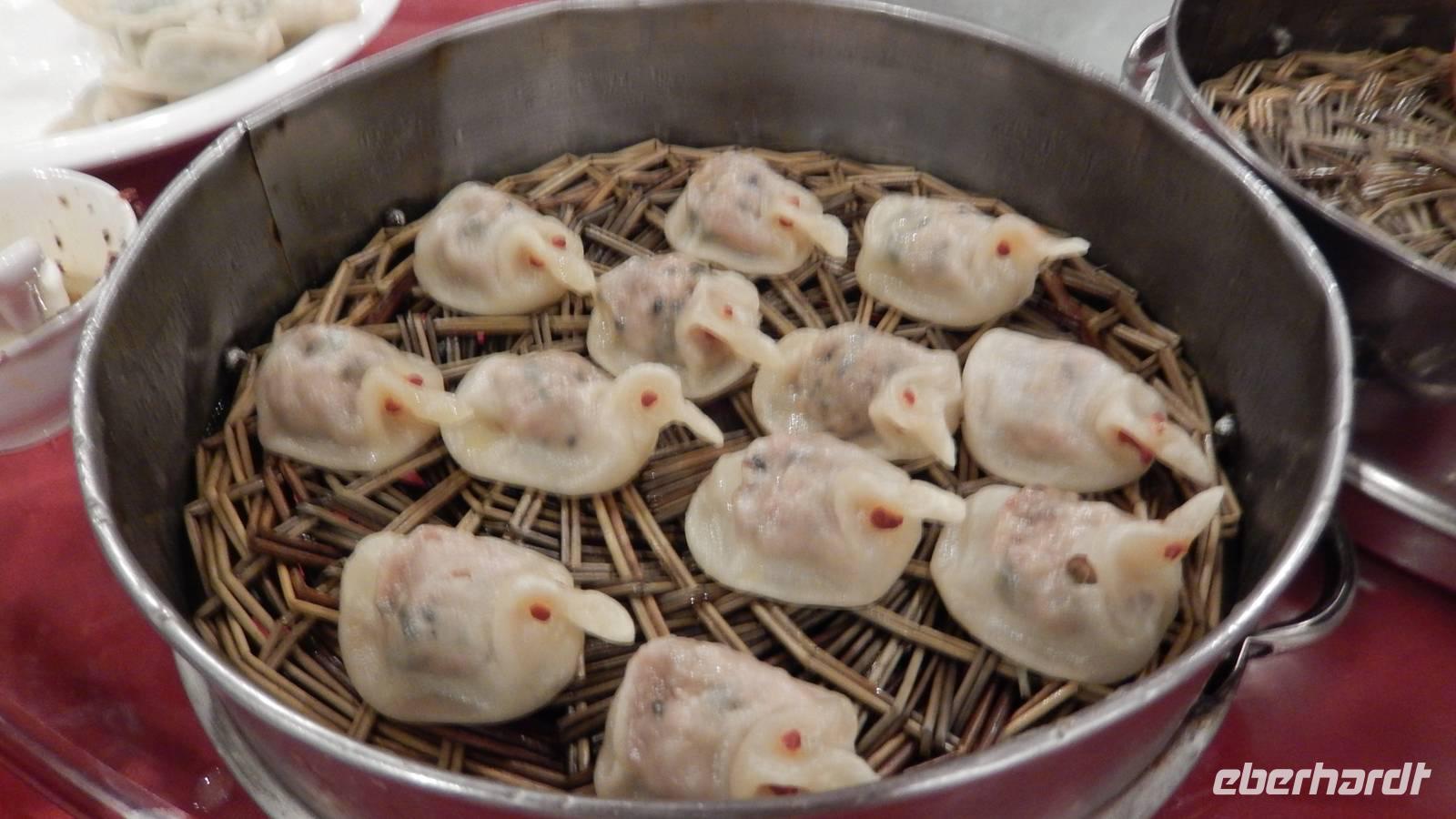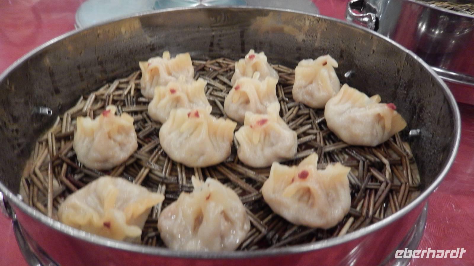 Gemeinsam mit Anna und Michael brachen wir heute zu den Drachentor-Grotten in Luoyang auf. Hier wurden unzählige Buddha-Figuren in den Fels gehauen, die versteckt in kleinen Aushöhlungen und Grotten auf die Besucher warten. Anna erzählte uns viel zu den verschiedenen Epochen der Entstehung und zeigte uns die Unterschiede in der Darstellung der verschieden alten Buddhas. Nach etwas Freizeit brachenn wir schließlich wieder auf und fuhren zum Bahnhof. Anna verabschiedete sich mit einem selbst geschriebenen Lied und wir durchquerten dann mit Michael den gewaltigen Bahnhof, wo wir in den Schnellzug nach Xi'an stiegen. Damit erreichten wir am frühen Abend die ehemalige Hauptstadt und fuhren zu einem kulinarischen Highlight: Maultaschenessen. Im Restaurant wurden uns unzählige, verschieden gefüllte Maultaschen serviert, die auch äußerlich liebevoll gestaltet waren. Zum Schluss gab es eine Maultaschensuppe und je nach Anzahl der kleinen Minimaultaschen in der Schüssel erhielt jeder eine entsprechende Zukunftsprognose. Nach dem lustigen Abend erreichten wir schließlich unser Hotel.