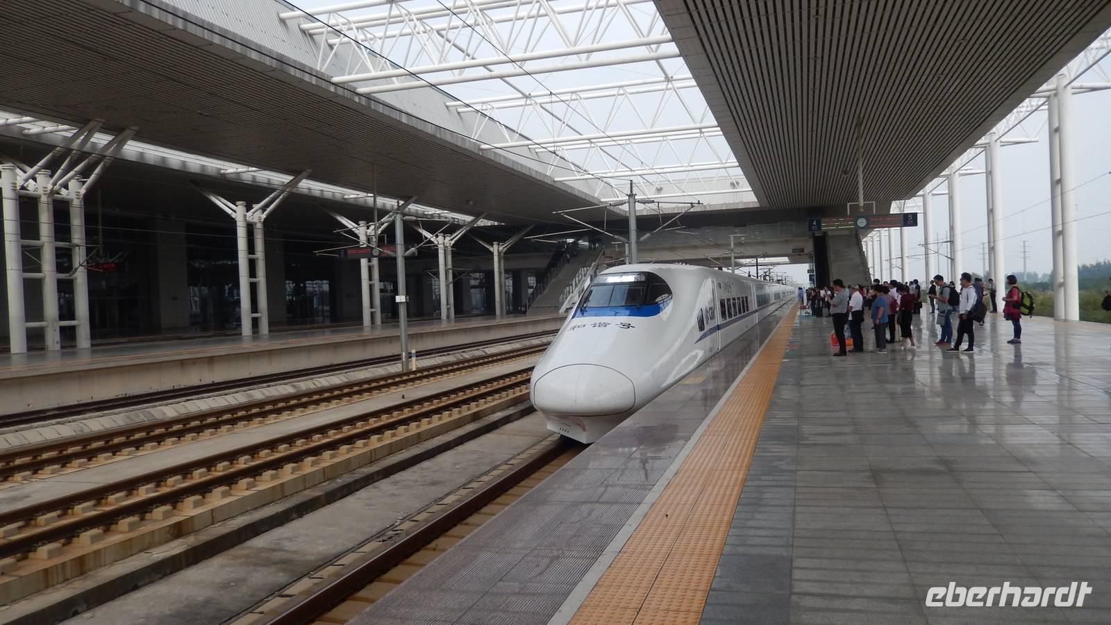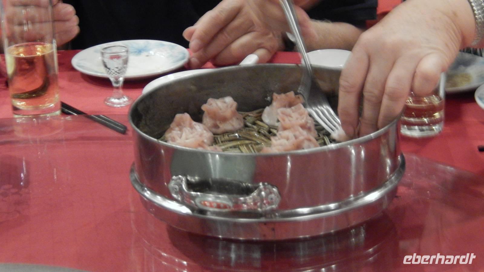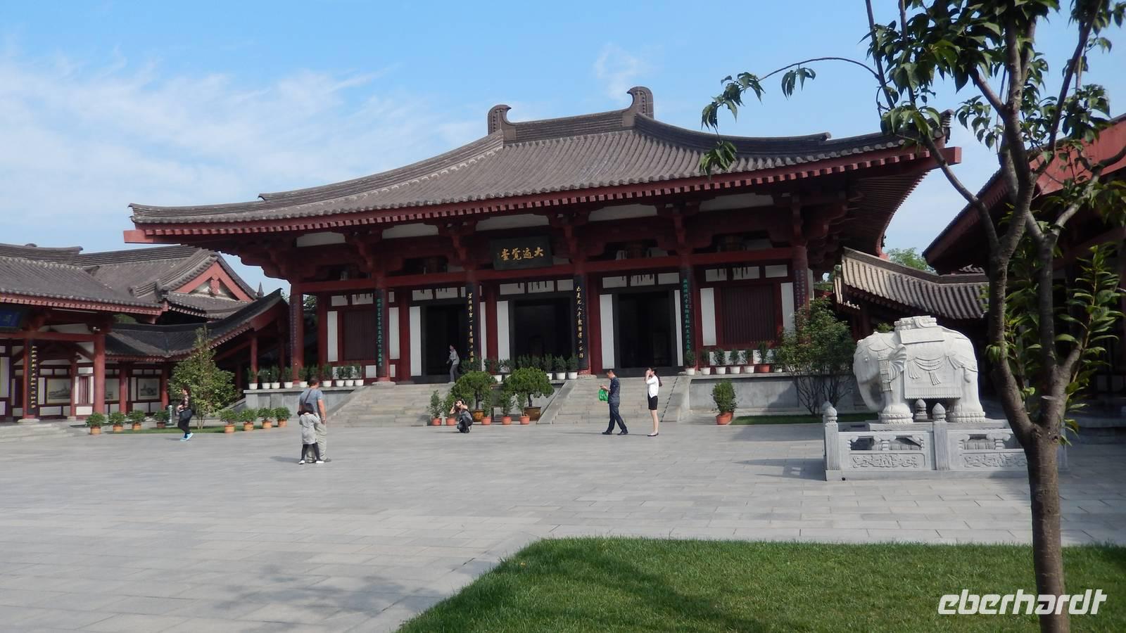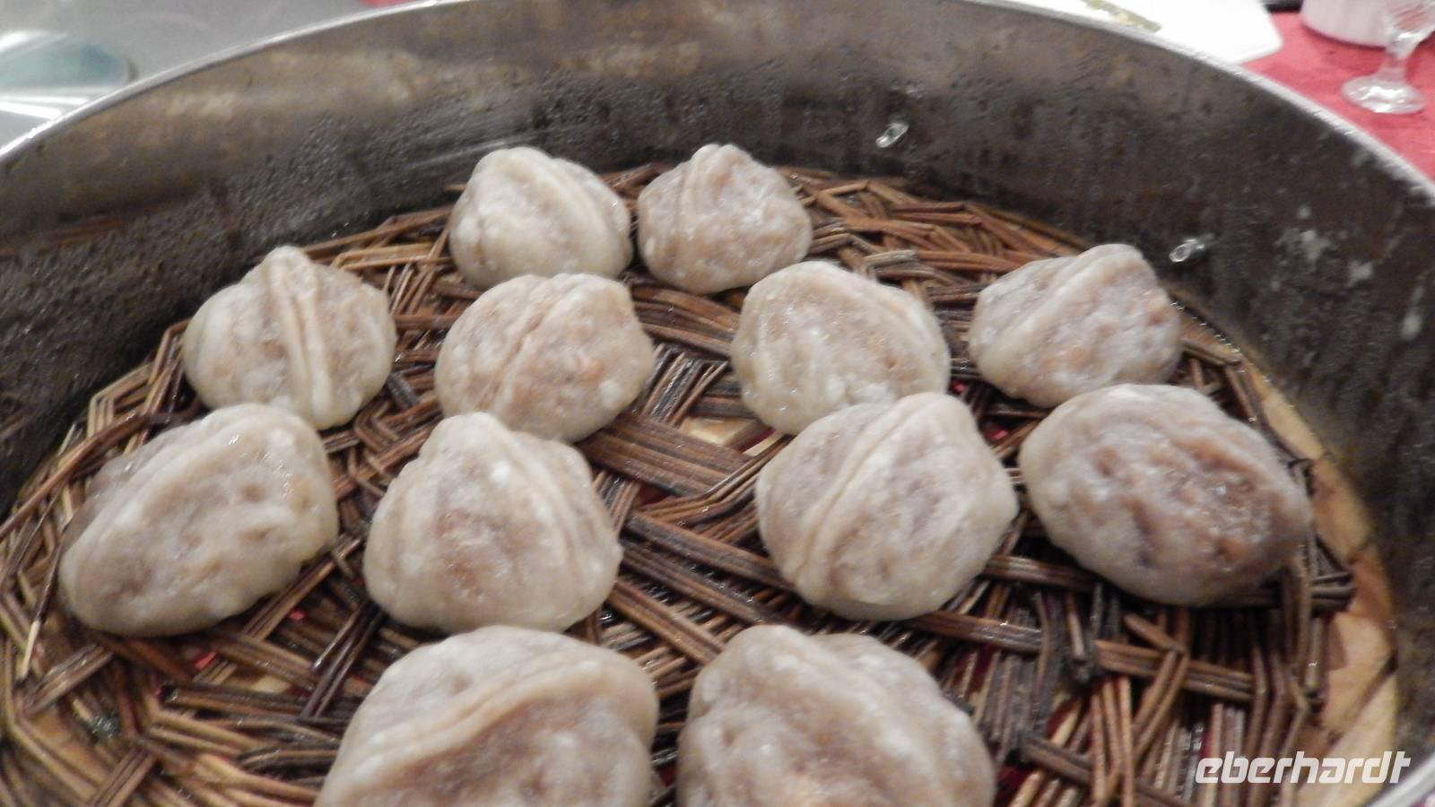 Gemeinsam mit Anna und Michael brachen wir heute zu den Drachentor-Grotten in Luoyang auf. Hier wurden unzählige Buddha-Figuren in den Fels gehauen, die versteckt in kleinen Aushöhlungen und Grotten auf die Besucher warten. Anna erzählte uns viel zu den verschiedenen Epochen der Entstehung und zeigte uns die Unterschiede in der Darstellung der verschieden alten Buddhas. Nach etwas Freizeit brachenn wir schließlich wieder auf und fuhren zum Bahnhof. Anna verabschiedete sich mit einem selbst geschriebenen Lied und wir durchquerten dann mit Michael den gewaltigen Bahnhof, wo wir in den Schnellzug nach Xi'an stiegen. Damit erreichten wir am frühen Abend die ehemalige Hauptstadt und fuhren zu einem kulinarischen Highlight: Maultaschenessen. Im Restaurant wurden uns unzählige, verschieden gefüllte Maultaschen serviert, die auch äußerlich liebevoll gestaltet waren. Zum Schluss gab es eine Maultaschensuppe und je nach Anzahl der kleinen Minimaultaschen in der Schüssel erhielt jeder eine entsprechende Zukunftsprognose. Nach dem lustigen Abend erreichten wir schließlich unser Hotel.