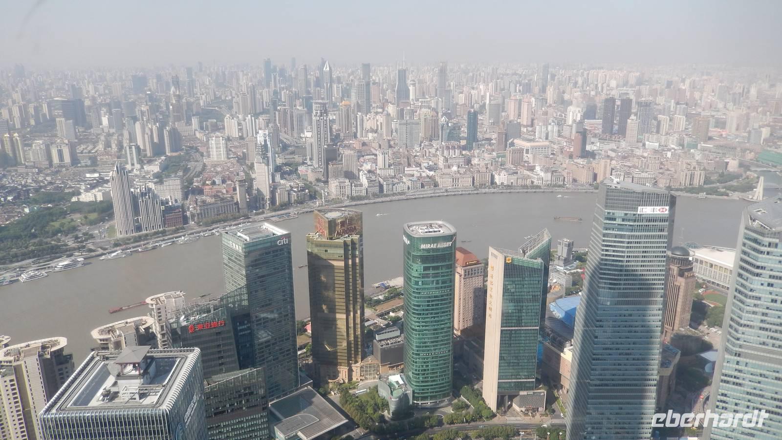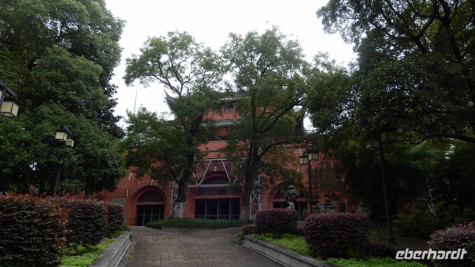 Wer wollte, konnte heute am Morgen den Jinmao-Tower besuchen und mit dem Fahrstuhl bis ins oberste Stockwerk zur Aussichtsplattform fahren. Von oben konnte man noch einmal den Blick über die Skyline aus einem anderen Winkel schweifen lassen. Für alle zusammen gab es dann noch eine Bootsfahrt auf dem Huanpu-Fluss, von dem aus wir zum letzten Mal die imposanten Hochhäuser sehen konnten, diesmal mit idealem Wetter. Wir verließen schließlich Shanghai mit dem Bus und fuhren weiter ins Kunst- und Literaturzentrum Hangzhou. Dort besichtigten wir die 6-Harmonien-Pagode und sahen auf der Fahrt ins Hotel, wie die schaulustigen Chinesen am Flussufer von den Flutwellen nassgespritzt wurden, die regelmäßig vom Meer hereinschwappen und sich in der Kurve des Flusses aufbäumen.