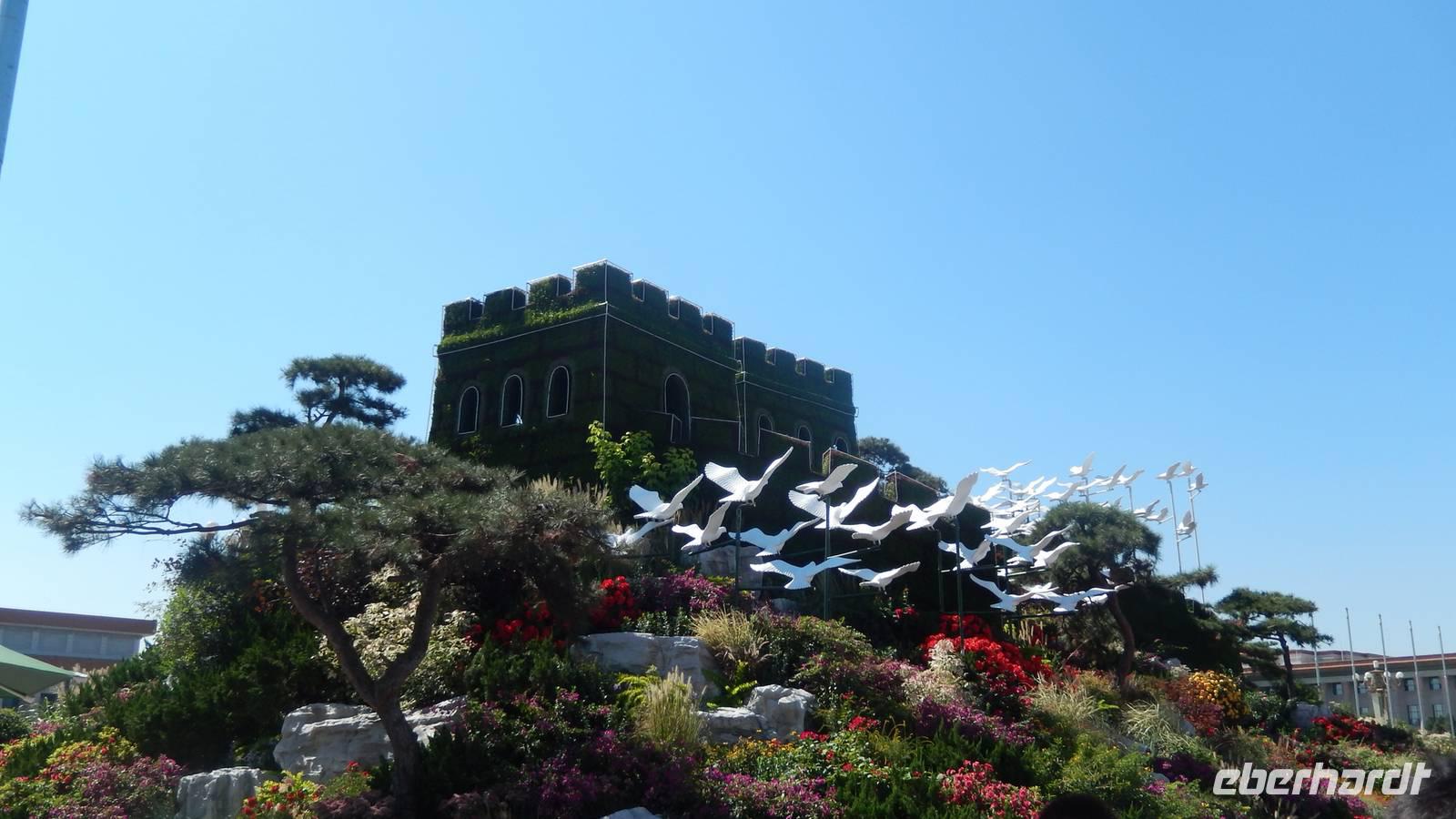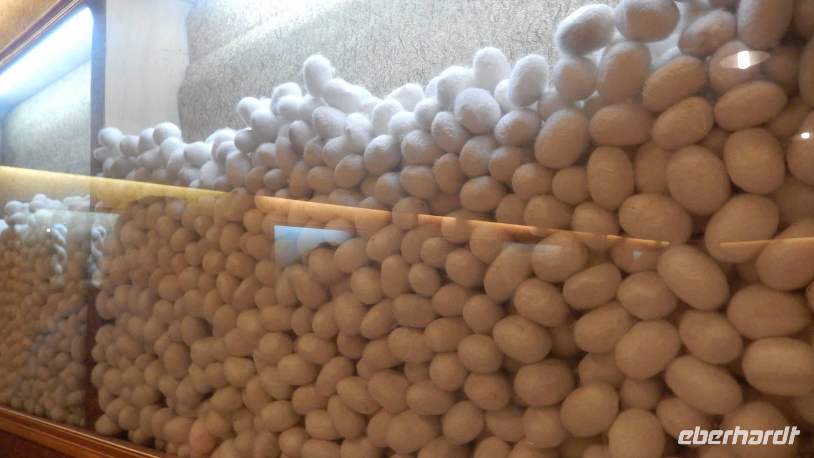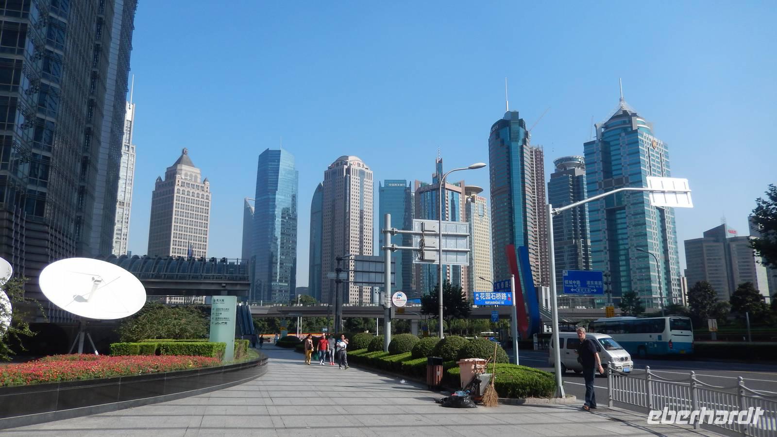 Heute besuchten wir in Suzhou den Garten des Meisters der Netze, der - typisch chinesisch - einen Rückzugsort zum Entspannen mit vielen kleinen Gärtchen und Pagoden bildet. Wir spazierten durch die malerische Anlage und besichtigten die verschiedenen Zimmer wie z.B. die Bibliothek. Durch den sich ankündigenden Nationalfeiertag war bereits heute schon einiges los, deshalb verließen wir den Garten bald wieder und fuhren nun weiter zur nächsten Weltmetropole auf unserer Liste: Shanghai. Dort kamen wir am späten Vormittag an und besuchten zunächst den Jade-Buddha-Tempel, der natürlich nach dem gewaltigen Buddha aus purer Jade benannt ist, den man im Inneren besichtigen kann. Später erreichten wir eine Seidenmanufaktur, die hauptsächlich Bettwäsche und mit Seide gefüllte Bettdecken herstellt. Wir konnten die verschiedenen Stadien der Seidenraupen betrachten und sahen, wie die Kokons abgewickelt werden und die gewonnene Seide weiterverarbeitet wird. Natürlich bestand die Möglichkeit zum Kauf, aber nicht nur Bettzeug sondern auch Bekleidung und Schals konnte man in dem weitläufigen Geschäft einigermaßen günstig erwerben. Wir fuhren anschließend weiter hinein ins Zentrum der Stadt und legten am Volksplatz noch einen Fotostopp ein. Schließlich erreichten wir unser Hotel, dicht an der Uferpromenade, dem „Bund", gelegen.