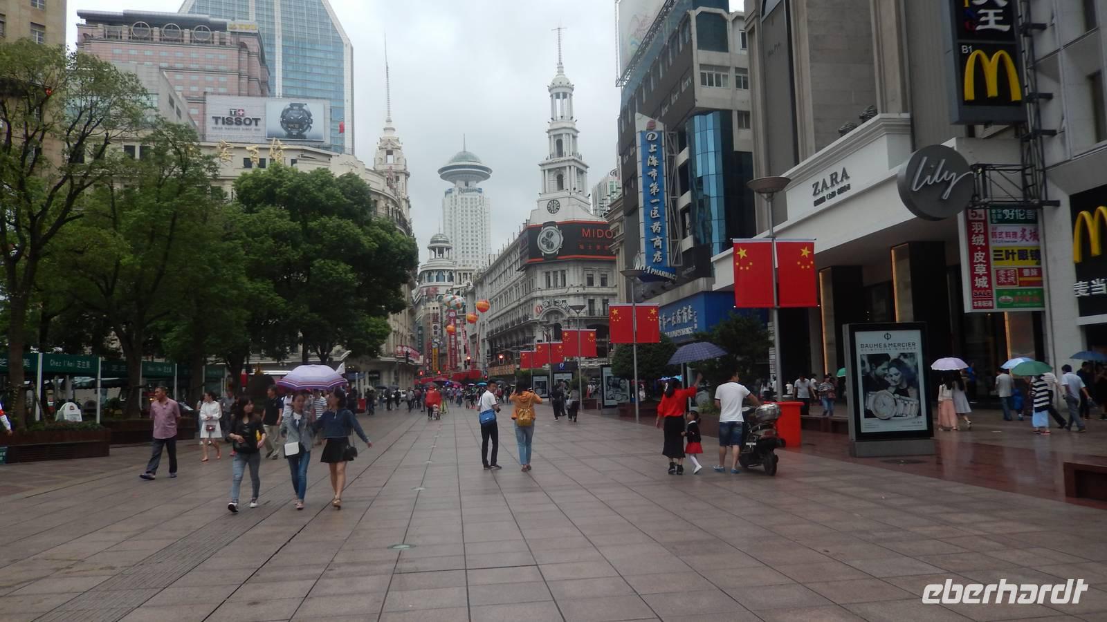Die große Nanjing-Road ist die bekannteste Einkaufsstraße in Shanghai und heute Morgen erkundeten wir sie für einige Stunden, noch bevor die meisten Feiertagstouristen dort einfielen. Weiter ging es dann zu Fuß hinein in die Altstadt mit ihren vielen verwinkelten Gassen und Geschäften, quer durch die Menschenmassen bis hinein in den Yu-Garten. Hier in der Gartenanlage war es ebenfalls belebt, deshalb verweilten wir nur kurz, um Fotos von den liebevoll angelegten Ecken und Innenhöfen zu machen und schlängelten uns anschließend wieder durch die Menschen in der Altstadt zu einem Teehaus mit schöner Dachterrasse. Hier konnten wir jedoch leider nicht bleiben, da eine Teeverkostung zu teuer war. Zum Glück kannte Michael noch ein anderes Teehaus, wo das dann gratis möglich war, nicht weit weg und ebenfalls mit Aussicht. Wir probierten verschiedene Sorten chinesischen Tee, zum Beispiel Jasmintee oder grünen Tee. Wer wollte, konnte eine Dose voll als Andenken kaufen. Da es nun zu regnen begann, fuhren wir zum Verschnaufen zunächst zurück zum Hotel und machten uns frisch. Zum Nachmittag spazierten wir dann mit vielen anderen chinesischen Ausflüglern am Bund entlang und konnten Fotos von der einzigartigen Skyline schießen. Leider versteckte die sich heut etwas im Dunst, war aber trotzdem zu erkennen. Nach einem zeitigen Abendessen hatte jeder noch Zeit, die Umgebung rund um das Hotel auf eigene Faust zu erkunden, oder erneut die Skyline bei Nacht zu bewundern.