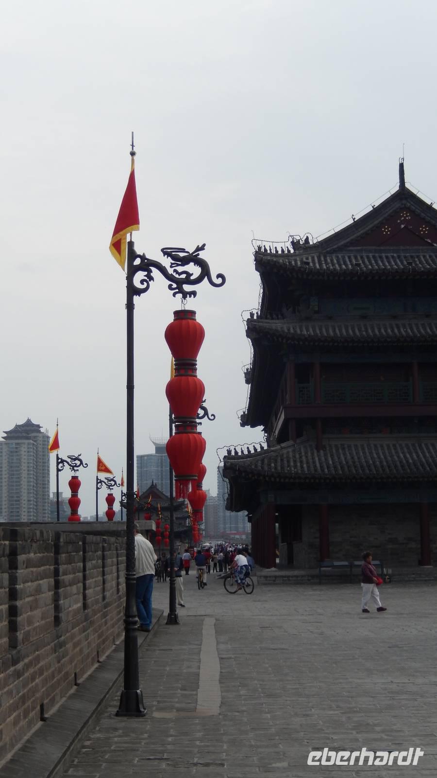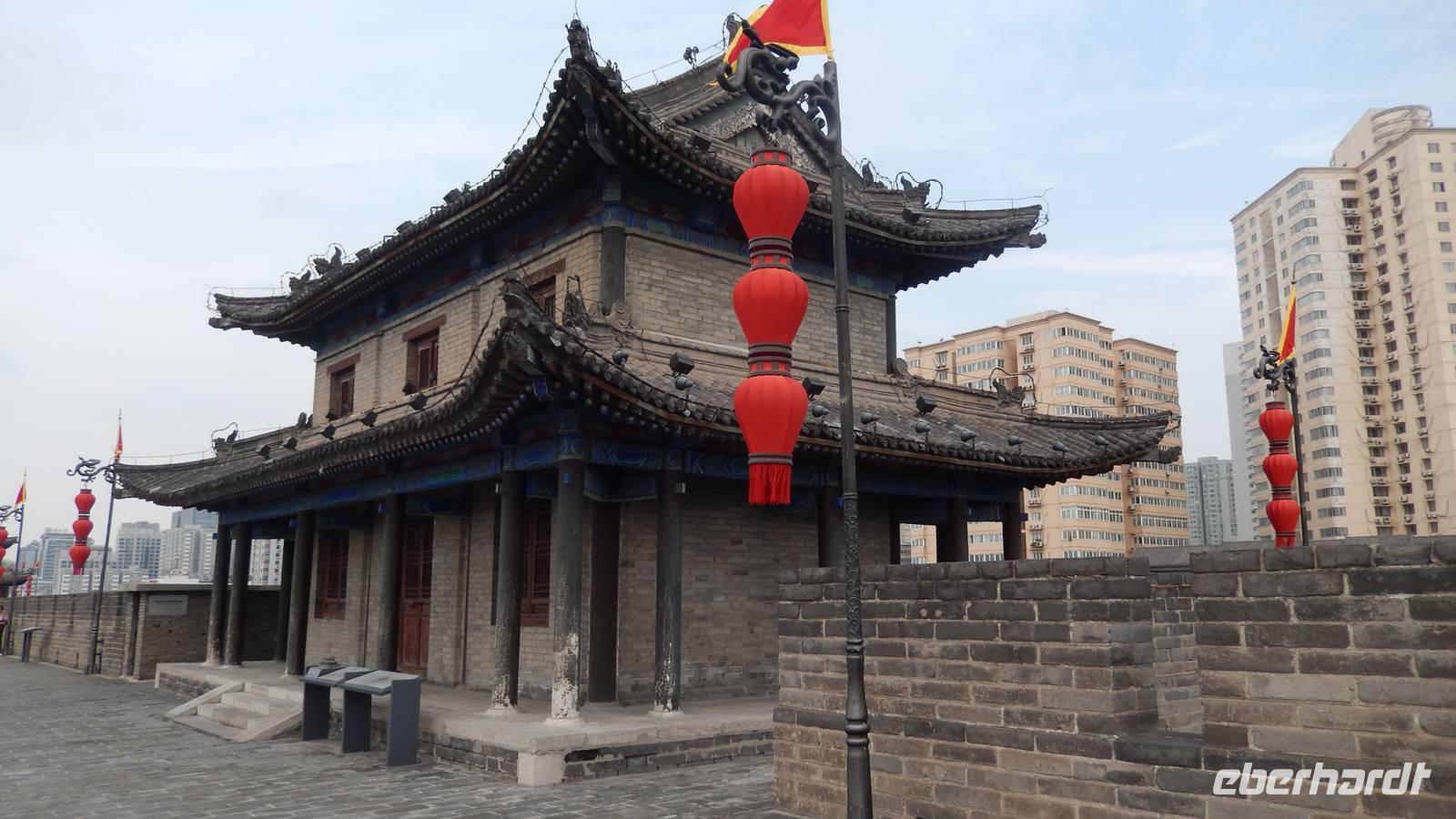 Eine der berühmtesten Attraktionen Chinas erwartete uns heute. Wir besuchten die Terracotta-Armee. Auf dem großen Gelände besuchten wir die verschiedenen Ausgrabungshallen und machten uns selbst ein Bild von den gewaltigen Grabbeigaben, die immer noch von Archäologen freigelegt werden. Über eine Einkaufsstraße mit vielen exotischen Gerichten gelangten wir zurück zu unserem Bus und fuhren weiter, zurück hinein nach Xi'an. Wir besichtigten die sehr gut erhaltene Stadtmauer und spazierten gemütlich entlang der vielen roten Lampions und verzierten Wachtürme, bis wir schließlich zum Abendessen ins Hotel zurückkehrten.