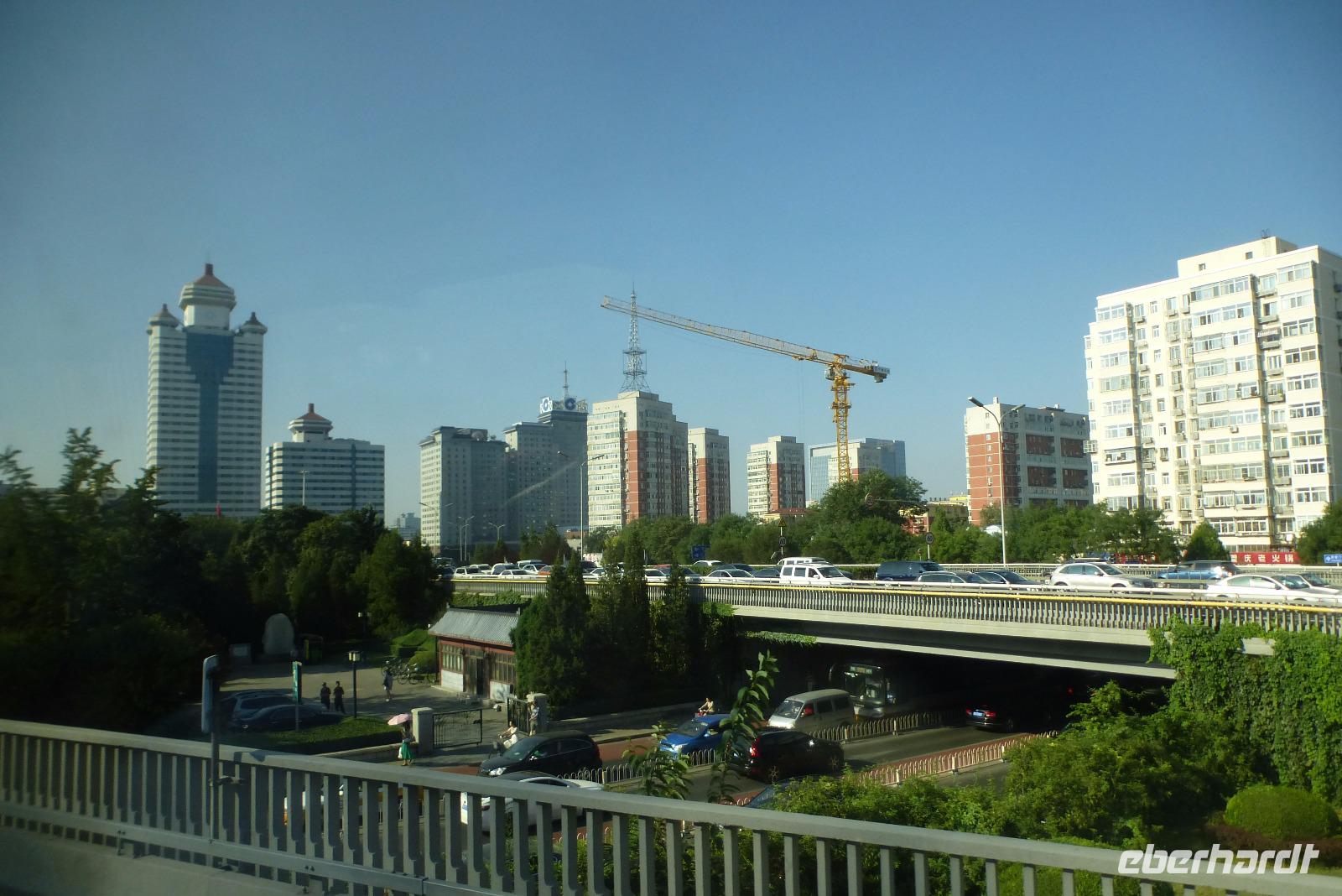 Nach einer sanften Landung in Peking wurden wir, nach Pass- und Zollkontrollen, schon von Li Lin, unserer örtlichen Reiseleiterin erwartet. Das Wetter in Peking war erstaunlich gut, es regnete nicht (mehr), dafür war es mit 28° Celsius sehr warm. Vom neuen Flughafen aus fuhren wir zum Inlandflughafen, um weitere Gäste abzuholen. Der Straßenverkehr in Peking ist gewaltig, doch wir haben erfahren, dass dieses Verkehrsaufkommen nur ein Fünftel ausmacht, denn es dürfen immer nur Autos mit bestimmten Zahlen im Nummernschild pro Tag fahren. Gemeinsam ging es dann zum Mittagessen in ein kleines Restaurant neben unserem Hotel, wo wir ganz neue Geschmackserlebnisse erleben konnten. Mit dem Bus fuhren wir dann zum Platz des Himmlischen Friedens. Von seiner Monumentalität waren wir alle erschlagen. Weiter ging es zu Fuß durch viele Tore in das Herz der verbotenen Stadt des Kaisers von China. Der Palast wurde vom dritten Kaiser der Ming Dynastie, der die Hauptstadt wieder nach Peking verlegt hat, ab 1406 in gigantischen Ausmaßen errichten. Die wunderschönen Innenhöfe, die beeindruckenden Hallen, die Schnitzereien und die mit Drachen verzierten Dächer zogen uns in den Bann. Für China waren erstaunlich wenige Besucher da, lediglich beim Blick in die Hallen gab es etwas Gedrängel. Auch der kaiserliche Blumengarten war sehr gut besucht und wir bestaunten mit hunderten chinesischen Touristen die künstlich angelegten Felsen, die bizarren Bäume und fremdartigen Blumen. Auf der Rückfahrt zum Hotel konnten wir noch einen Blick auf die alte Architektur von Peking werfen, die sogenannten Hutongs. Teilweise elend zerfallen, stehen andere unter Denkmalschutz und man versucht, zumindest an manchen Stellen, das alte Stadtbild von Peking zu erhalten. Zum Ausklang des Tages konnten wir uns bei einem köstlichen chinesischen Abendessen im Hotel wieder etwas erholen.
