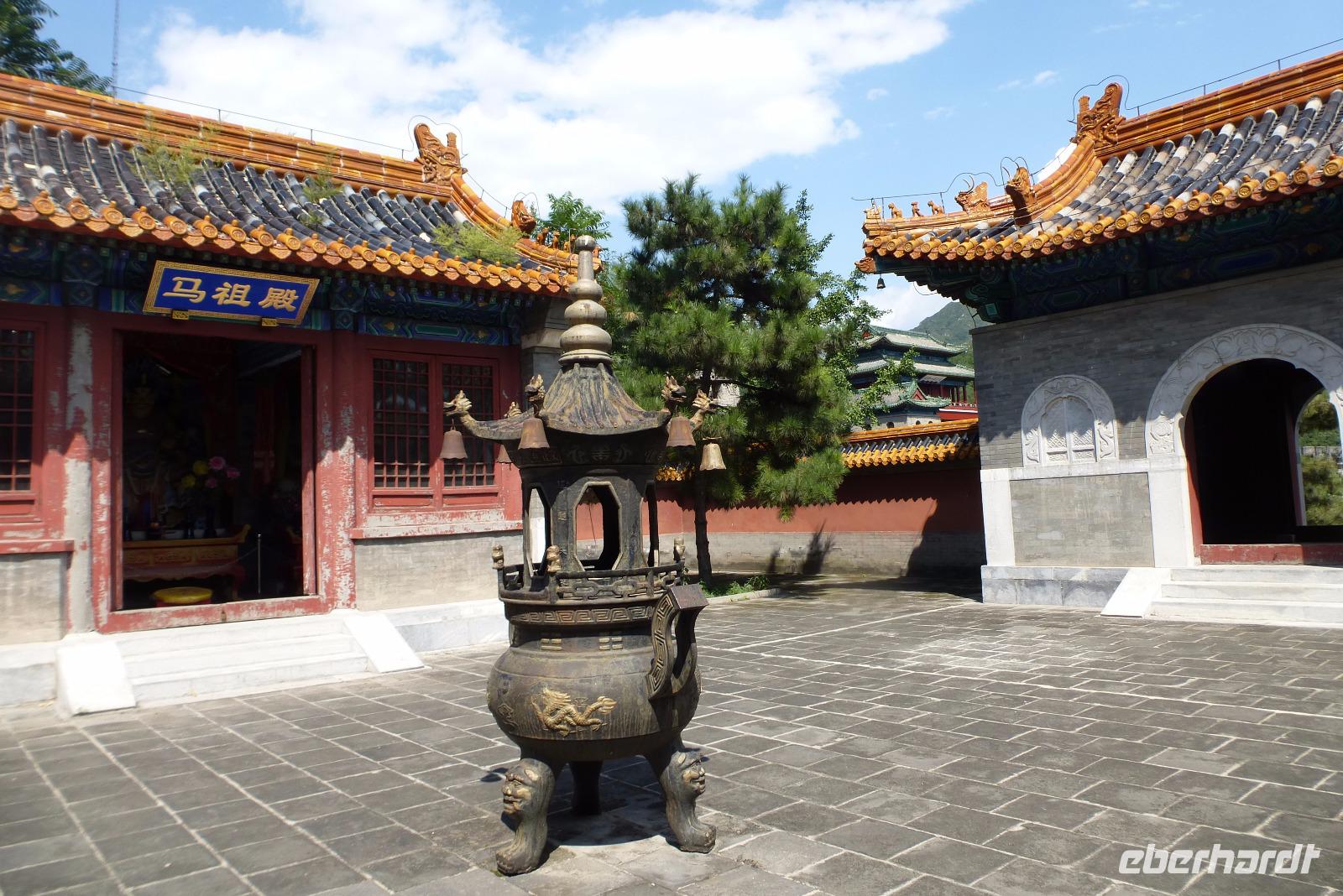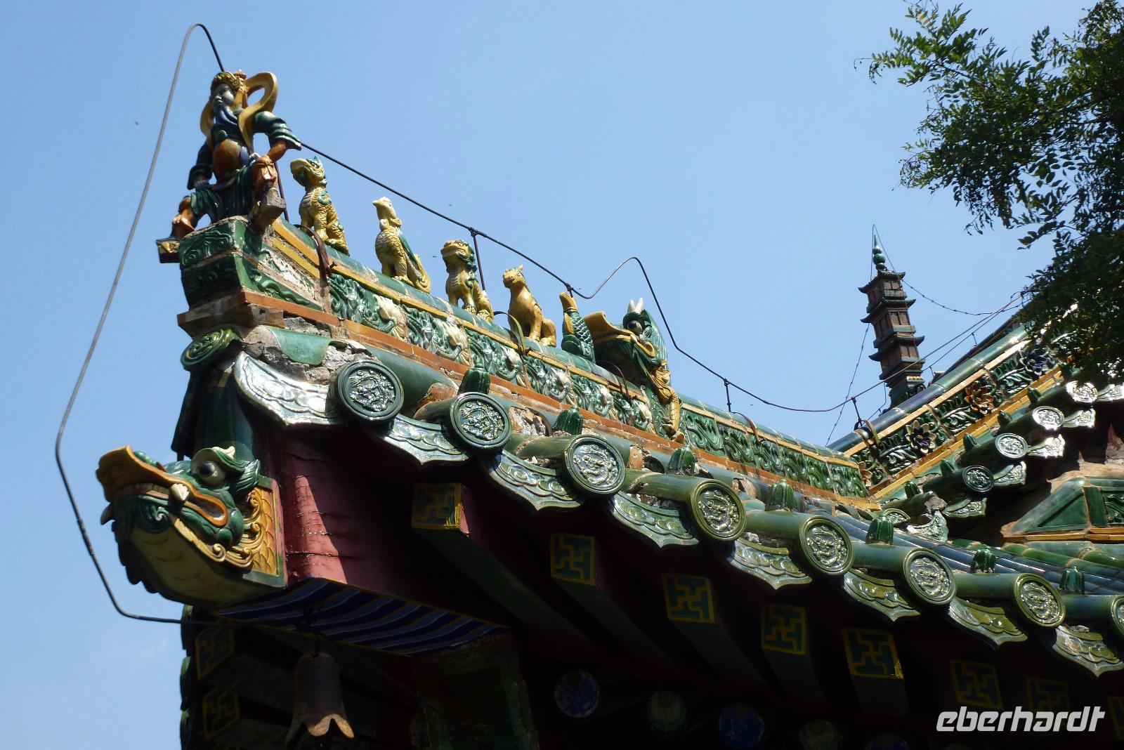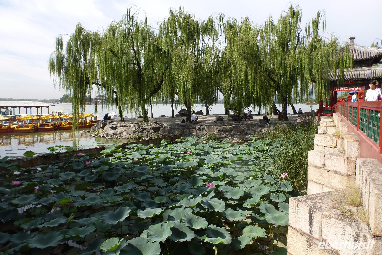 Am dritten Tag unserer Reise besuchten wir den Sommerpalast. Gemütlich bummelten wir durch die herrliche Parkanlage mit ihren beeindruckenden Gebäuden. Auch das Füttern der Goldfische durfte nicht fehlen. Wer hier allerdings Ruhe sucht, ist an der falschen Stelle. Zahlreiche chinesische Touristen entdecken gerade ihre Vergangenheit! Doch selbst hier im Trubel finden ältere Chinesen noch ein ruhiges Plätzchen um ihre Tai Chi Übungen an dieser historischen Stätte zu machen. Hinter der 720 Meter langen Wandelhalle bestaunten wir das berühmte Marmorschiff und haben uns dann spontan entschlossen, für den Rückweg selbst ein Drachenschiff zu nehmen, das uns über den See wieder zum Ausgang gebracht hat.