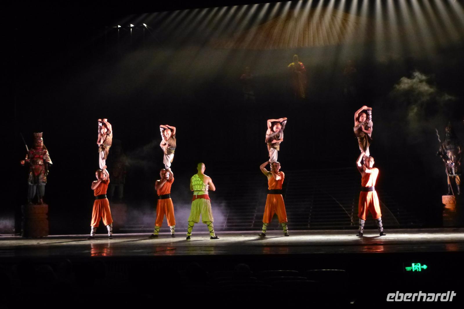 Nach einem köstlichen Abendessen vom chinesischen Buffet in einem typischen Restaurant haben wir im „Roten Theater" eine Kung Fu Show gesehen, die eine Mischung aus Musical, Traumtheater und echter Kung Fu Kunst war. Viel zu schnell ist die Zeit vergangen, in der wir gespannt das Leben eines Shaolin Mönches verfolgten.