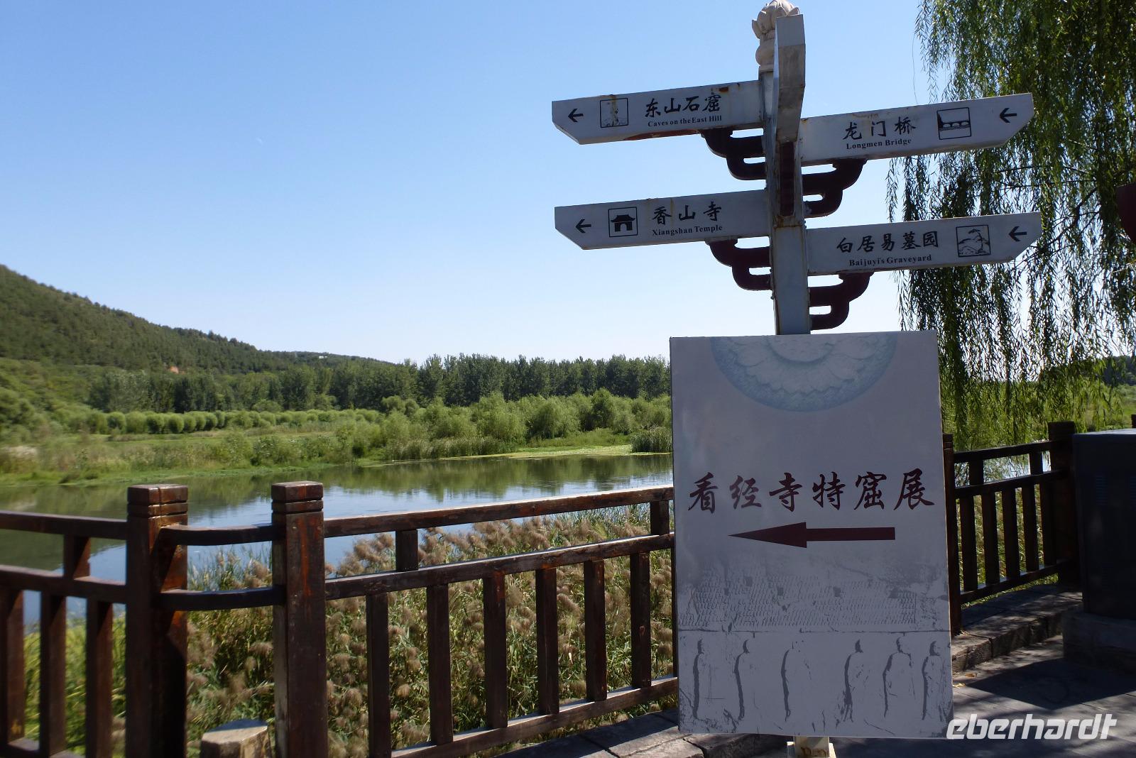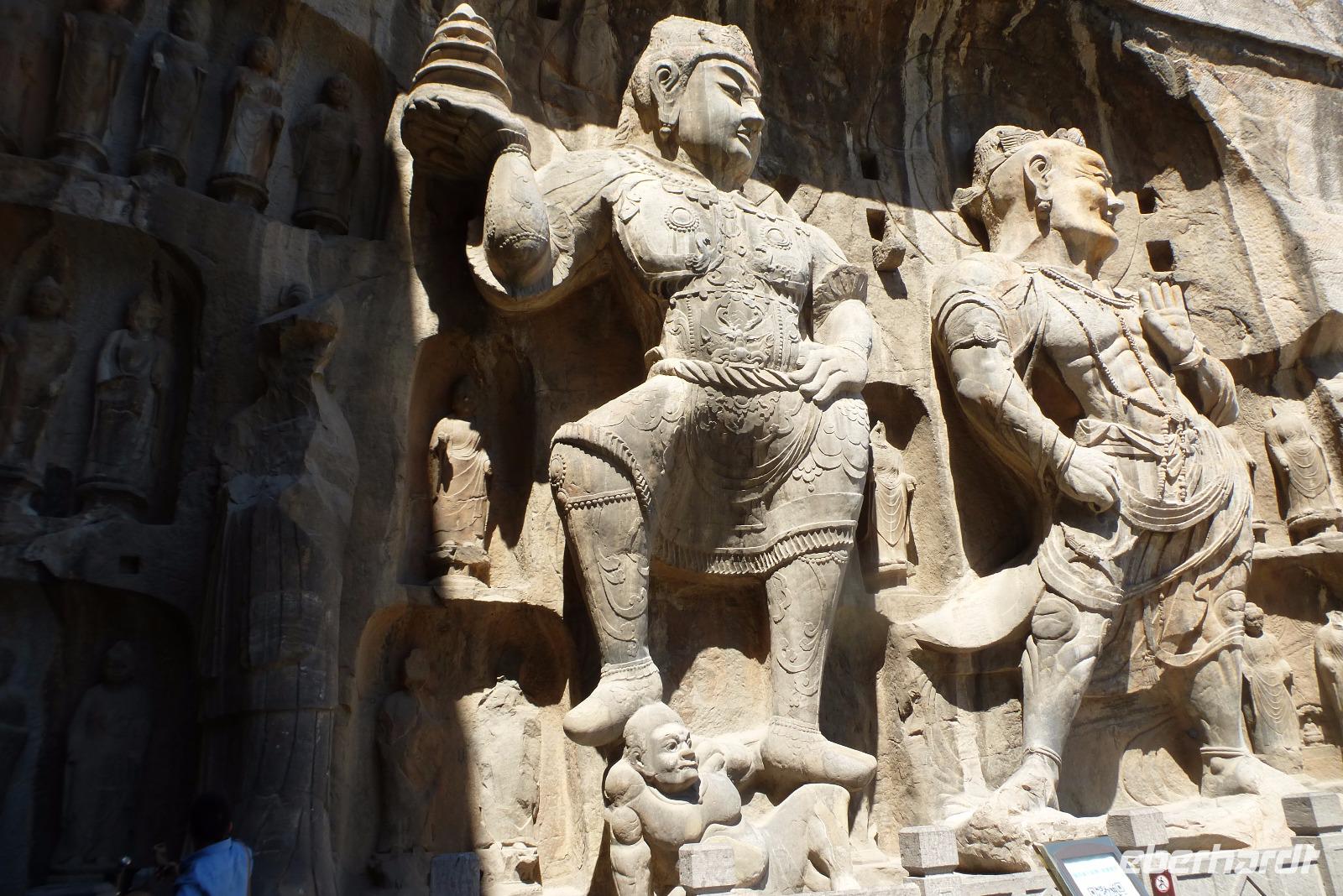 Danach ging es weiter: mit dem Bus hinaus über große breite Boulevards zu den Longmen Grotten. Mit ihren tausenden von Buddhastatuen stehen diese teilweise über 1500 Jahre alten Figuren in Höhlentempeln in der Sandsteinsschlucht an beiden Ufern des Flusses Yi. Die kleinsten der Buddhafiguren sind kaum zwei Zentimeter groß und mit dem bloßen Auge fast nicht zu erkennen. Die mit 17 Metern größte Buddha Statue soll die Gesichtszüge der späteren Kaiserin Wu tragen. Lisa erzählte uns, dass sie die einzige Frau war, die als Kaiserin auf dem Thron saß.
