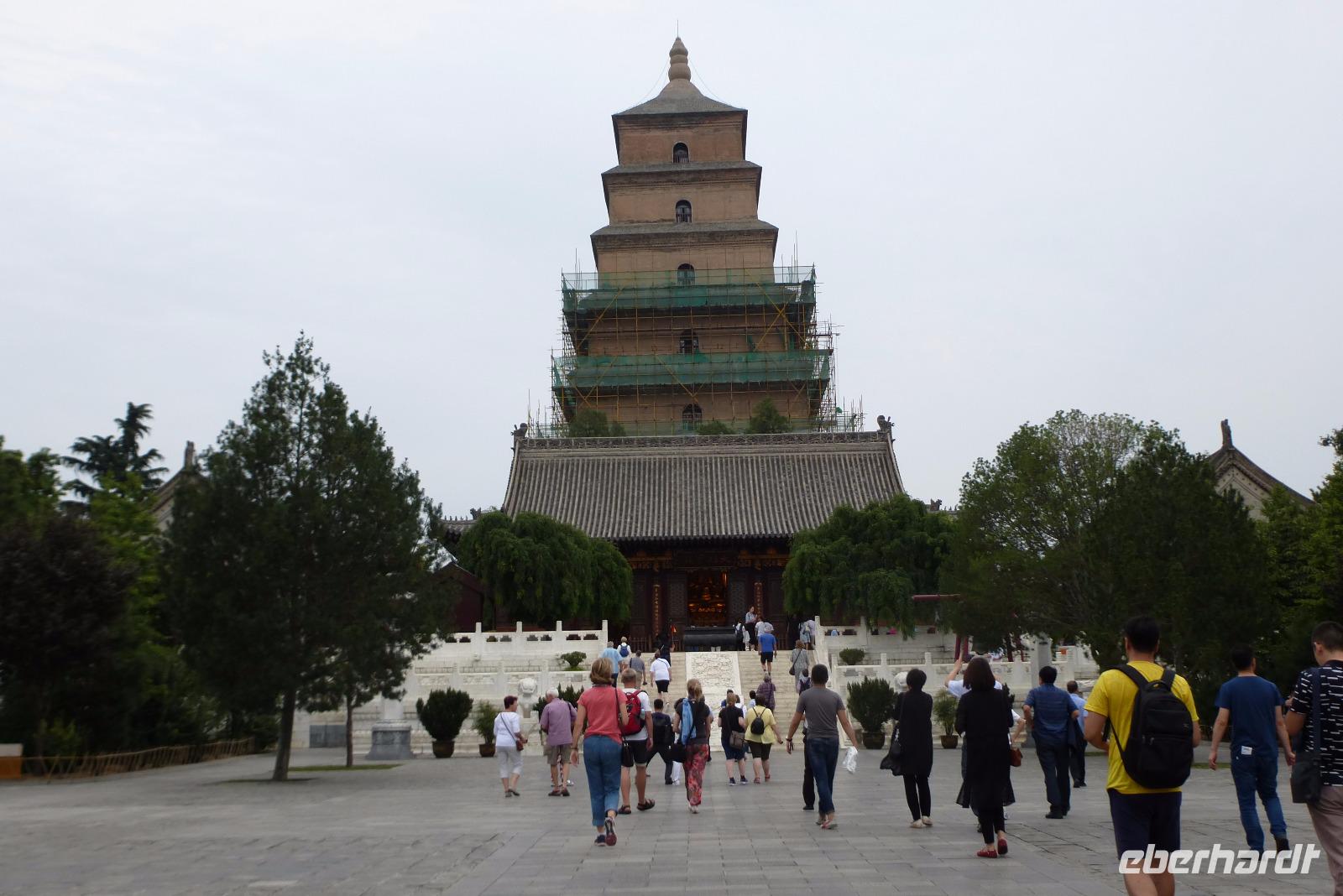 Am Nachmittag besuchten wir noch die Wildgans Pagode. Hier erfuhren wir viel über das Leben eines Buddha, das in prachtvollen Steinreliefs die Tempelwände schmückte und bewunderten die in den Tempeln verehrten Buddha Statuen. Fasziniert waren wir aber auch von dem filigranen Baugerüst an der 64 Meter hohen Pagode!