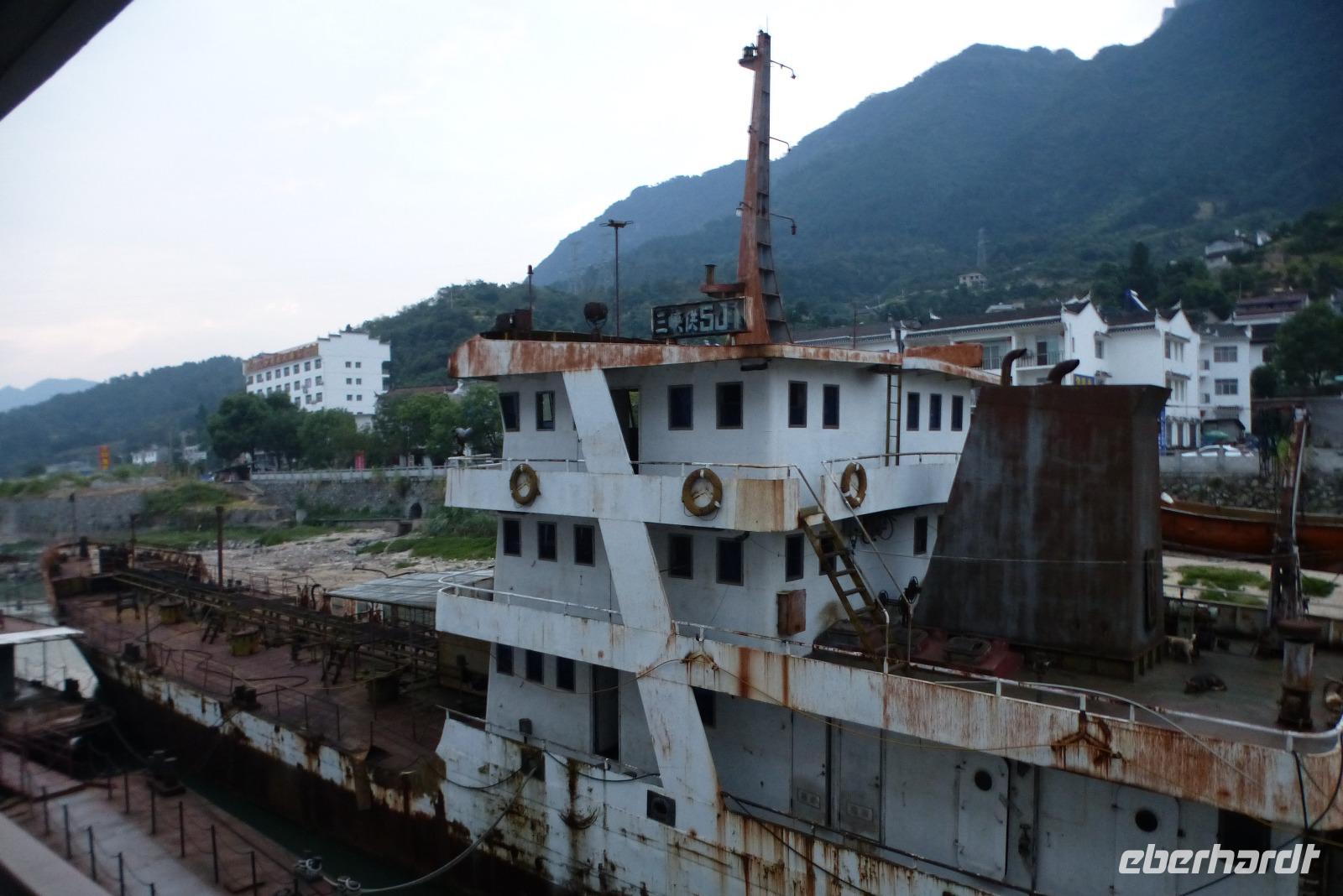 Ein herrlicher sonniger Morgen begrüßte uns nach einer ruhigen Nacht auf dem Jangtsekiang, dem mit 6380 Kilometern längsten Fluss Chinas. Nach dem Frühstück konnten wir in Ruhe das Schiff erkunden oder bei einer entspannenden Massage die vergangenen Tage Revue passieren lassen. Das Schiff strahlt eine Ruhe aus, die auch langsam auf uns überging. Zum Mittagessen trafen wir wieder alle zusammen am köstlichen Buffet, wo wir streng nach den Regeln von Yin und Yang immer wieder einen leckeren Zwischengang eingeschoben haben!