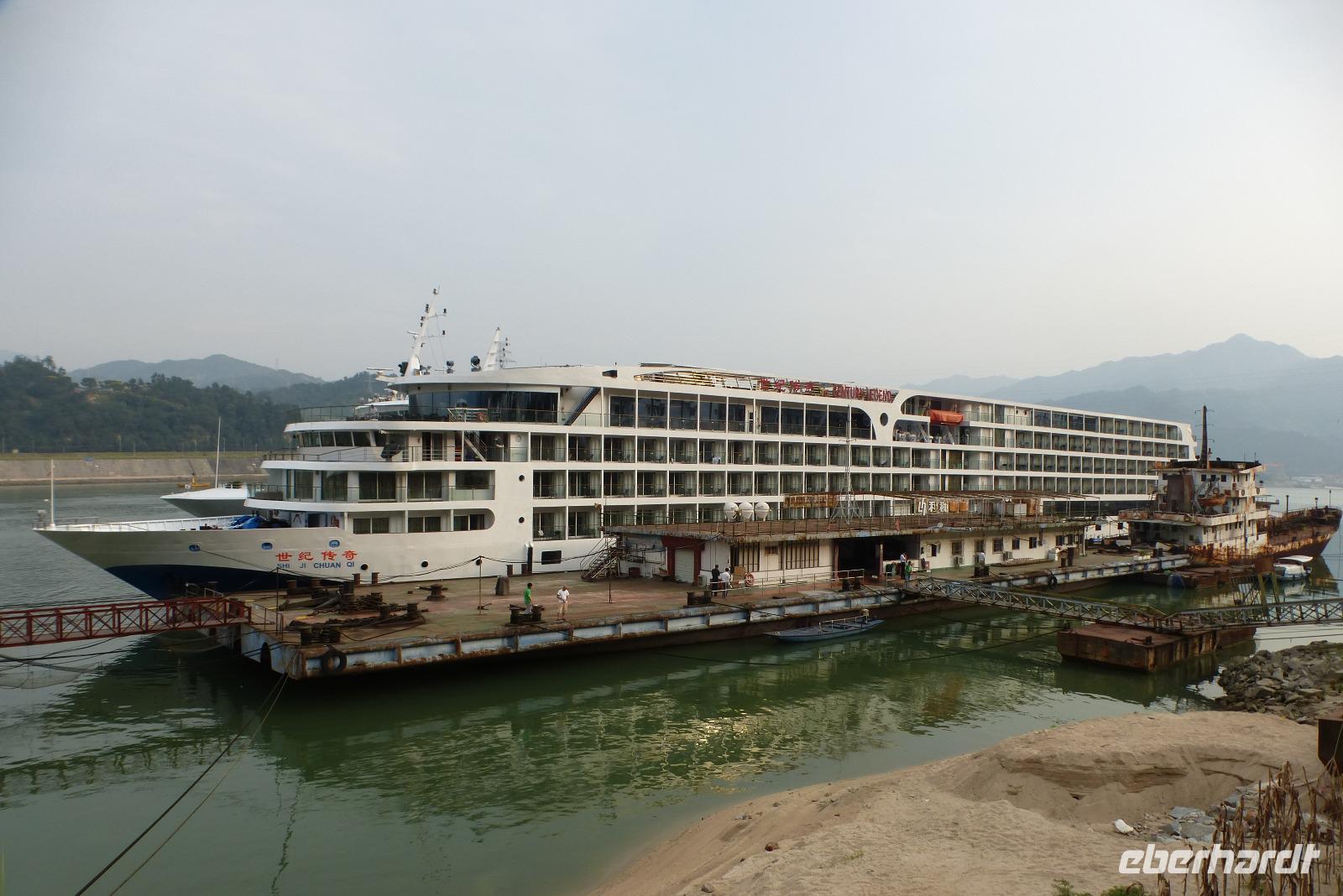 Und schon war es Zeit, zum Jangtse zu fahren, wo uns bereits das ***** Sterne Luxusschiff ´Century Legend', das für drei Nächte unsere neue Herberge ist, erwartete.
