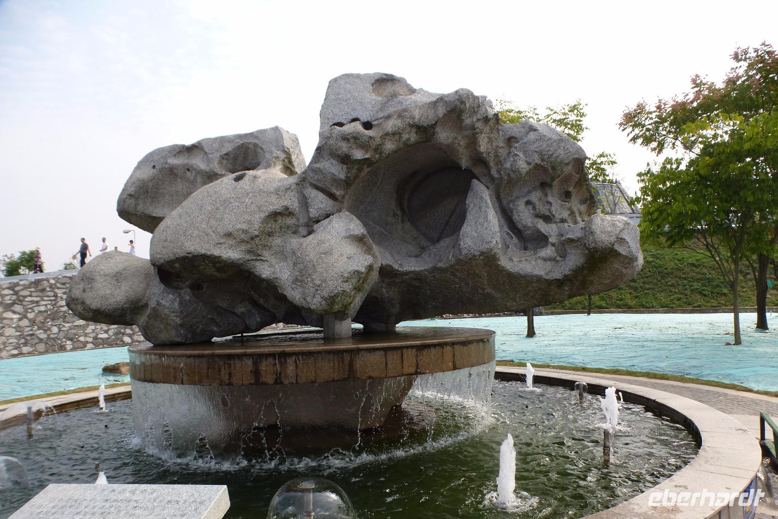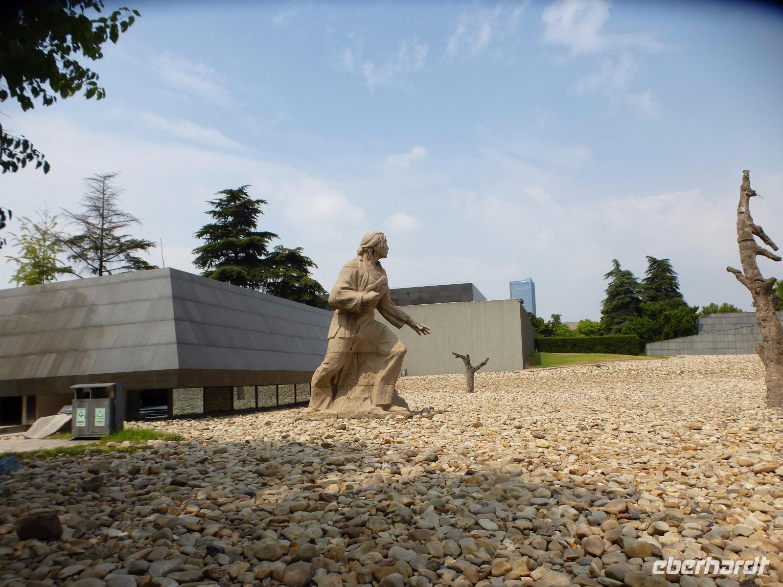 Der nächste Stopp an der Gedenkstätte für das große Nanjing Massaker im Jahre 1937 traf uns, mit der gezeigten Grausamkeit der Kriegsverbrechen, ziemlich unvermittelt. Große bronzene Skulpturen, die das Leiden der chinesischen Bevölkerung von Nanjing eindrücklich zeigen, begleiten den Besucher hinein in das Museum, das genau an dieser Stelle, wo die japanischen Aggressoren die Stadt überfielen und ein unbeschreibliches Blutbad anrichteten, errichtet wurde. Hier hat China einen neuen Museums- und Gedenkkomplex errichtet, der sich auf 120.000 m² ausdehnt, und der, neben dem historischen Museum mit Archiv, auch ein Memorial, Gedenktafeln, einen von Japan gestifteten Friedensgarten, Skulpturen und eine überdimensionale bronzene Totenglocke beinhaltet. Reichlich betreten traten wir die Weiterfahrt an, vorbei an einer Skyline, die an New York erinnert.