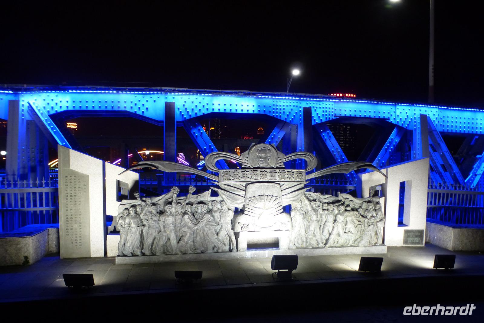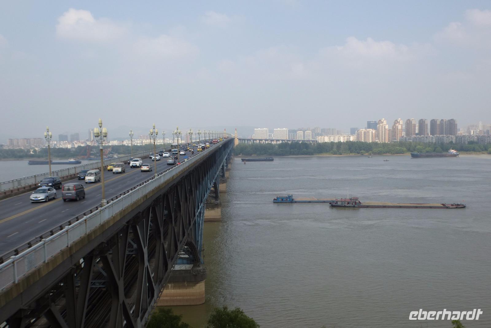 Heute Morgen stand die gewaltige Brücke über den Jangtse auf unserem Besichtigungsprogramm. Mit 6772 Metern Länge gehört sie zu den längsten zweistöckigen Auto- und Eisenbahnbrücken der Welt. Die vierspurige Straße wird gesäumt von einem breiten Fußgängerweg, die Eisenbahngleise hängen eine Etage tiefer. Gleich zu Beginn der Brücke stehen monumentale Skulpturen der sozialistischen Helden der Arbeit, die dieses Bauwerk, im Jahre 1969 eröffnet, errichtet haben. Von der alten Stadt Nanjing, die einst die Hauptstadt des Reichs gewesen war, ist kaum noch etwas zu sehen. Die wenigen Reste der Vergangenheit stehen im Schatten gewaltige Hochhäuser und warten auf ihre Restaurierung. Auf den Trommelturm konnten wir nur einen kurzen Blick werfen, er steht wie auf einer Insel in einem herrlichen Garten, um den der Verkehr tost. Gleich daneben ragt Chinas dritthöchstes Hochhaus aus Stahl, Beton und Glas in den dunstig verhangenen Himmel, der 450 Meter hohe Zifeng Tower. Auf engstem Raum sieht man hier die Gegensätze des modernen China zwischen Tradition und Wandel und fragt sich, ob all die gewaltige Büro- und Wohntürme wohl noch nach den Prinzipien des Feng Schui gebaut wurden.
