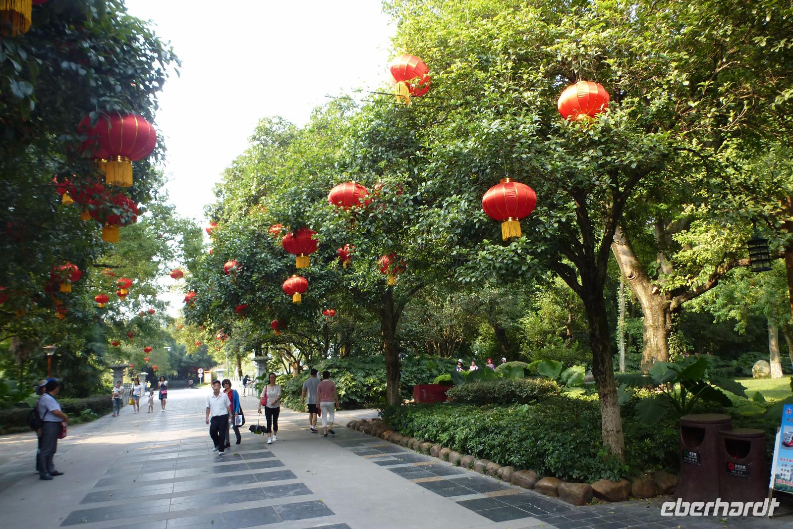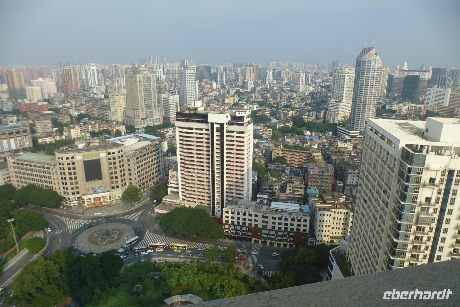 Auf der Rückfahrt fuhren wir an den Felsformationen landseits vorbei, durch eine fruchtbare Ebene mit üppiger Vegetation. Zur Stadt hin sahen wir das neue China mit modernen Industrie-und Technologieparks und der neuen Universität.