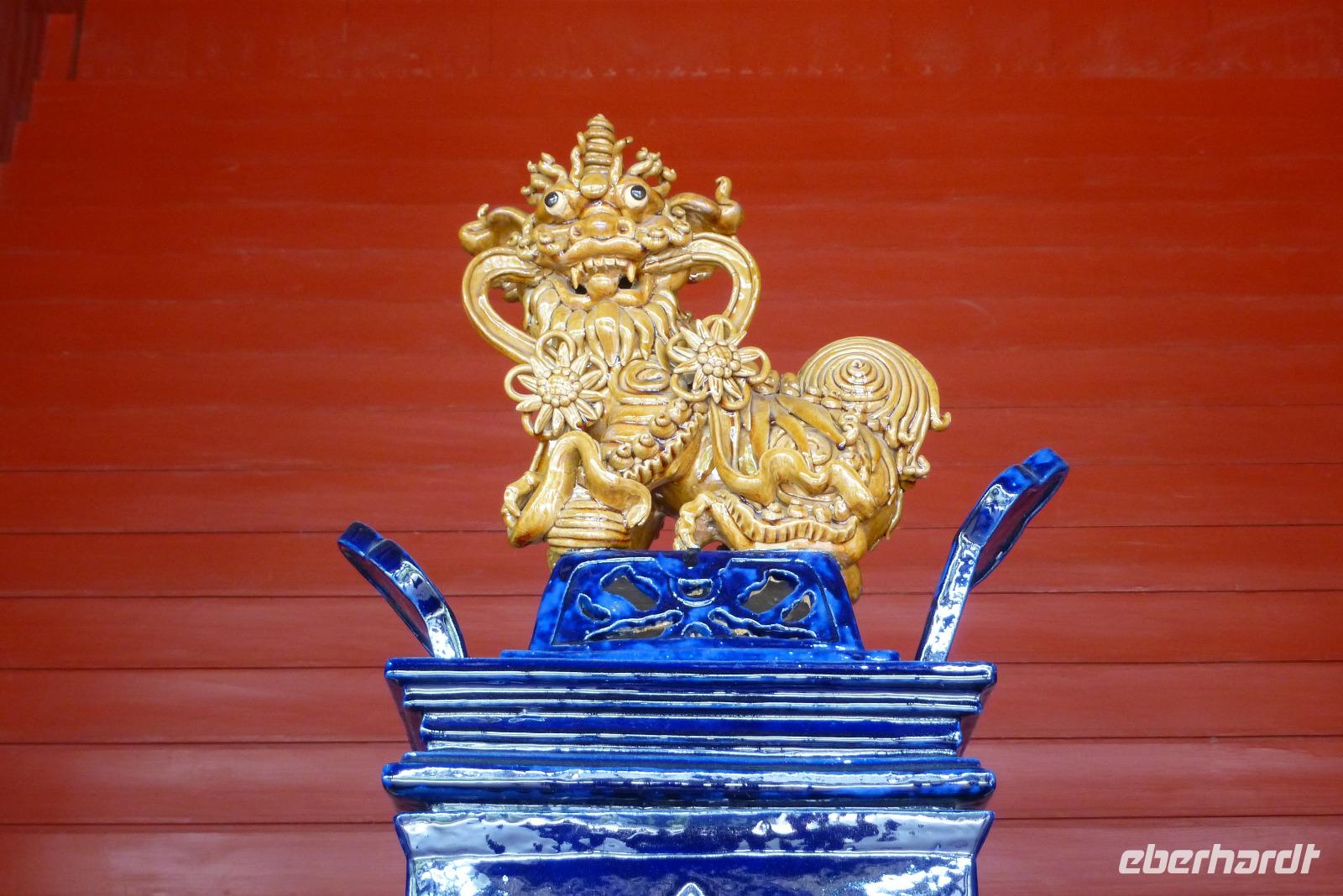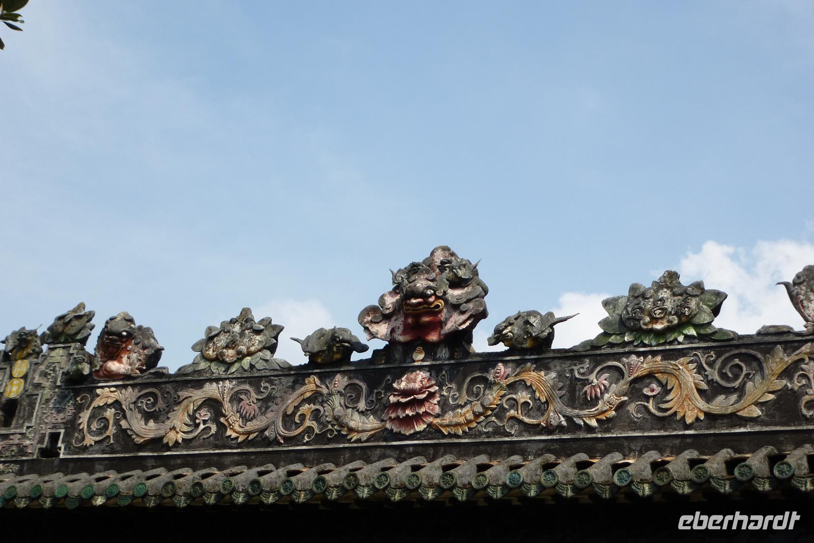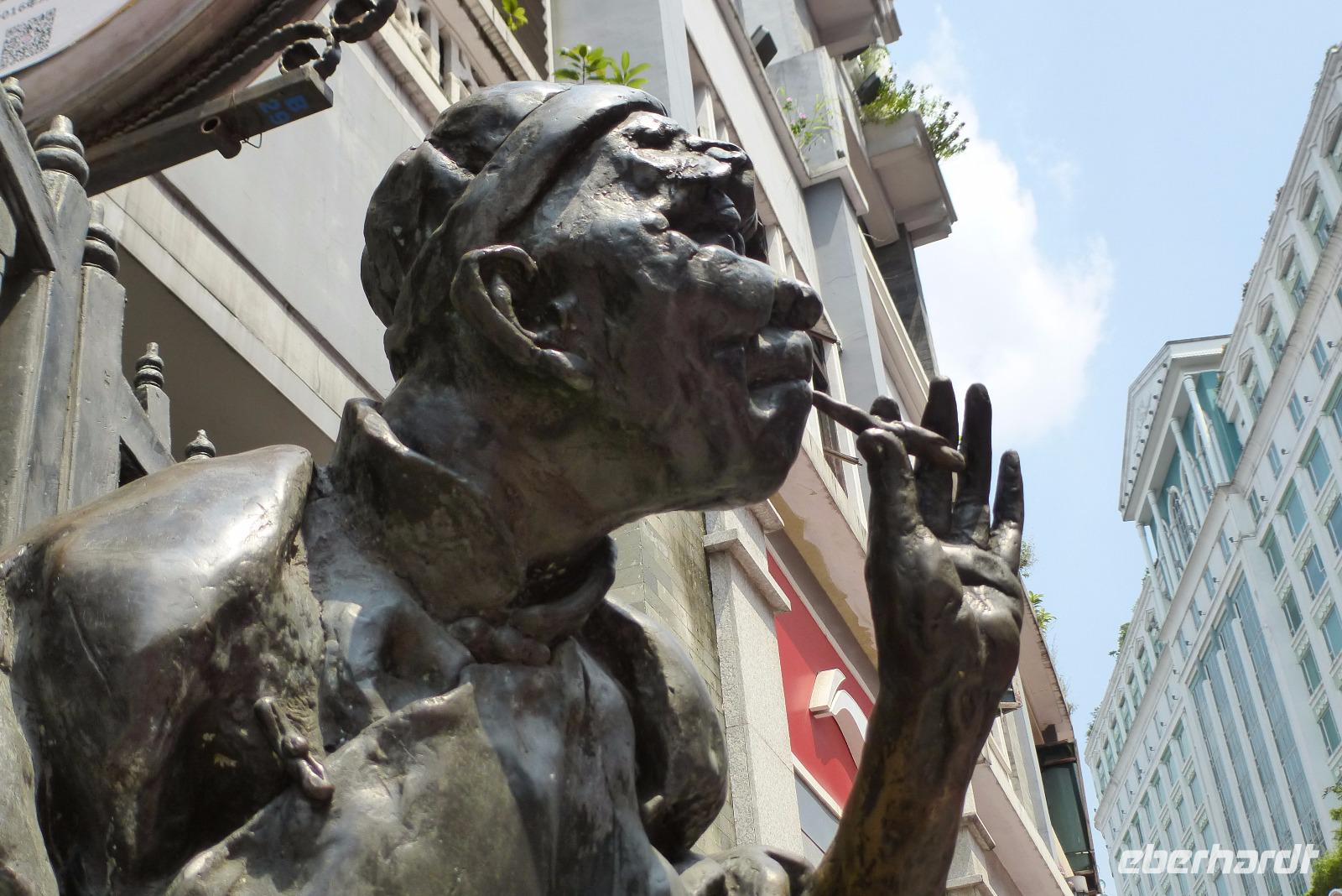 Ein weiterer Besichtigungspunkt war nachmittags der Tempel der sechs Banyanbäume. Bereits im sechsten Jahrhundert gegründet, ist diese Anlage das Zentrum buddhistischen Glaubens in der Stadt. In der Mitte steht eine tausendjährige Pagode, die 57 Meter in die Höhe ragt. Auf einen Aufstieg haben wir weise verzichtet, denn die im äußeren erkennbaren neun Stockwerke entpuppen sich im Inneren zu siebzehn Etagen - zweihunertfünfzig Treppenstufen in diesem Klima, darauf konnten wir gut verzichten.