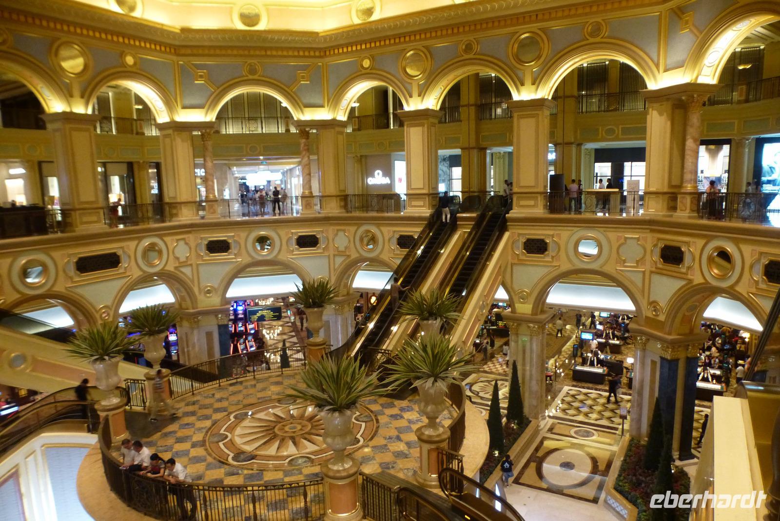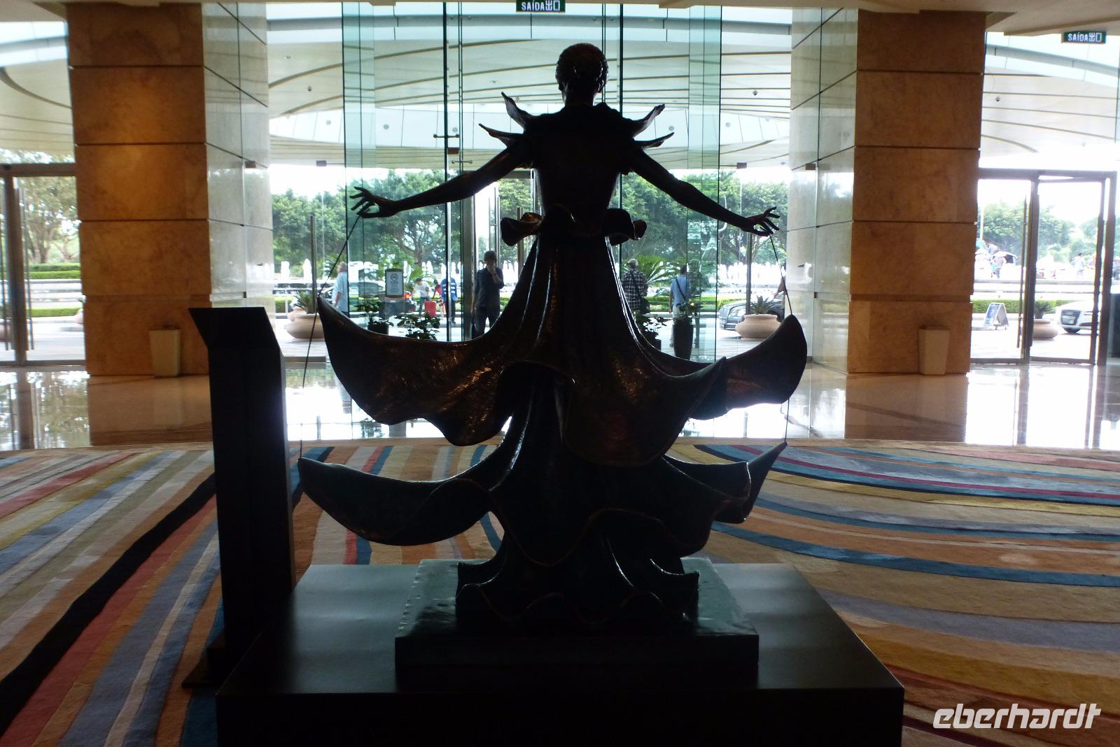 Heute hieß es Abschied nehmen: zuerst einmal von unserer chinesischen Reiseleiterin Lin, die uns in den letzten drei Wochen mit viel Charme ihr Wissen über Land und Leute dieses unvergleichlichen Landes vermittelt hat. Wir haben durch sie China besser kennengelernt und viel mit ihr auf dieser gemeinsamen Reise erlebt. Wir werden uns an ihre freundliche Art mit Sicherheit noch lange erinnern! Herr Shen hat uns dann bis Macau begleitet. Er hat uns Interessantes über die Bauern am Unterlauf des Perlfluss erzählt. Die Einen verdienen ihr Geld mit künstlich ausgegrabenen Seen, in denen sie etagenweise verschiedene Fische, Reptilien und Enten züchten, die Anderen unterhalten Gemüse- und Naßreisfelder oder Obstplantagen mit Bananenstauden, Litschi- und Granatapfelbäumen. Der Verkauf dieser Produkte in den Städten ernährt eine ganze Großfamilie. Nach ca. zwei Stunden erreichten wir die sogenannte Sonderzone. In dem kleinen ehemaligen Fischerort Zhuhai, gleich neben Macau, wurde von der chinesischen Regierung die Einführung der Marktwirtschaft mit vollem Erfolg erprobt. Hier gibt es kleinere Industriebetriebe für Hightech, Klimaanlagen, Uhren und sonstige Kleingeräte. Die Idee, durch eigene Bemühung und eigene Arbeit ein hochgestecktes persönliches (wrtschaftliches!) Ziel zu erreichen, hat hier mustergültig funktioniert. Der Ort ist ein mondäner Badeort an der chinesischen See geworden, mit langen Sandstränden, gepflegten Parkanlagen und schicken modernen Hotelkomplexen. Mitten im Meer sehen wir eine gigantische Brücke. Mit ihren 80 Kilometern Länge verbindet sie seit zwei Monaten erst Macau mit Hongkong. Gleich neben dem Bahnhof von Zhuhai liegt die Grenzstation hinüber nach Macau. Und dann hieß es heute ein zweites Mal Abschied nehmen: Wir verließen China und reisten in Macau ein. Unser neuer Gästeführer Peter führte uns zuerst in das sehr interessante Museu de Macao. Große Dioramen geben einen lebendigen Einblick in die Vergangenheit der ehemaligen portugiesischen Kolonie. Ergänzt mit originalen Stücken, Fotos und Nachbildungen vermittelt das Museum spannend und interessant die Geschichte der ganzen Region. Anschließend spazierten wir über die alten Befestigungsmauern und bewundertn die gewaltigen Kanonen der Portugiesen. Wenige Schritte entfernt steht noch die Fassade der St. Pauls Kirche, die nach fast 60-jähriger Bauzeit im Jahre 1640 geweiht wurde. Uns stand der Sinn aber nicht nach Weltkulturerbe, sondern nach einem erfrischenden Getränk. Und so sind wir gemütlich durch die Altstadt gelaufen, jeder nach seinem Interesse, ins chinesische Viertel, zu den vielen europäischen Markenläden, oder einfach in ein Café zum Ausruhen. Überall begleitete uns der köstliche Duft von frisch gebackenen Keksen, eine der Spezialitäten von Macau, die wir gleich probieren durften. Am Nachmittag sind wir dann in das große MGM Casino und waren von der Größe und Inneneinrichtung dieses Gebäudes beeindruckt. Ein riesengroßes gut zehn Meter hohes Aquarium mit tropischen Fischen und einem Rochen faszinierte uns mehr als die Glücksspieler an ihren Tischen. Nach einem leckeren Abendessen mit gegrillten Seefischen und Garnelen zog es uns noch ins Nachtleben von Taipa. Auf dieser Insel von Macao gibt es die besten Hotels und größten Casinos. Zurecht nennt man Macao auch das Las Vegas des Ostens! Wir gelitten auf Rollgehstegen an den neonbeleuchteten Fassaden vorbei, bis zum Spielcasino Venezia. Dieses Etablissement macht seinem Namen alle Ehre! In der unteren Etage befinden sich die Spieltische, in der oberen Etage überraschte uns ein Nachbau von Venedig, der fast schöner ist als das Original: mit properen Kanälen, Gondeln und italienisch singenden Gondolieri! Überall sind lichtdurchflutete Läden internationaler Marken mit einem Angebot an Luxusartikeln, bei dem wir uns gefragt haben, wer sich diese Dinge denn alle leisten kann. Diese künstliche Glitzerwelt musste man einfach einmal gesehen haben.