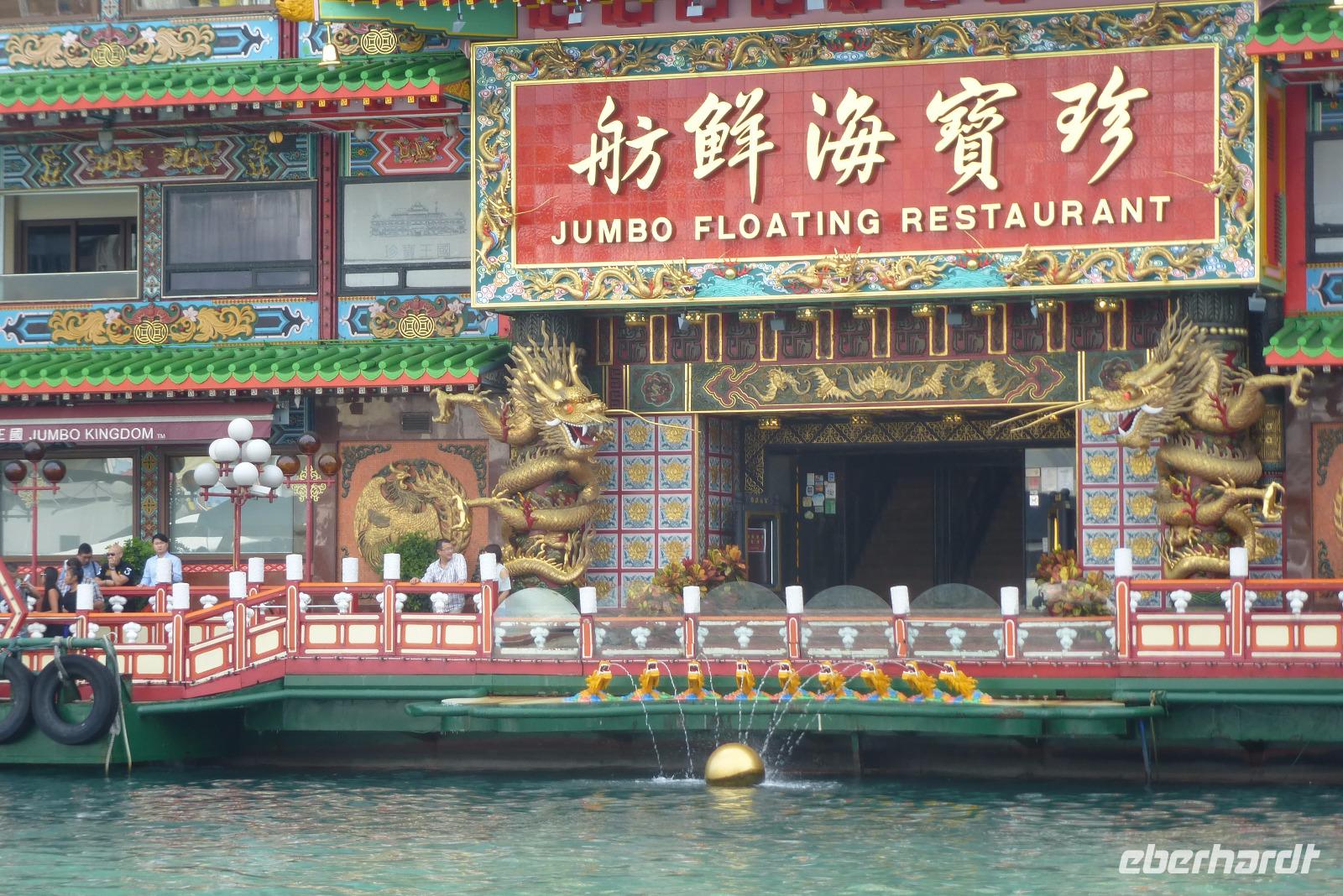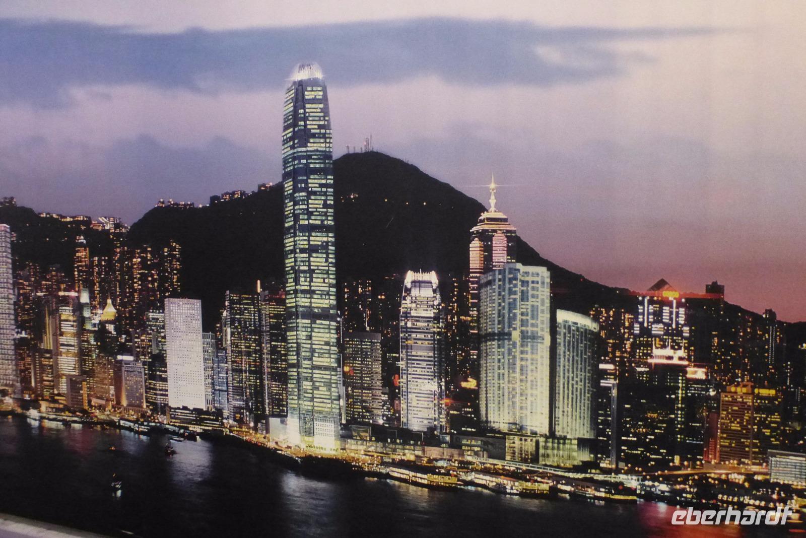 Mit dem Cotai Water Jet flogen wir heute morgen über die Wellen des chinesischen Meeres, vorbei an der grünen Inselwelt, nach Hongkong. Schon nach einer Stunde tauchte die berühmte Skyline der ehemaligen englischen Kronkolonie aus dem Wasser auf. Nachdem wir die erstaunlich kurzen Einreiseformalitäten erledigt hatten, erwartete uns schon Winnie, unsere neue Gästeführerin. Sie machte uns gleich den Vorschlag, mit einer der ältesten Standseilbahnen der Welt auf den Victoria Peak hinauf zu fahren. Eine gute Idee, hat man doch von dem 552 Meter hohen Berg den schönsten Blick auf die atemberaubende Skyline von Hongkong. Hier haben international renommierte Architekten Zeichen gesetzt. Das höchste der Gebäude der Stadt steht im Central District. Es ist der 420 Meter hohe Turm des internationalen Finanzzentrums, Two IFC. Er hat 88 Stockwerke, eine magische Zahl, die bei den Chinesen Glück bedeutet. Es war nicht ganz einfach, uns an den Linksverkehr und den Fahrstil in Hongkong zu gewöhnen. Hier ist alles noch hektischer als in Chinas Städten. Nach mehreren Fotostopps sind wir schließlich im alten Hafen von Aberdeen angekommen. Dort sind wir mit einem kleinen Sampanboot kreuz und quer zwischen Hausbooten, rostigen Lastkähnen und schicken Motoryachten durchgefahren. Mitten in diesem Hafen liegt das Jumbo- Restaurant vor Anker, es sieht aus, wie ein alter buddhistischer Tempel.