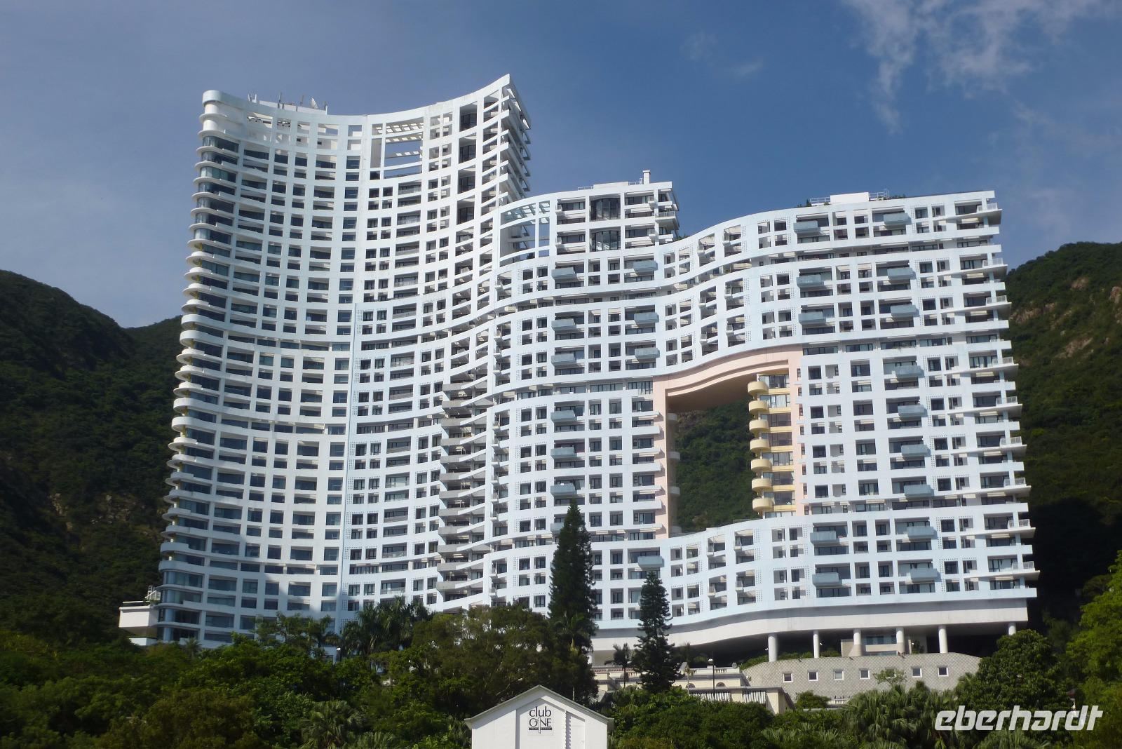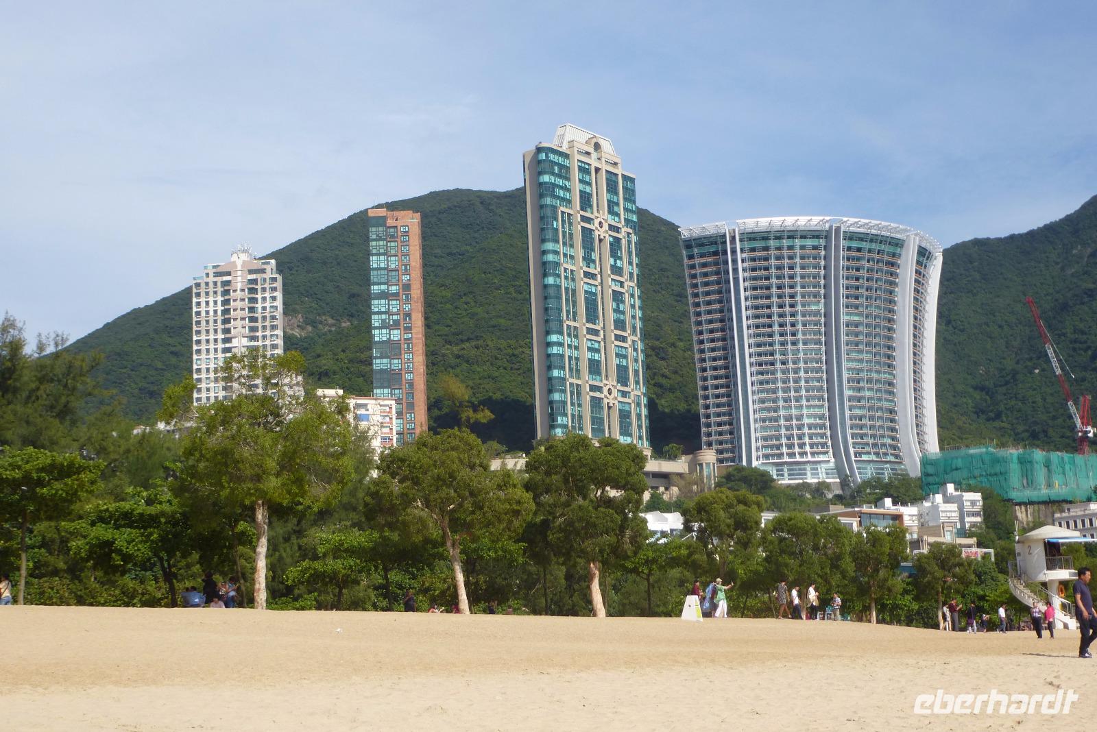 Weiter ging es mit dem Bus zur Repulse Bay, einem beliebten Badeort mit feinem Sandstrand. Bei herrlichem Sonnenschein, 30° Celsius und leichter Brise vom Meer, schlenderten wir unter Palmen am Strand entlang. Jeder von uns konnte sich vorstellen, hier einen längeren Badeurlaub zu verbringen. Im Hintergrund liegen grüne Inseln im Wasser und auf der Landseite ist die Bucht von dicht bewaldeten Bergen geschützt. Man sagt, dass in diesen Bergen ein Drache lebt. Um ihm den Weg zum Meer mit den vielen Neubauten nicht ganz zu blockieren, hat eines der Hochhäuser in der Mitte eine riesige Aussparung. So kann der Drache noch weitere Jahrtausende, ungestört von der Immobilie, zu seinem morgendlichen Bade fliegen.