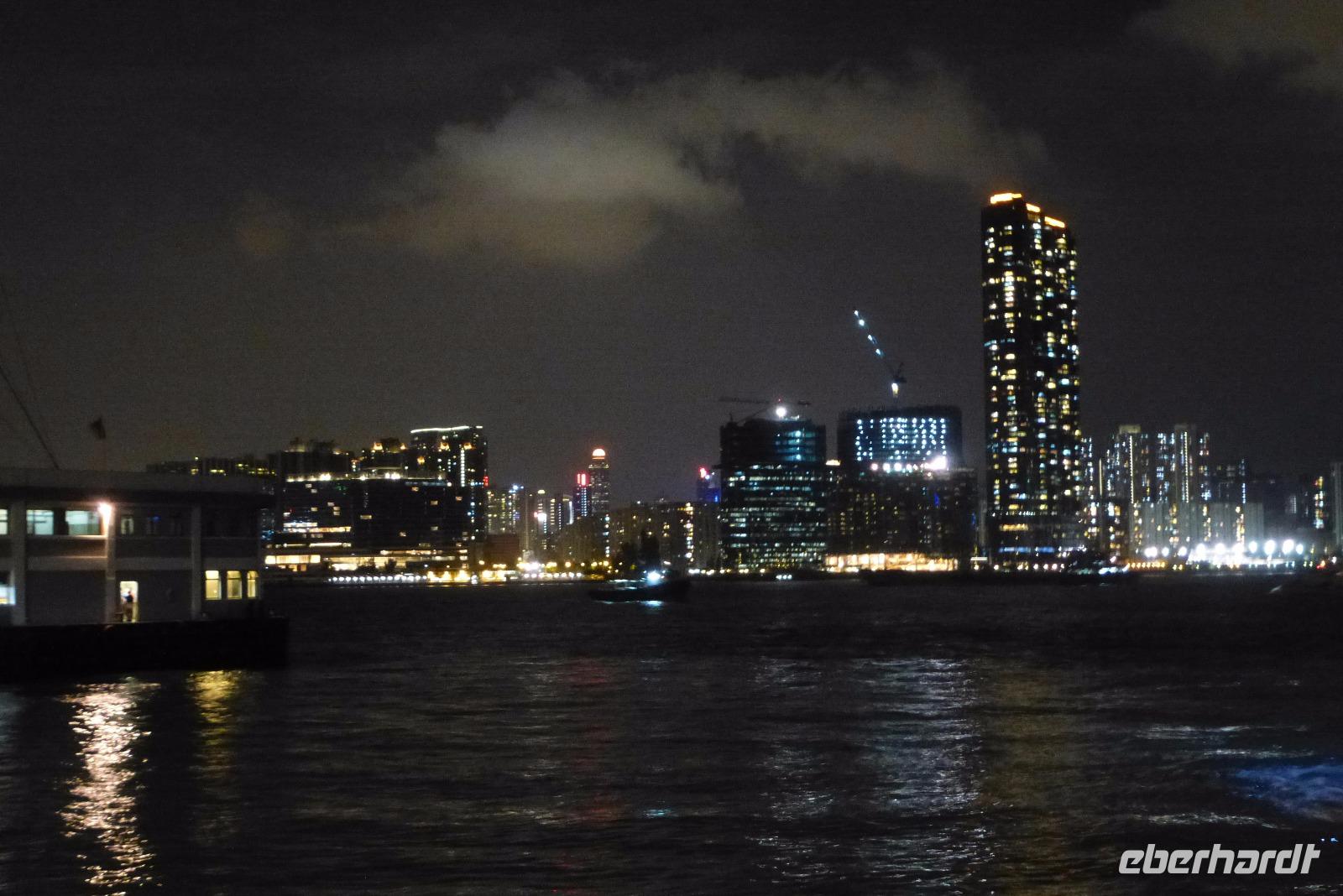 Den letzten Abend unsere Chinareise verbrachten wir an Bord eines Schiffes. Gemütlich ließen wir das nächtliche Lichter glänzende Hongkong an uns vorüber ziehen. Glitzernde Werbung wetteiferte mit der Lasershow, die allabendlich die Wolkenkratzer diesseits und jenseits der Bucht miteinander verbindet. Unter Deck gab es unser letztes gemeinsames Abendessen: ein leckeres Buffet, mit europäischen Köstlichkeiten, die uns schon langsam wieder auf zu Hause einstimmten.