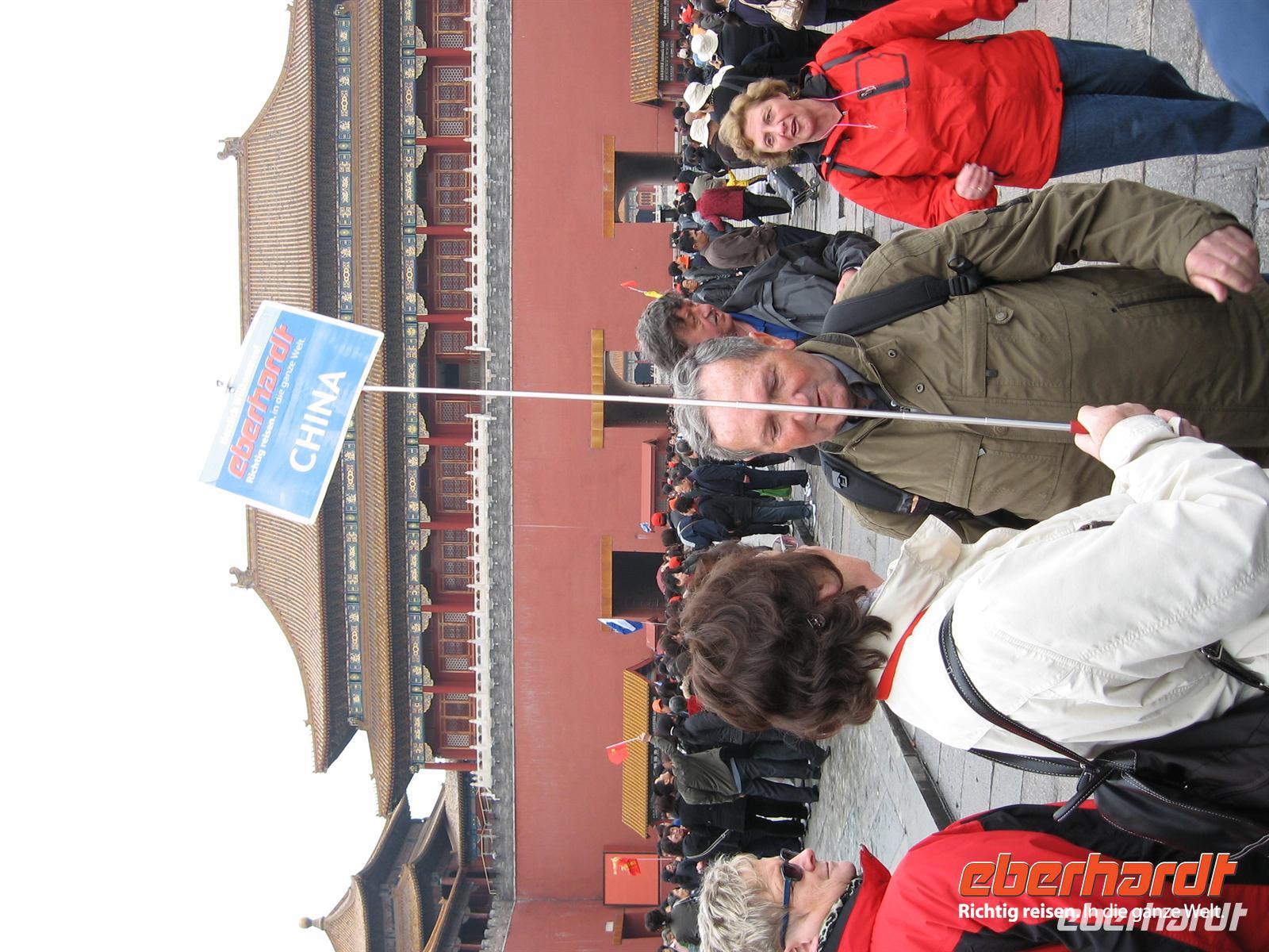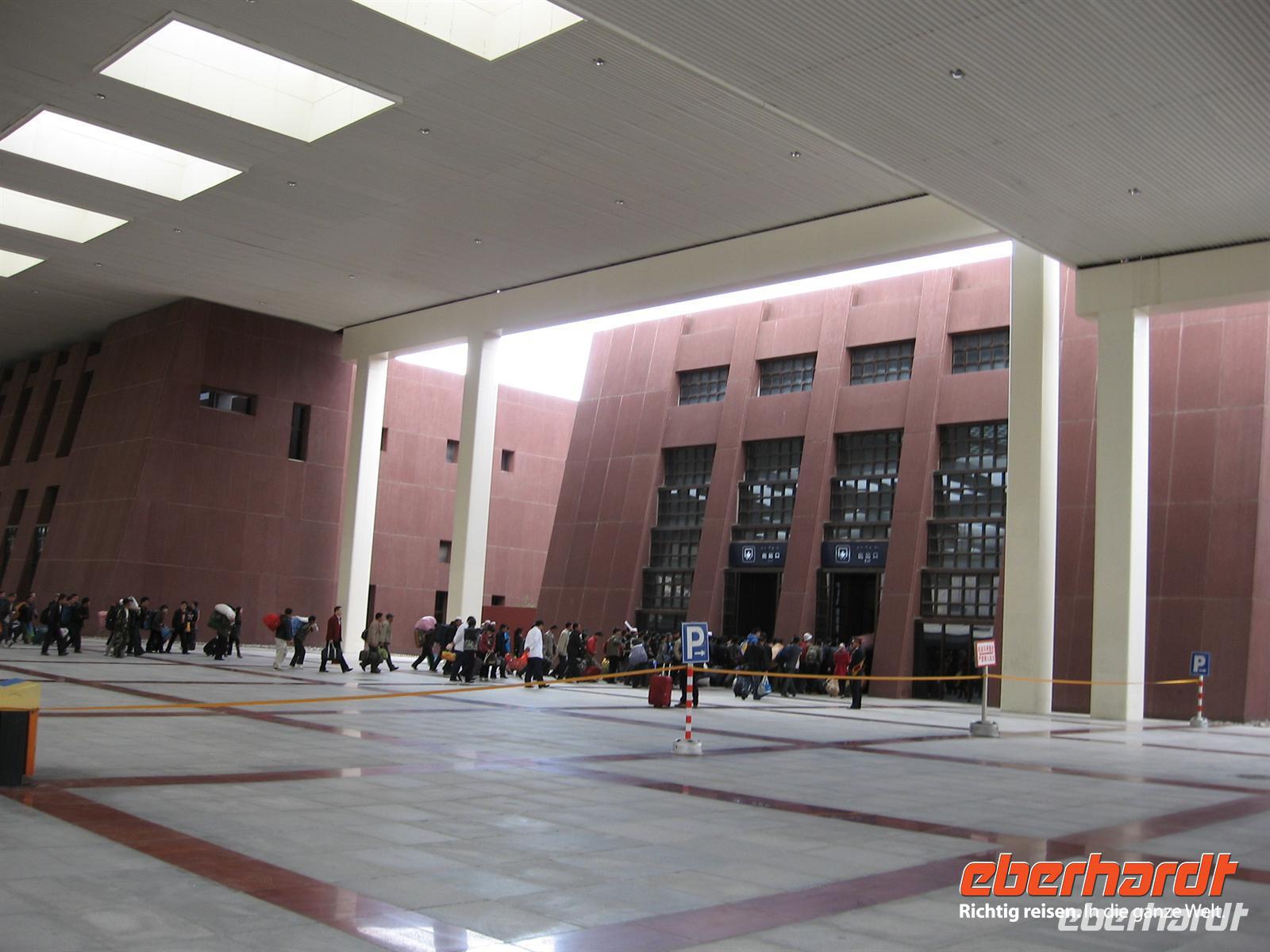 Bereits während des Fluges mussten wir die Uhren um sechs Stunden vorstellen, die Chinesen sind uns sozusagen voraus. Manchmal kann man das tatsächlich annehmen, der neue Flughafen von Peking ist schon für die Zukunft gebaut. Die Einreise erfolgt unkompliziert, danach geht es mit einem vollautomatischen Zug weiter zum Gepäckband und schon ist die Gruppe eingereist. Empfangen werden wir durch den Reiseleiter Herrn Meng. Er wird uns die ganze Reise über betreuen.