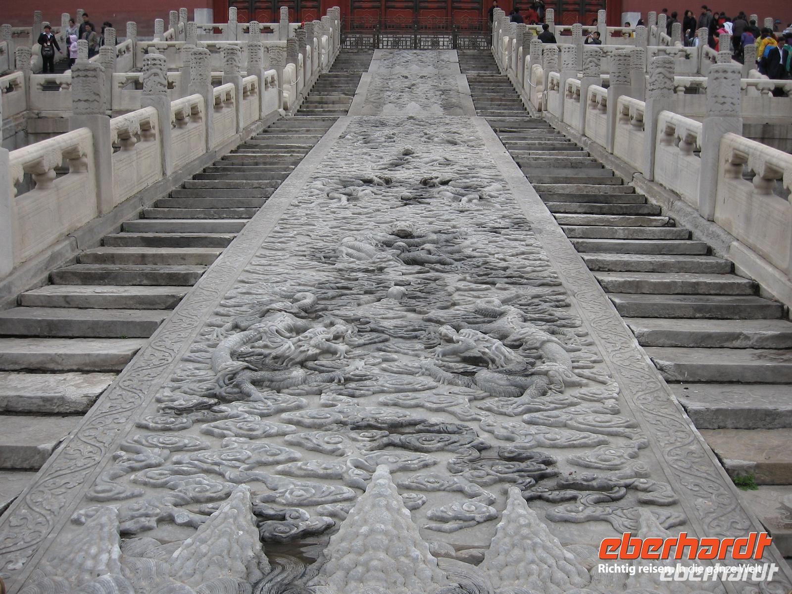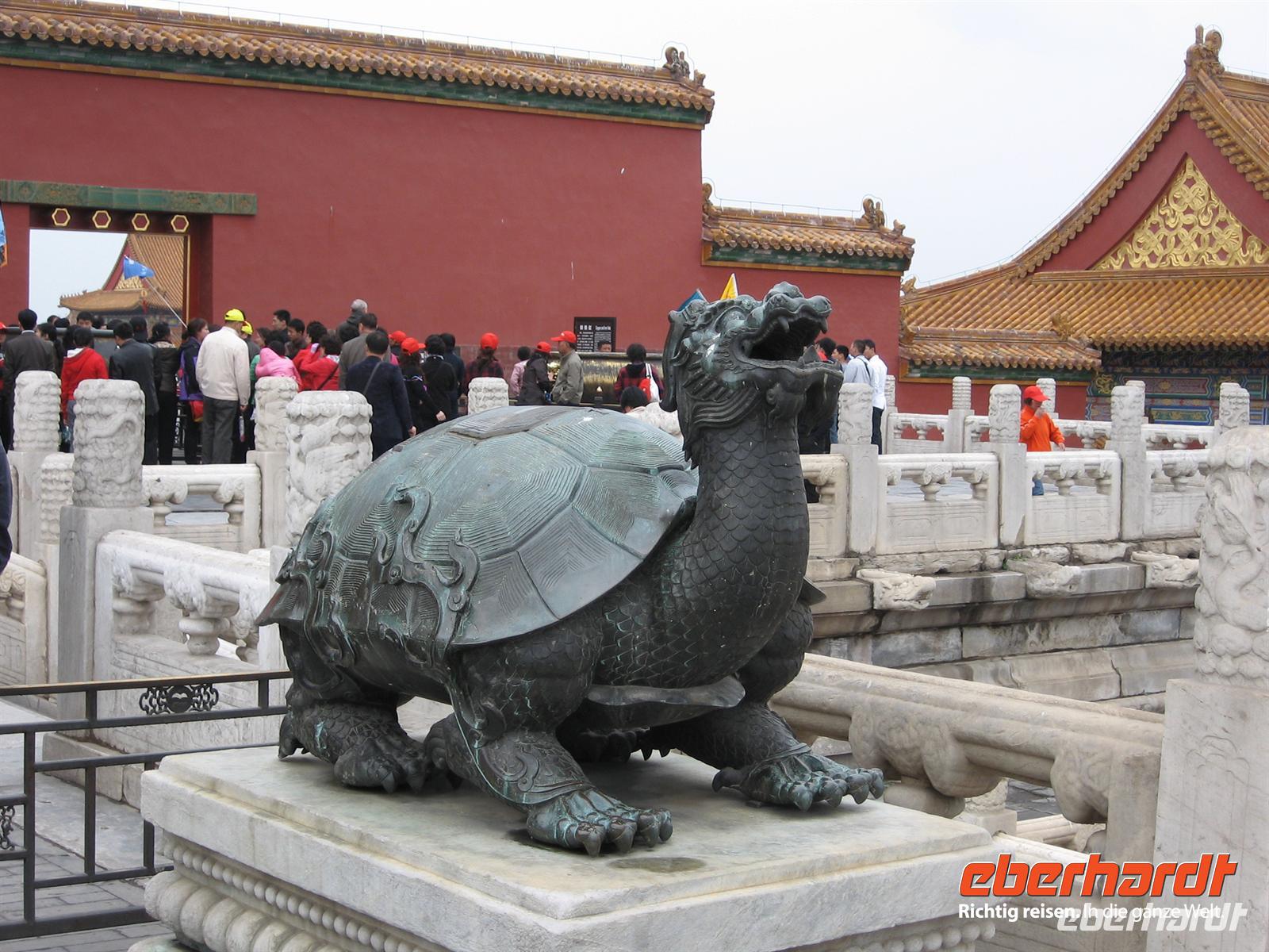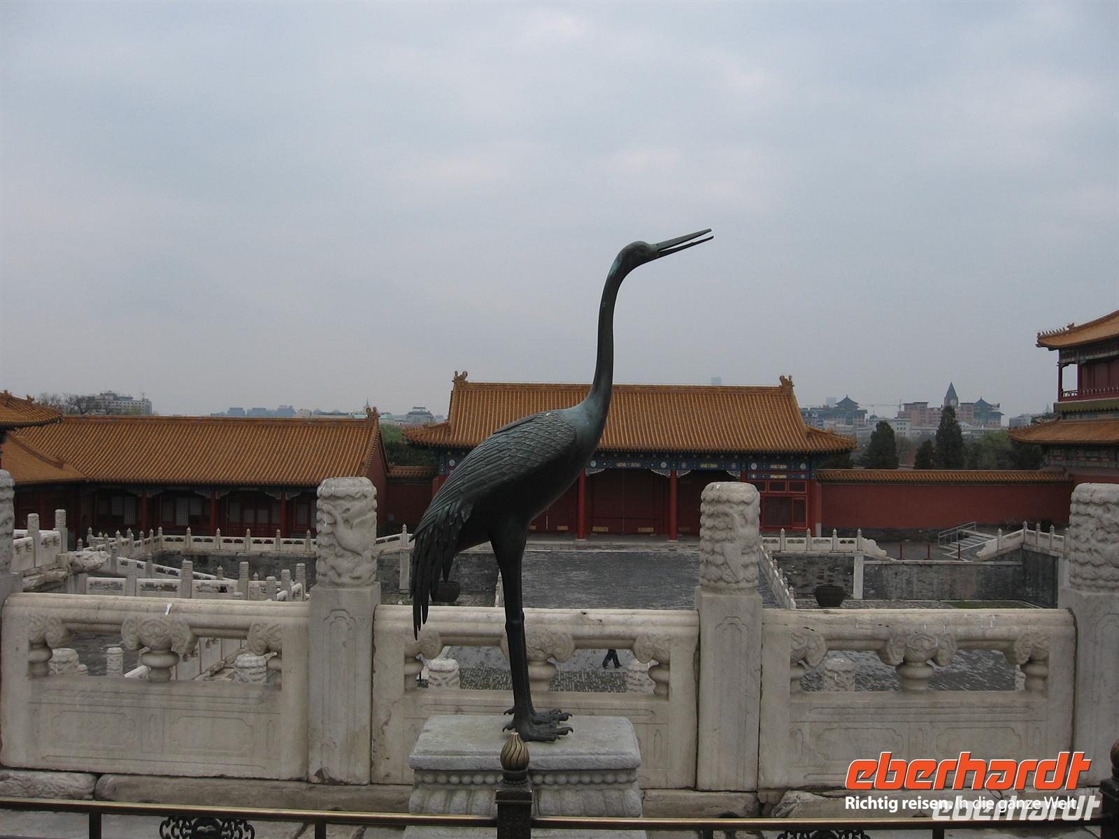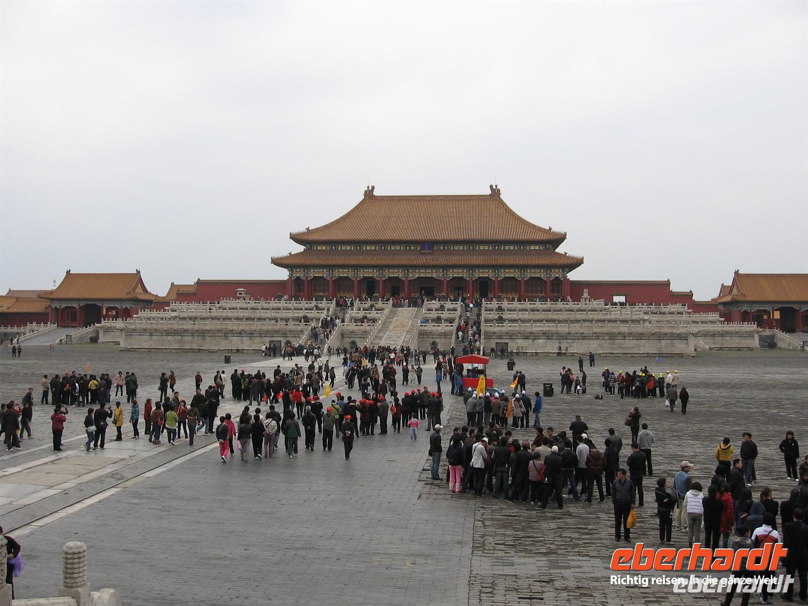 Mit dem Bus fahren wir dann ins Zentrum von Peking, der Hauptstadt der Volksrepublik China. Ich selbst war das letzte Mal 2004 in Peking und erkenne die Stadt nicht wieder. Hochhäuser prägen heute mehrheitlich das Bild. Wir fahren zum Platz den Himmlischen Friedens. Dort sehen Sie das Mausoleum von Mao und das Gebäude des Volkskongresses. In diesem gibt es einen Plenarsaal wo 10000 Gäste Platz finden. Auf der anderen Seite der Straße sehen wir schon den Eingang zum Kaiserpalast, über dem Eingang prangt nach wie vor das Bild des großen Vorsitzenden Mao. Das Bild wird jedes Jahr ausgetauscht, damit er auch immer schön jung und strahlend aussieht. Anschließend laufen wir durch das Areal der Kaiserstadt und besichtigen einige der Paläste. Etwas Abseits können wir auch die ehemaligen Privatgemächer des Kaisers und seines Personals sehen. Das Wetter meinte es nicht so gut mit uns, es war recht kalt und trüb an diesem Tag. Zur Entspannung besuchten wir danach das Zentrum für traditionelle chinesische Medizin. Alle Gäste, die es wollten, konnten sich bei einer Fußmassage entspannen. Dazu bekamen wir einige Grundregeln der Traditionellen Chinesischen Medizin vermittelt und wer wollte, konnte einen Professor konsultieren. Und einige Gäste verließen das Haus auch mit kleinen blauen Beuteln, was da wohl so drin war? Anschließend waren wir Abendessen - unsere erste Begegnung mit der chinesischen Küche. Allerdings war das Essen auf uns Europäer zugeschnitten. Gegessen wurde an einem Drehtisch, das macht Freude, immer wenn ich mich entschieden hatte, war das Essen schon wieder einen Platz weiter. Satt geworden sind wir alle. Nun fahren wir zum Westbahnhof von Peking, um mit dem Zug T27 nach Lhasa zu fahren. Auf dem Bahnhof herrscht ein unwahrscheinliches Gedränge, aber unser Reiseleiter Herr Meng hat den Durchblick und so kommen wir sicher zum Zug. Bereits im Bus habe ich die Gäste auf die einzelnen 4-Bett Kabinen verteilt, wir fahren erste Klasse. In der zweiten Klasse schlafen immer 6 Personen in einer Kabine. Zuerst kommt es uns allen ein wenig eng vor. Nachdem wir uns alle eingefädelt haben, geht es und die Reise kann beginnen. Im Speisewagen bekommen wir etwas zu trinken, bevor wir alle müde in unser Bett sinken.
