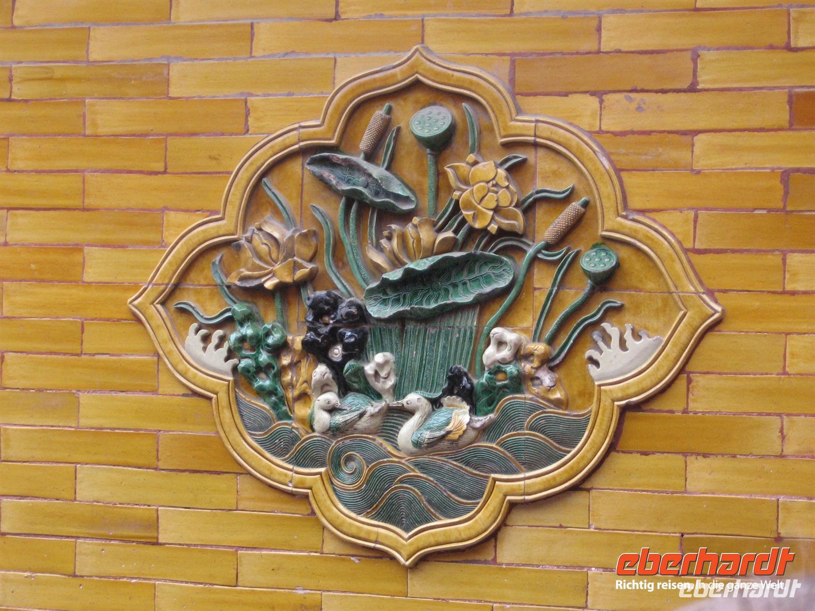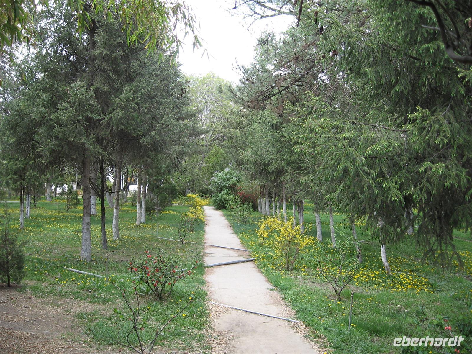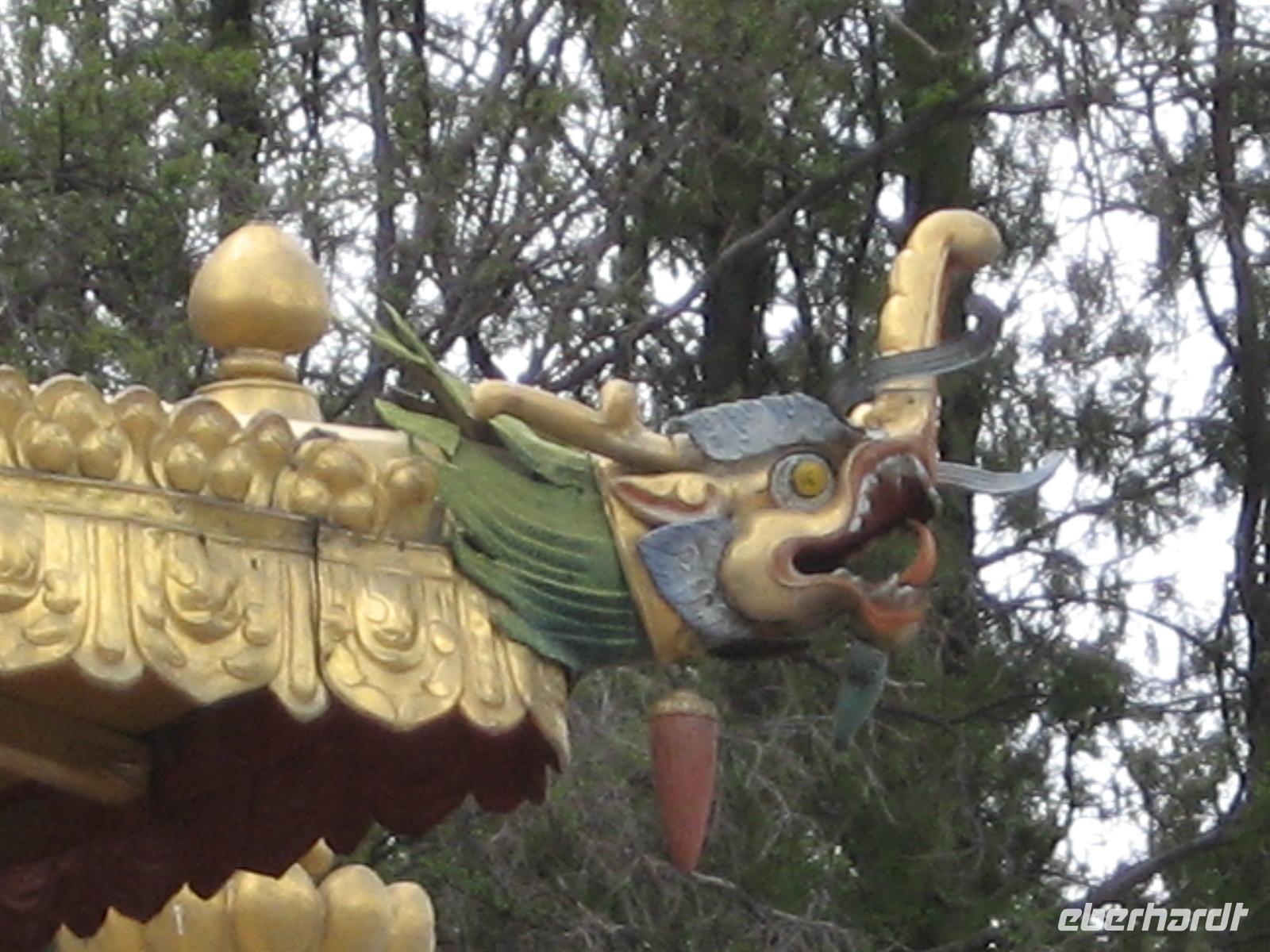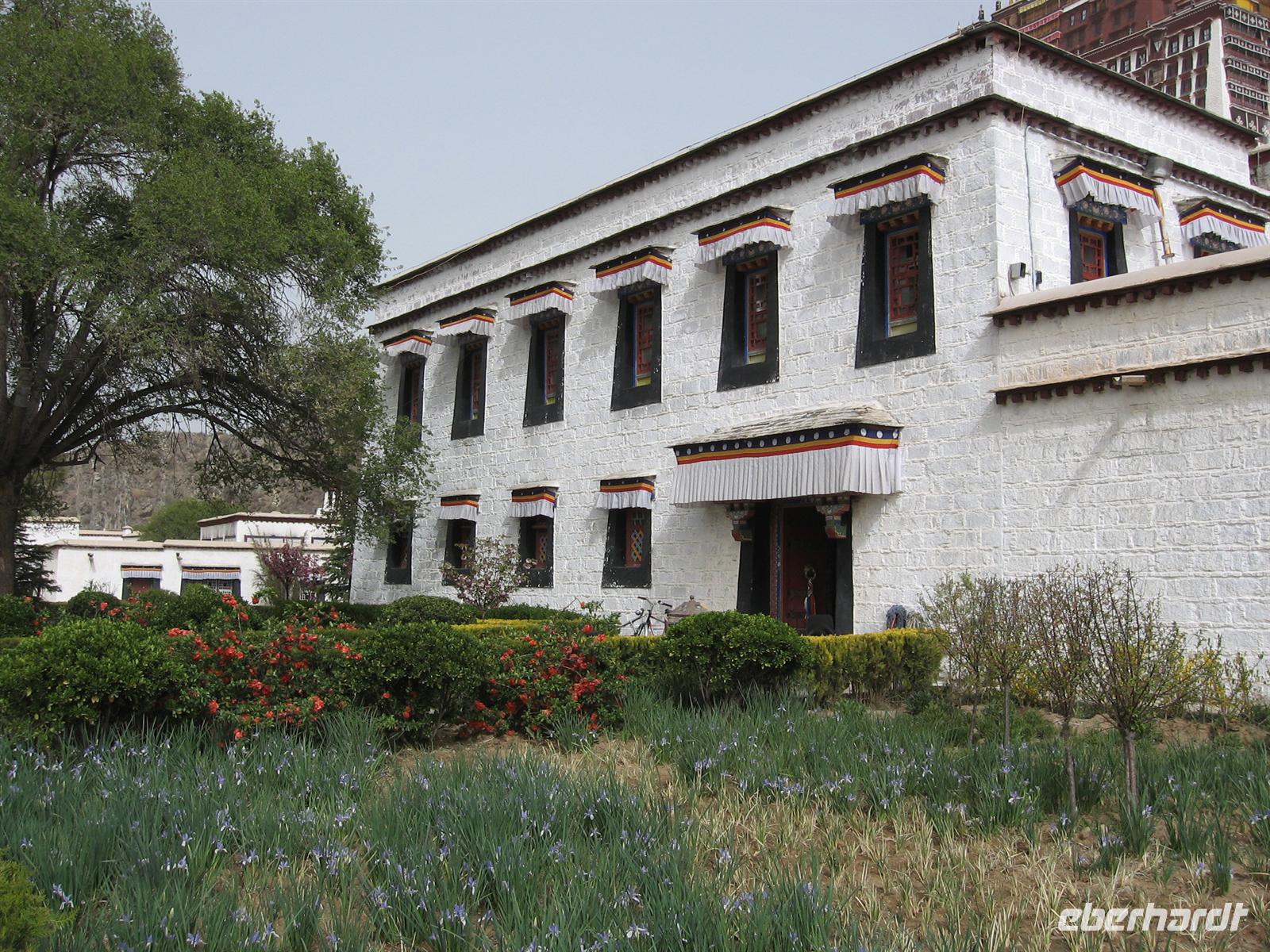 Norbulinka, der Sommerpalast des bzw. der Dalai Lamas wird am Nachmittag besucht. Das riesige Gelände dient heute als Volksgarten. Es gibt mehrere Parzellen mit den Sommerpalästen des 7. und 8. sowie des 13. und 14. Dalai Lama. Der 14. Dalai Lama, also der jetzige, hat hier bis 1959, seinem Aufbruch ins Exil nach Indien, gewohnt. In seinem erst 1956 fertiggestellten Palast besuchen wir alle zugänglichen Räume. Für tibetische Gläubige ist dieser Ort ein sehr wichtiger. Hier können sie ihrem Dalai Lama am nächsten sein, denn sein Geist weht auch heute durch diese Räume. Das ganze wunderbare Areal mit seiner schönen und gepflegten Gartenanlage gehört zum UNESCO-Weltkulturerbe.