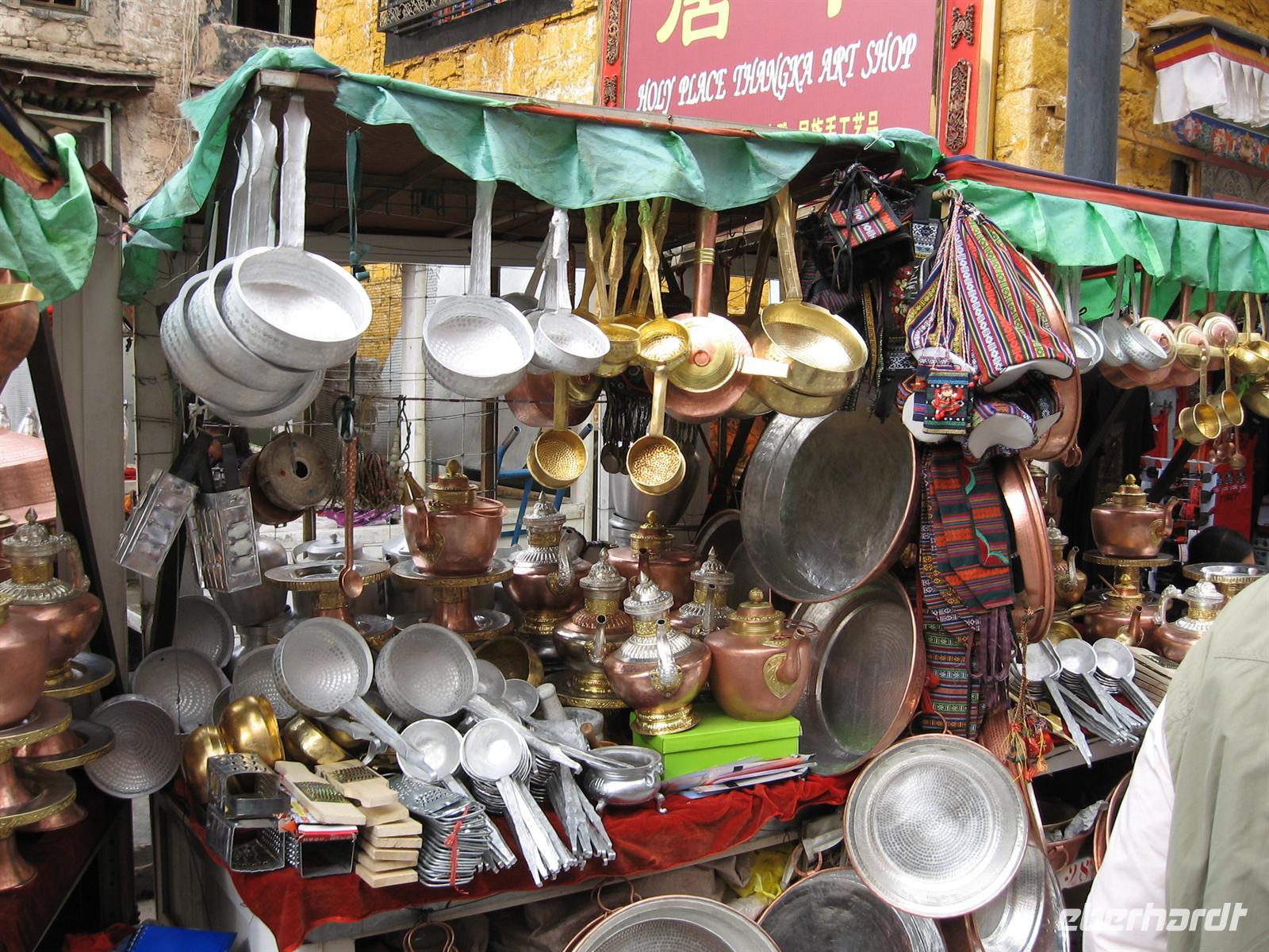 Nach unserer Rückkehr nach Lhasa bleibt am Nachmittag genug Zeit für eigene Erkundungen. Die meisten von uns zieht es erneut zur Barkhor-Straße, um das eine oder andere Souvenir zu erstehen. Handeln ist dabei Pflicht und aus unserer Sicht kann man das eine oder andere Schnäppchen machen.