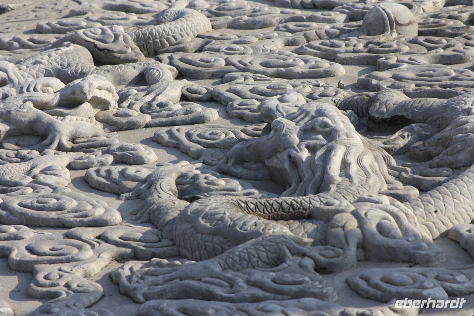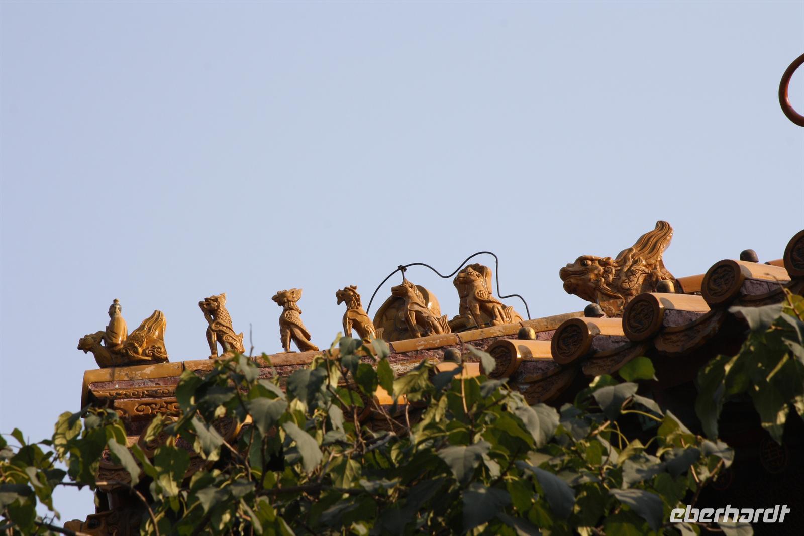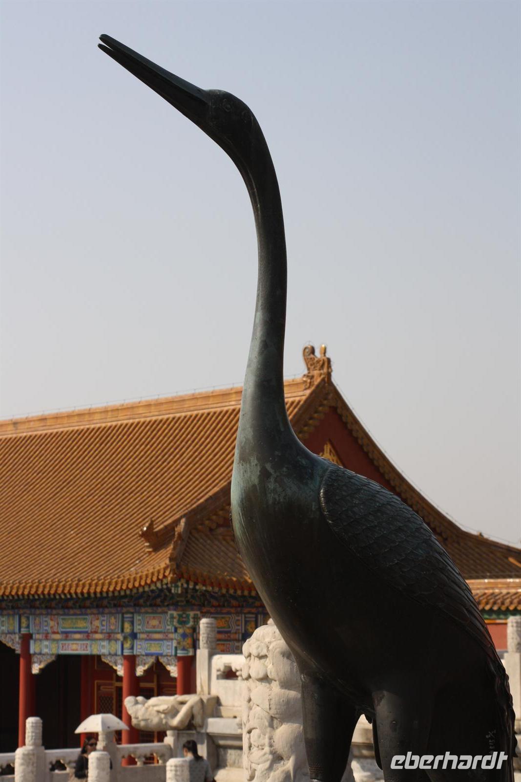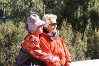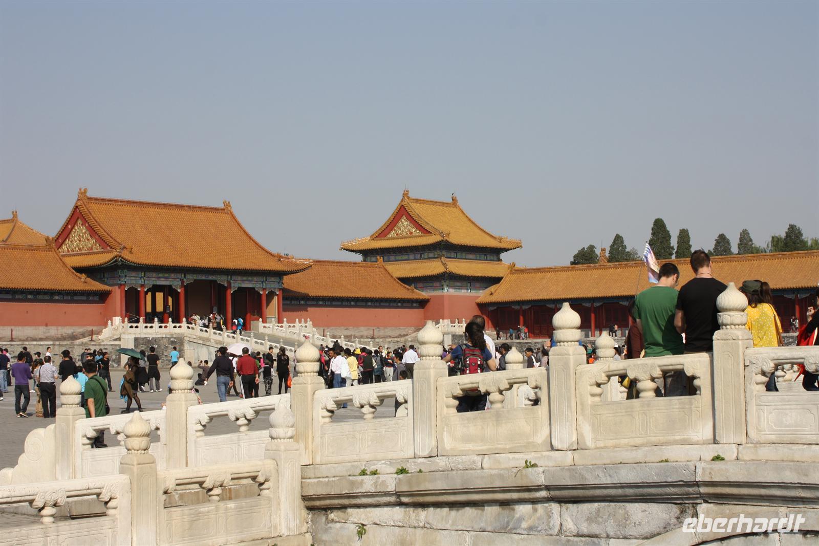 Endlich ist der lang ersehnte Tag der Abreise auf das „Dach der Welt“ gekommen! Von Dresden, Leipzig/Halle und Berlin-Tegel fliegen wir nach Frankfurt, wo uns der Superjumbo A380 von Lufthansa erwartet. Ein riesiger „Vogel“ mit über 500 Sitzplätzen! Nach knapp neun besonders ruhigen Flug-Stunden landen wir in der chinesischen Hauptstadt Peking. Mit unserem örtlichen Reiseleiter Josef fahren wir für eine kurze Erfrischungspause ins Hotel. Anschließend geht es in die „Verbotene Stadt“. Da die Chinesen „goldene Woche“ nach dem Nationalfeiertag haben, ist ganz Peking von einheimischen Touristen bevölkert. Vor den Toren der „Verbotenen Stadt“ verkaufen fliegende Händler jede Menge Klimbim, Hauptsache kitschig. Für uns sollen es wenigstens ein paar Postkarten sein. Hinter den Toren verbergen sich die drei Hallen der Harmonie mit einer beeindruckenden Architektur. Wir wandeln auf des Kaisers Spuren, auf seinen Wegen und Brücken und erfahren viel Wissenswertes über das Leben am Hofe des Kaisers, von Konkubinen und Eunuchen. Bevor wir zum Abendessen fahren, stoppen wir noch am Platz des himmlischen Friedens (Tian'anmen-Platz), der prächtig mit Blumen geschmückt ist. Am Tor des himmlischen Friedens ist das berühmte Bild von Mao Zedong zu sehen und auf dem Nationalmuseum und der Halle des Volkes zeigt China Flagge. Es war ein langer und erlebnisreicher Tag und wir freuen uns dach dem leckeren chinesischen Abendessen auf unser Bett!