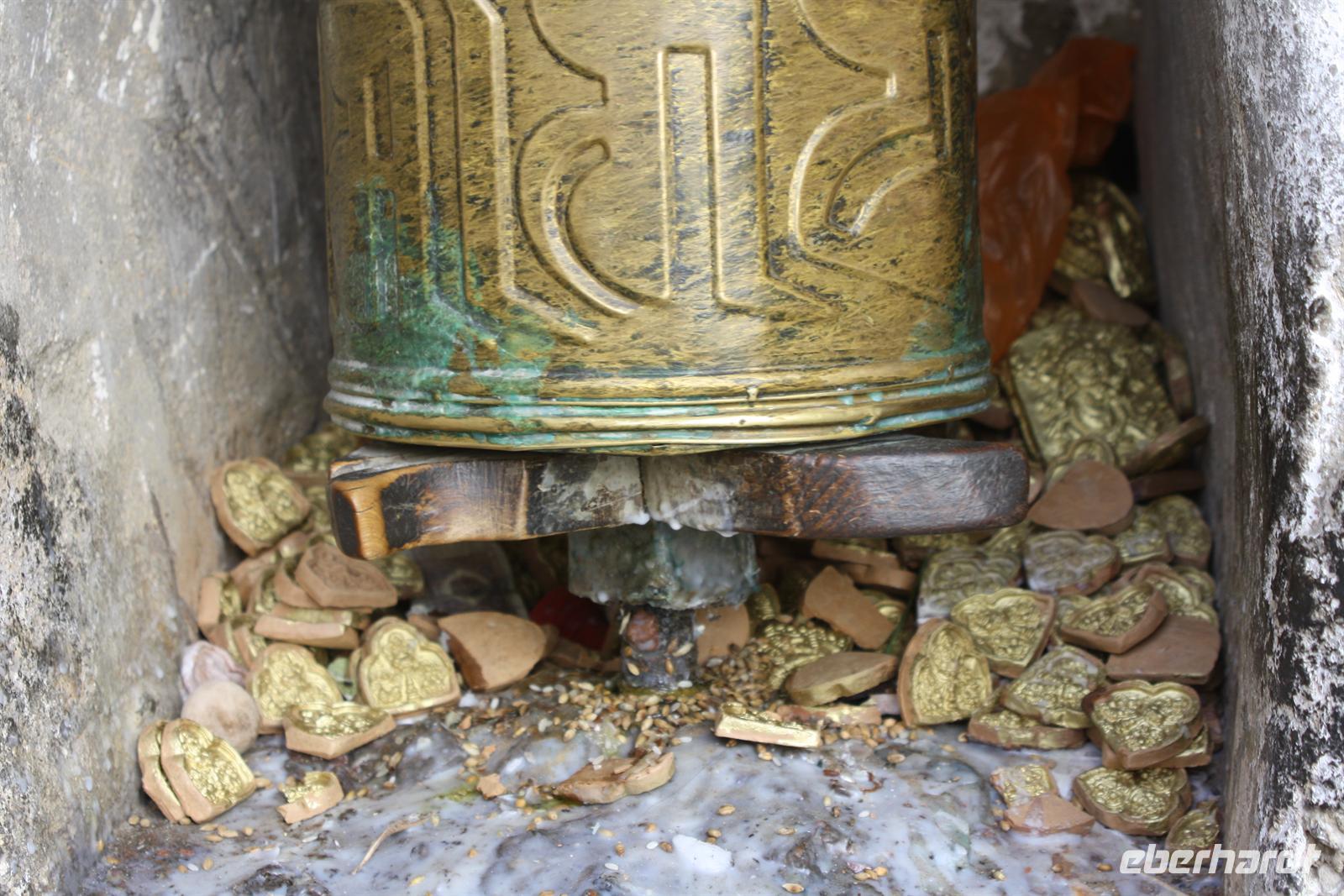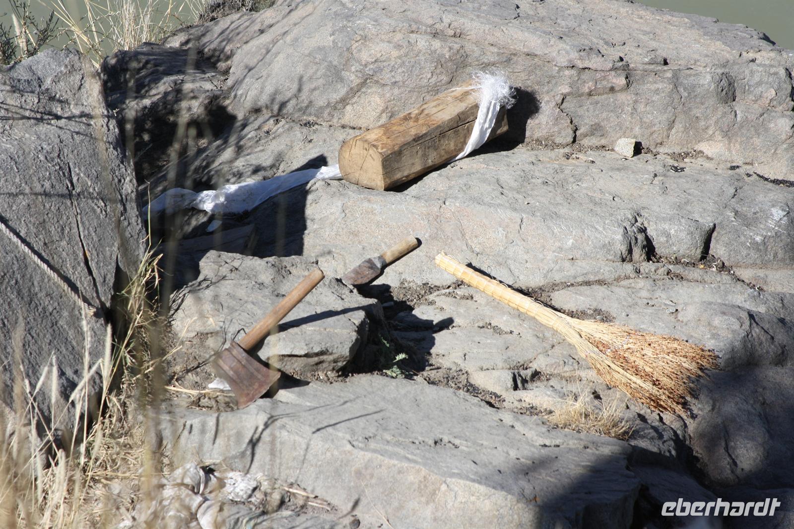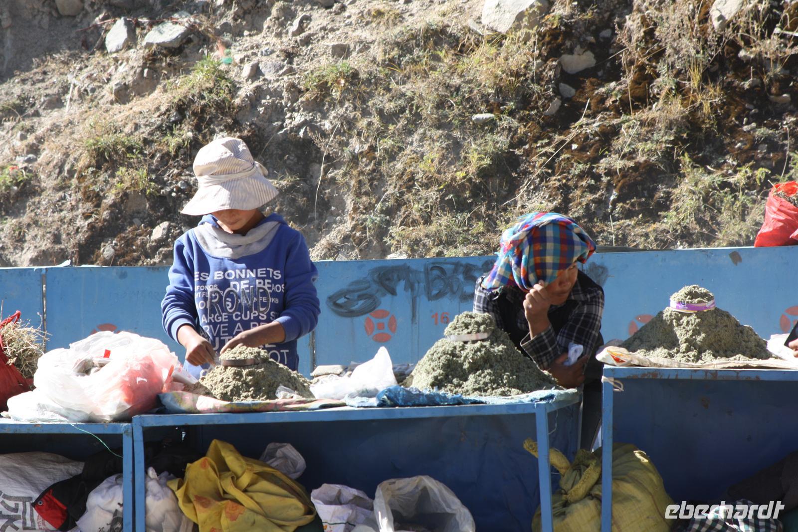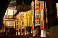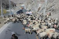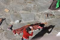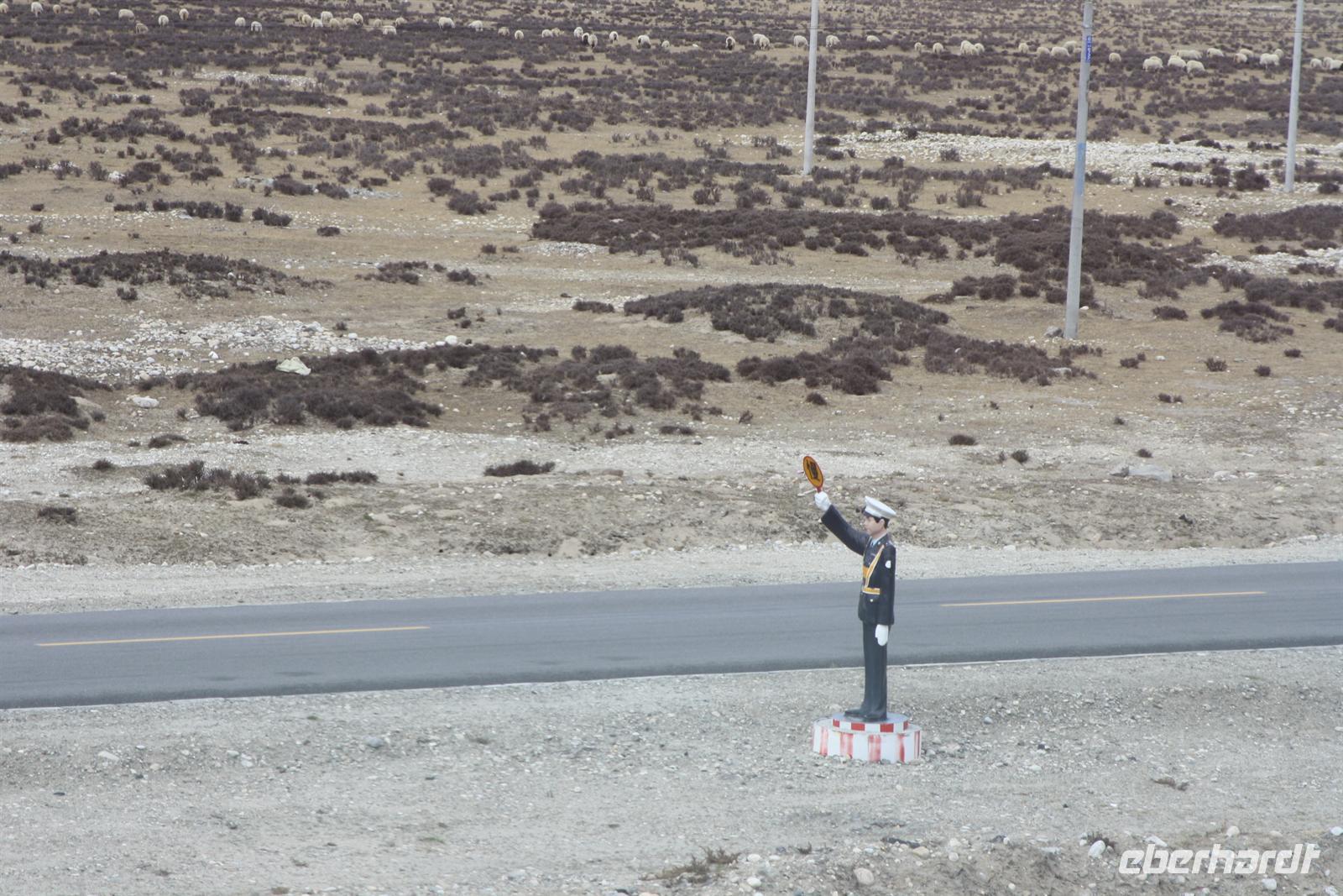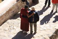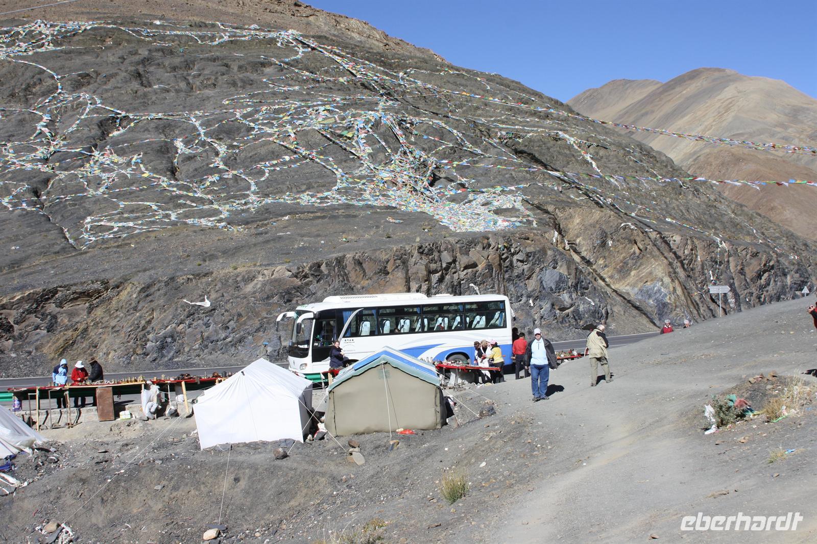 Über die Nordroute fahren wir heute zurück in die Hauptstadt. Entlang der Straße sehen wir des öfteren Pilger und wir geraten auch mal mitten in eine Rinder- oder Schafherde. Nahe eines Hügels legen wir einen Stopp ein - es gibt Geier in dieser Region und somit auch die Möglichkeit für die traditionelle (teure) Himmelsbestattung. Neben der Straße verläuft die zukünftige Bahnstrecke von Lhasa nach Shigatse. Überall sind Baustellen zu sehen, denn bereits in 3 Jahren soll diese Etappe fertig gestellt sein. Über diverse Checkpoints inklusive Passkontrolle erreichen wir schließlich Lhasa. Am Nachmittag besteht noch einmal die Gelegenheit für einen letzten Bummel auf der Barkhor Straße.