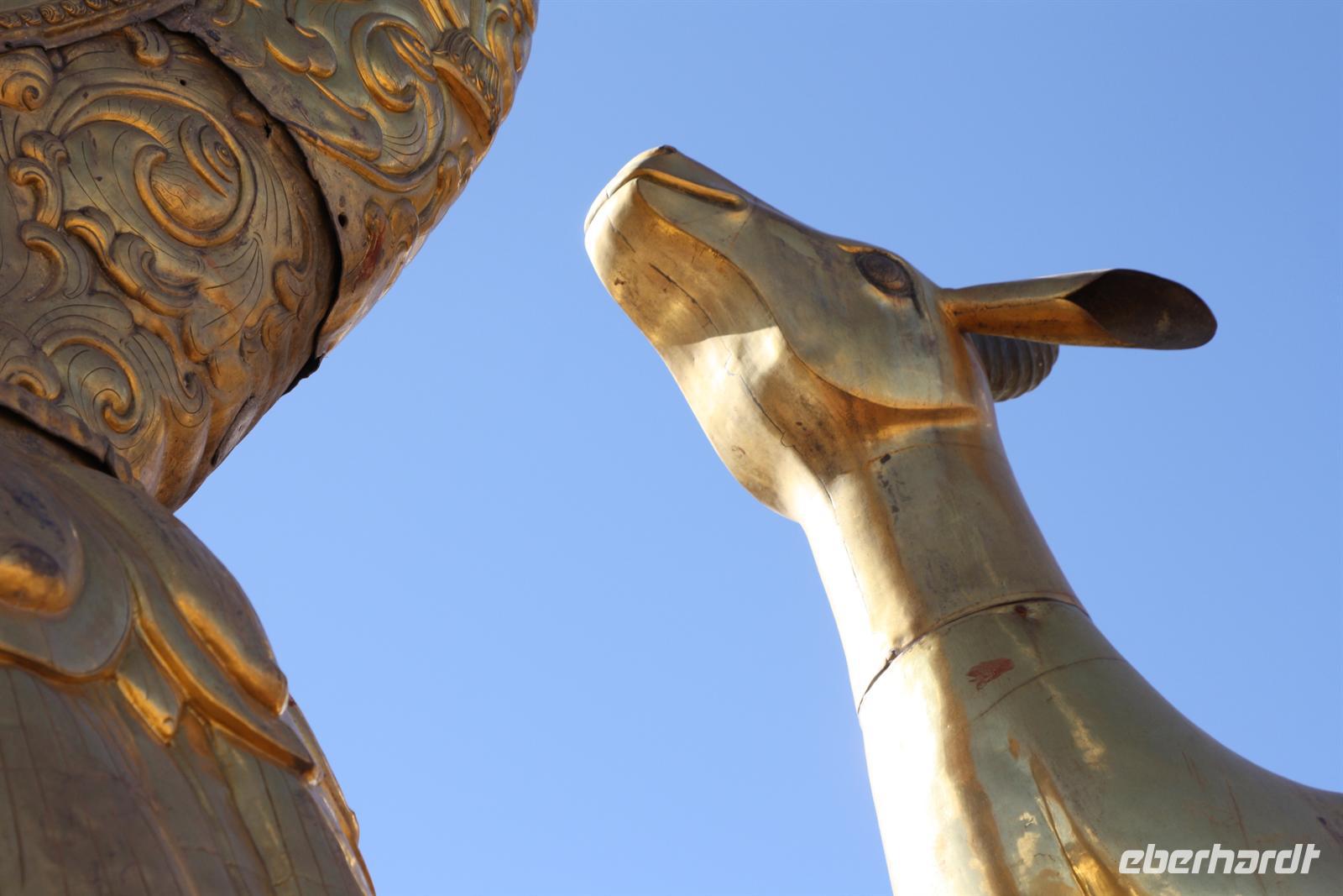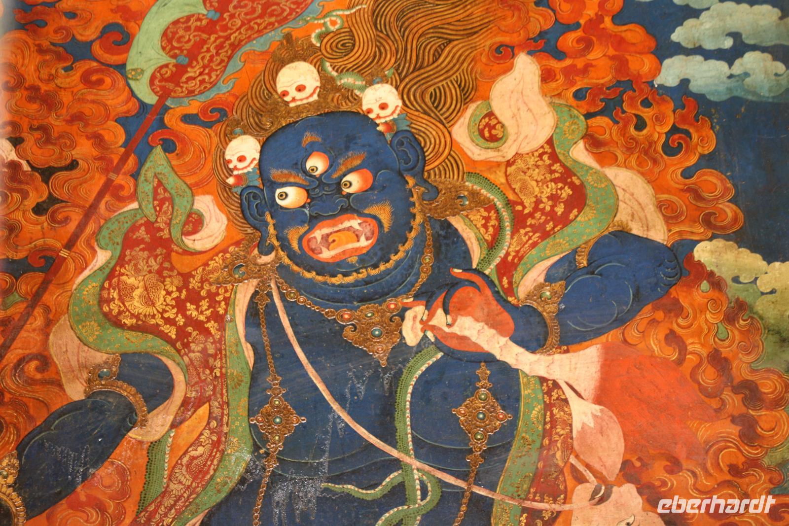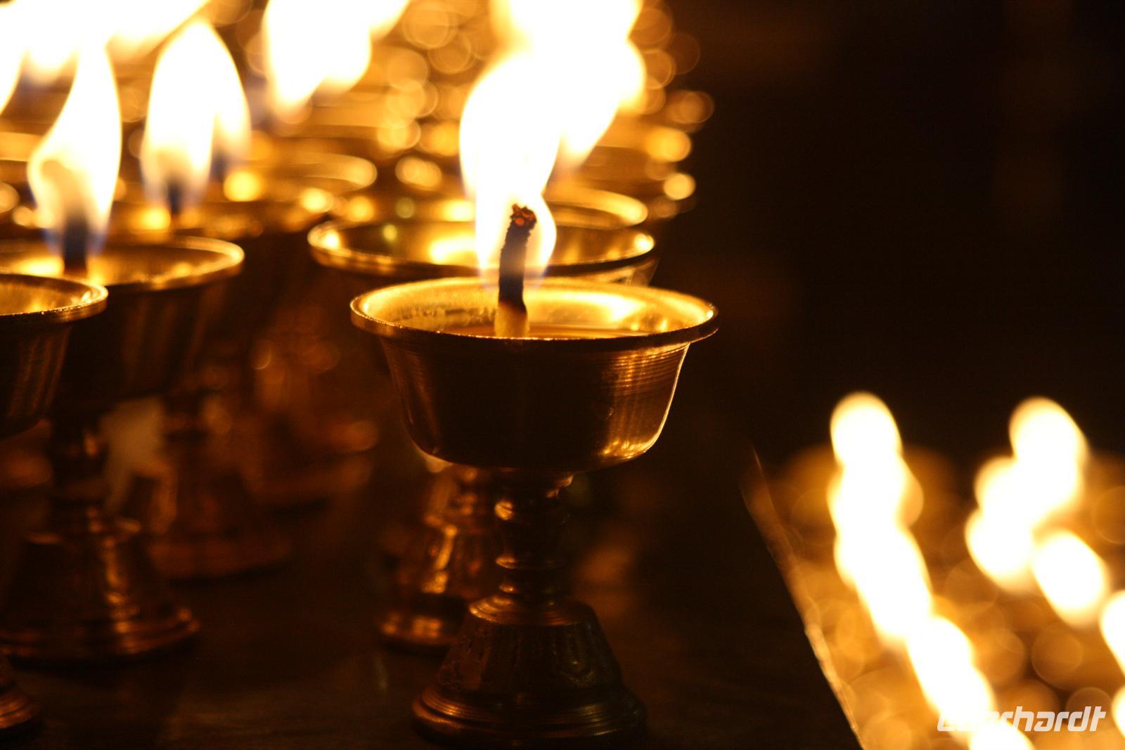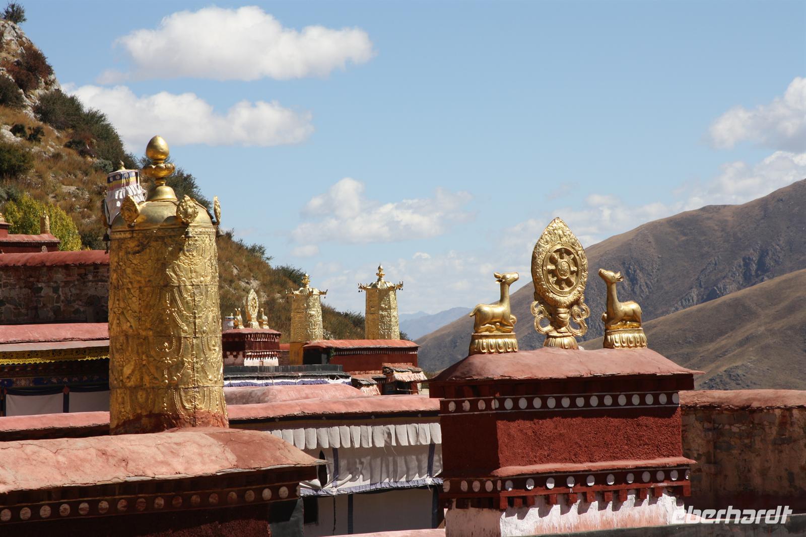 Der heutige Ausflug führt uns hinaus aus Lhasa zum Ganden Kloster - neben Drepung und Sera dem letzten der „Drei großen Klöster Tibets“. Wir verlassen Lhasa entlang des Flusses und der Blick zurück zeigt den prächtigen Potala Palast, wie er die ganze Stadt überragt! Wir durchfahren einige Ortschaften, wo geschäftiges Treiben herrscht. Die Bauern arbeiten auf ihren Feldern, denn es ist Erntezeit. Die Straße zum Kloster windet sich schließlich in zahlreichen Spitzkehren den steilen Hang hinauf - es ist eine etwas abenteuerliche Fahrt, aber das fantastische Panorama begeistert. Uns stellt sich die Frage, wie man vor 600 Jahren ohne diese Straße hier oben ein Kloster errichten konnte!? Bei der Besichtigung des liebevoll restaurierten Klosters sehen wir wiederum kunstvolle Wandmalereien, Gebetsmühlen sowie zahlreiche Pilger. Der Blick auf die umliegenden Berge ist einfach toll. Auf dem Gipfel wehen die bunten Gebetsfahnen und tragen die Wünsche nach Glück in die Welt. Die Blätter der Pappeln präsentieren sich schon in einem herbstlichen goldgelb und wir finden es ist unser „tibetischer Indian Summer“. Nach unserer Rückkehr zum Hotel bietet sich die Möglichkeit noch einmal zur Barkhor Straße zu fahren - per Taxi oder Fahrradrikscha - um nach Herzens Lust zu bummeln und zu handeln. Nach dem Abendessen ist die Gelegenheit für den Besuch der Tibet Oper. Ein Abstecher zum nächtlich beleuchteten Potala Palast beschließt den erlebnisreichen Tag.