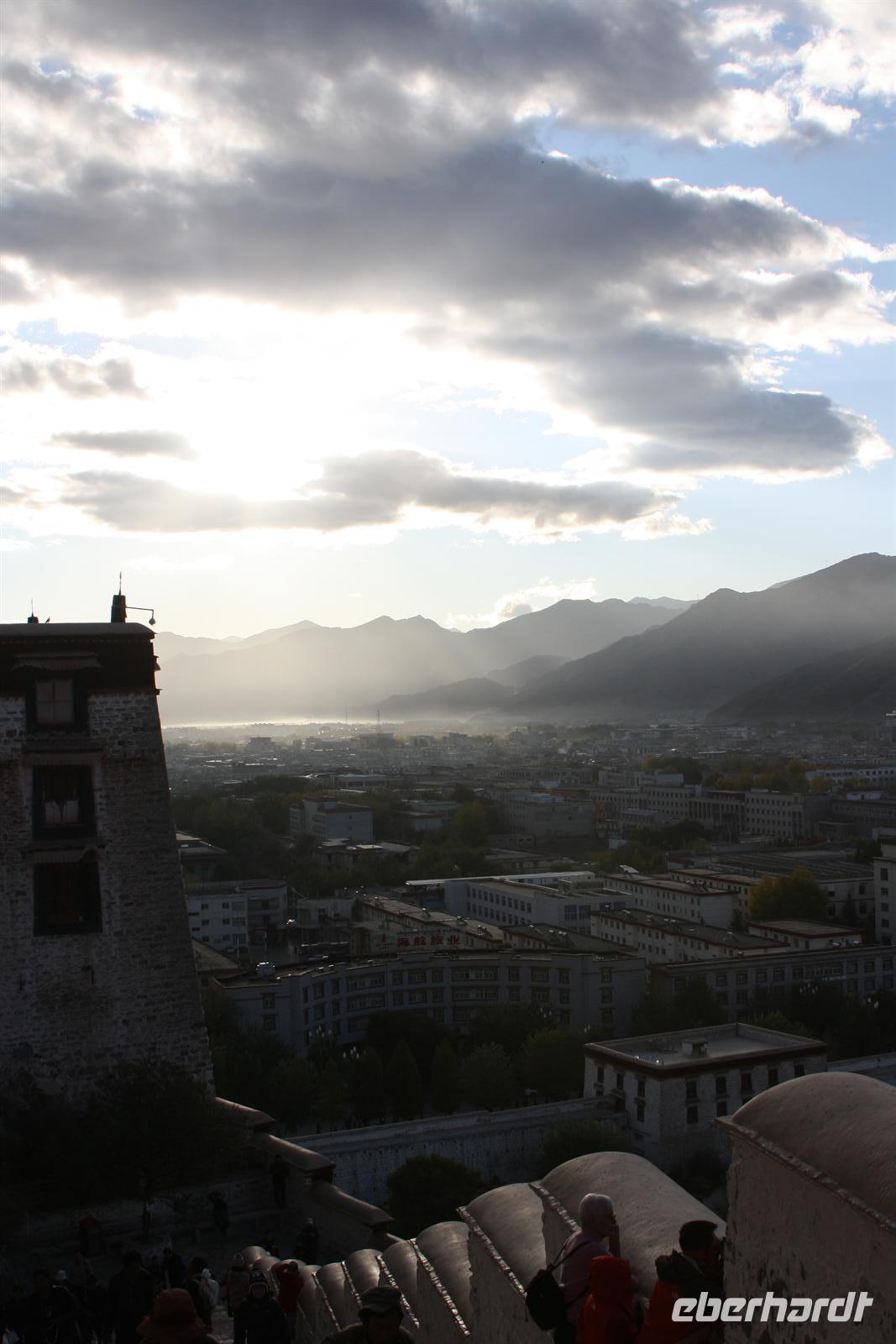 Der Tag beginnt früh am Morgen, denn heute steht einer der Höhepunkte der Reise auf dem Programm: der Besuch des berühmten Potala Palastes. Das Bild könnte kaum schöner sein - der Palast erstrahlt im warmen Morgenlicht unter einem dramatischen Himmel. Die ersten Sonnenstrahlen „küssen“ die umliegenden Berge, die bis zu 4.200 Meter hoch sind. Langsam gehen wir die ca. 380 Stufen hinauf zum Eingang des Palastes. Es kostet uns schon einige Kraft, angesichts der Höhe ist das aber vollkommen normal. Der „Flachländer“ muss eben mehr und schneller schnaufen, aber die Impressionen beruhigen den Geist. Für die Besichtigung des Palastes bleibt uns eine Stunde Zeit und wir sehen die verschiedenen kunstvoll gestalteten Räume. Der Palast erlaubt nur 3.200 Besucher pro Tag - ausgenommen sind die zahlreichen Pilger. Es sind Eindrücke und Bilder, die wir im Kopf behalten müssen, denn fotografieren ist im Palast nicht gestattet. Ein Glanzstück ist die Stupa des 5. Dalai Lamas aus 3.721 Kilogramm Gold! Vom Palast bietet sich uns ein fantastischer Blick auf die Dächer von Lhasa. In den letzten 15 Jahren ist die Stadt deutlich gewachsen und mehr und mehr chinesisch orientiert. Der Abstieg fällt uns deutlich leichter und vom Potala Platz zeigt sich der Winter-Palast des Dalai Lama noch einmal in all seiner Pracht. Ja, wir waren tatsächlich da oben und wir sind beeindruckt! Nach der verdienten Mittagspause besuchen wir auch noch den Sommer-Palast Norbulingka, der von einem blühenden Garten umgeben ist. Man bedenke, wir befinden uns auf etwa 3.600 Meter Höhe! Es ist eine Oase der Ruhe. Im Palast besichtigen wir das Wohnhaus des 14. Dalai Lama, der mit 25 Jahren Lhasa verlassen musste. Wir sehen sein Studienzimmer, ein modernes Radio (für die Verhältnisse der 50er Jahre), sein Schlafzimmer und sogar sein Badezimmer mit der wohl ersten westlichen Toilette in ganz Tibet! Immer wieder begegnen uns heute die Farben gelb, rot, blau und grün. Es sind auch die Farben der Gebetsfahnen, die wir später auf der Barkhor Straße kaufen können. Nach einer Tee-Pause besuchen wir schließlich das älteste Kloster Tibets, das Jokhang Kloster. Die Buddha-Statue Shakyamuni im Inneren ist über 2.500 Jahre alt! Besonders beeindruckend sind die kunstvollen Holzarbeiten und Wandmalereien. Es ist zugleich das reichste Kloster des Landes und das sieht man auch. Die goldenen Verzierungen glänzen im Sonnenlicht und vom Dach haben wir einen grandiosen Blick zum Potala Palast, auf die Altstadt und die umlaufende Barkhor Straße. Vor dem Tempel beobachten wir zahlreiche Pilger, die sich immer wieder zu Boden werfen - 100.000 mal soll dies der gläubige Buddhist in seinem Leben tun und einmal soll er zum Jokhang Kloster kommen - dem „Mekka“ des tibetischen Buddhismus. Auf der Barkhor Straße reiht sich ein Verkaufsstand an den anderen und es gibt viel zu sehen und zu staunen. Hier findet sicher jeder das passende Souvenir für zu Hause und es darf bzw. muss gehandelt werden! Zum Abendessen genießen wir heute auch einige Spezialitäten vom Yak und den typischen Buttertee. Ja, wir haben ihn mal probiert. Ein Tag mit vielen Eindrücken neigt sich dem Ende und wir sind gespannt auf die Ereignisse der Folgenden.
