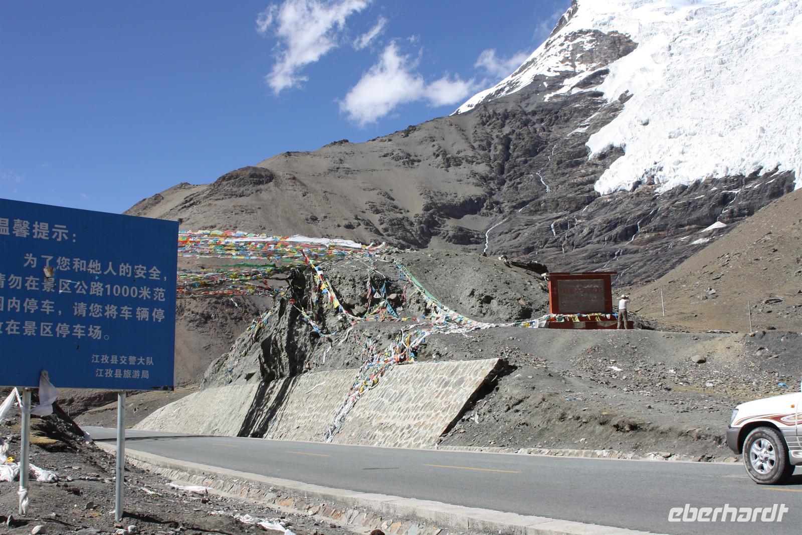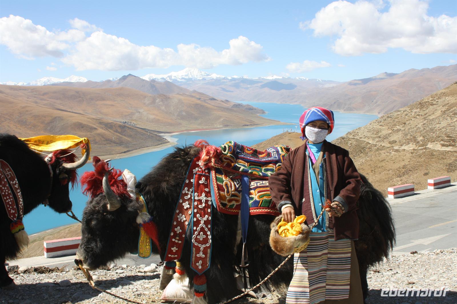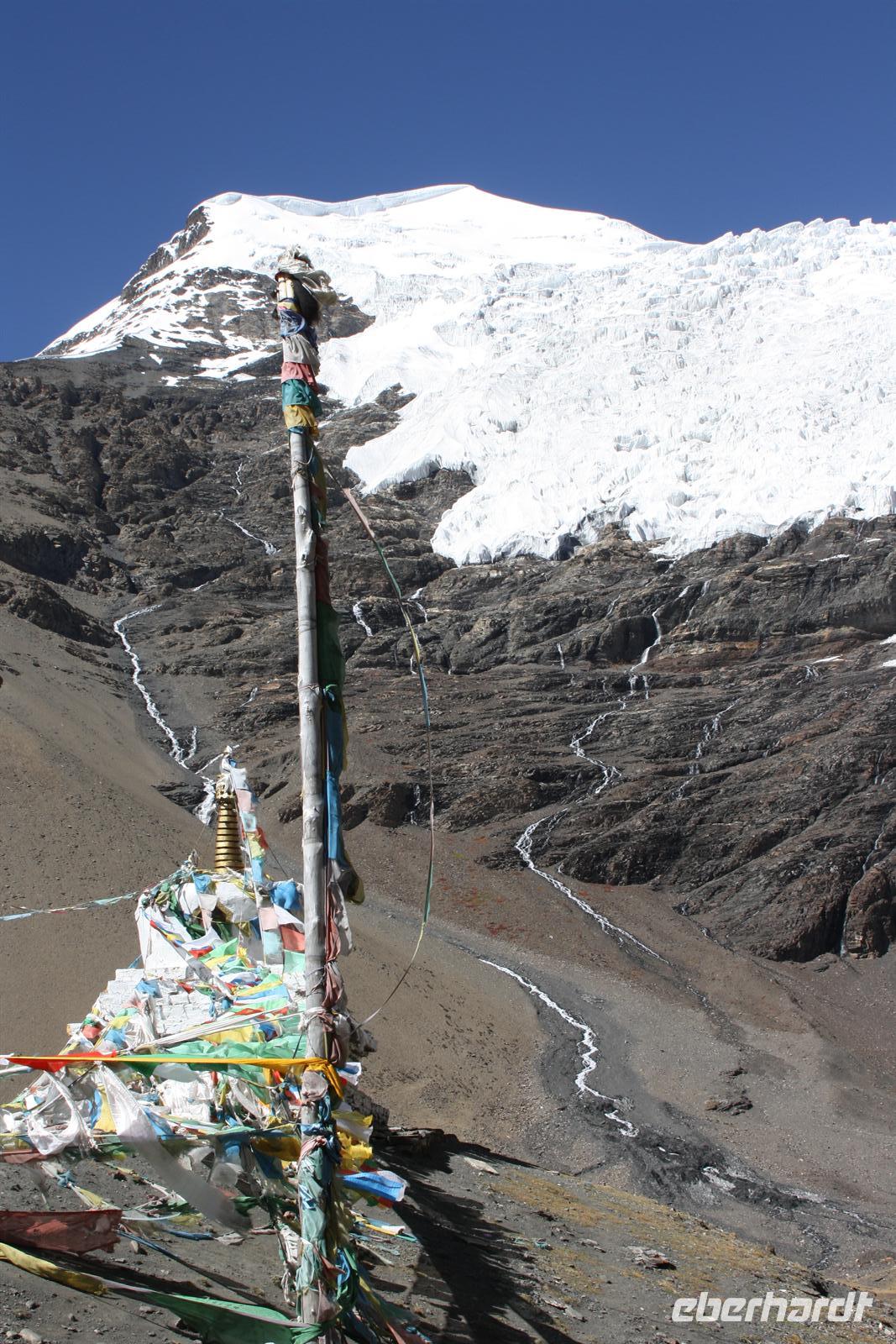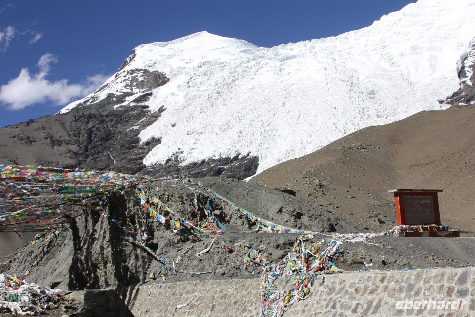 Heute lassen wir den Trubel von Lhasa hinter uns und erleben die überwältigenden Landschaften von Tibet. Je weiter wir außerhalb der Stadt gelangen, desto ländlicher wird das Bild. Wo im Umkreis von Lhasa die Felder mit dem Traktor bestellt werden, so sehen wir hier öfter auch Bauern mit Yaks und Pferden. Am Zusammenfluss von Brahmaputra und Lhasa-Fluss lernen wir ein Stückchen tibetische Tradition kennen, die für uns doch sehr fremd ist. Hier ist eine Stelle für die Wasserbestattungen, die auch heute noch üblich ist (aus diesem Grund essen die Tibeter keinen Fisch). Anschließend windet sich die Straße in steilen Kurven den Berg hinauf - Respekt für unseren Bus-Chauffeur! Bald erreichen wir den Kampala-Pass auf 4.800 Meter Höhe! Es eröffnet sich der Blick auf den türkisblauen Yamdrok-See und die schneebedeckten Gipfel der 7.000er - einfach fantastisch! Die geschmückten Yaks bieten ein tolles Fotomotiv, allerdings nicht umsonst! Den nächsten Stopp legen wir direkt am Seeufer ein, wo zahlreiche Steinpyramiden das Bild prägen - der See ist den Tibetern heilig. Zum Bergfest gibt es ein kleines Picknick mit tibetischen Spezialitäten! Auf der Weiterfahrt passieren wir einige Yak- und Schafherden und wir fragen uns wie hart und entbehrlich wohl das Leben in dieser „Einöde“ sein muss. Wir sind jedenfalls ergriffen von der Erhabenheit der Natur. Bald erreichen wir den höchsten Punkt unserer Reise auf dem Kharola-Pass in sage und schreibe 5.040 Meter Höhe! Gut, dass wir uns inzwischen einigermaßen an die Höhe angepasst haben, aber dennoch muss man es langsam angehen lassen. Vor dem Kharola-Gletscher wehen unzählige Gebetsfahnen mit heiligen Sprüchen im Wind und auch hier bieten fliegende Händler ihre Waren feil. Aller guten Dinge sind drei und so stoppen wir noch am Semila-Pass in 4.300 Meter Höhe, der den Blick auf den leuchtend blauen Stausee frei gibt. Am späten Nachmittag erreichen wir unser Hotel in Gyantse. Mit einem „Gletscherwasser“ stoßen wir auf eine erlebnisreiche erste Hälfte und eine spannende zweite Hälfte unserer Reise an - es ist schließlich Bergfest… und das im wahrsten Sinne des Wortes!
