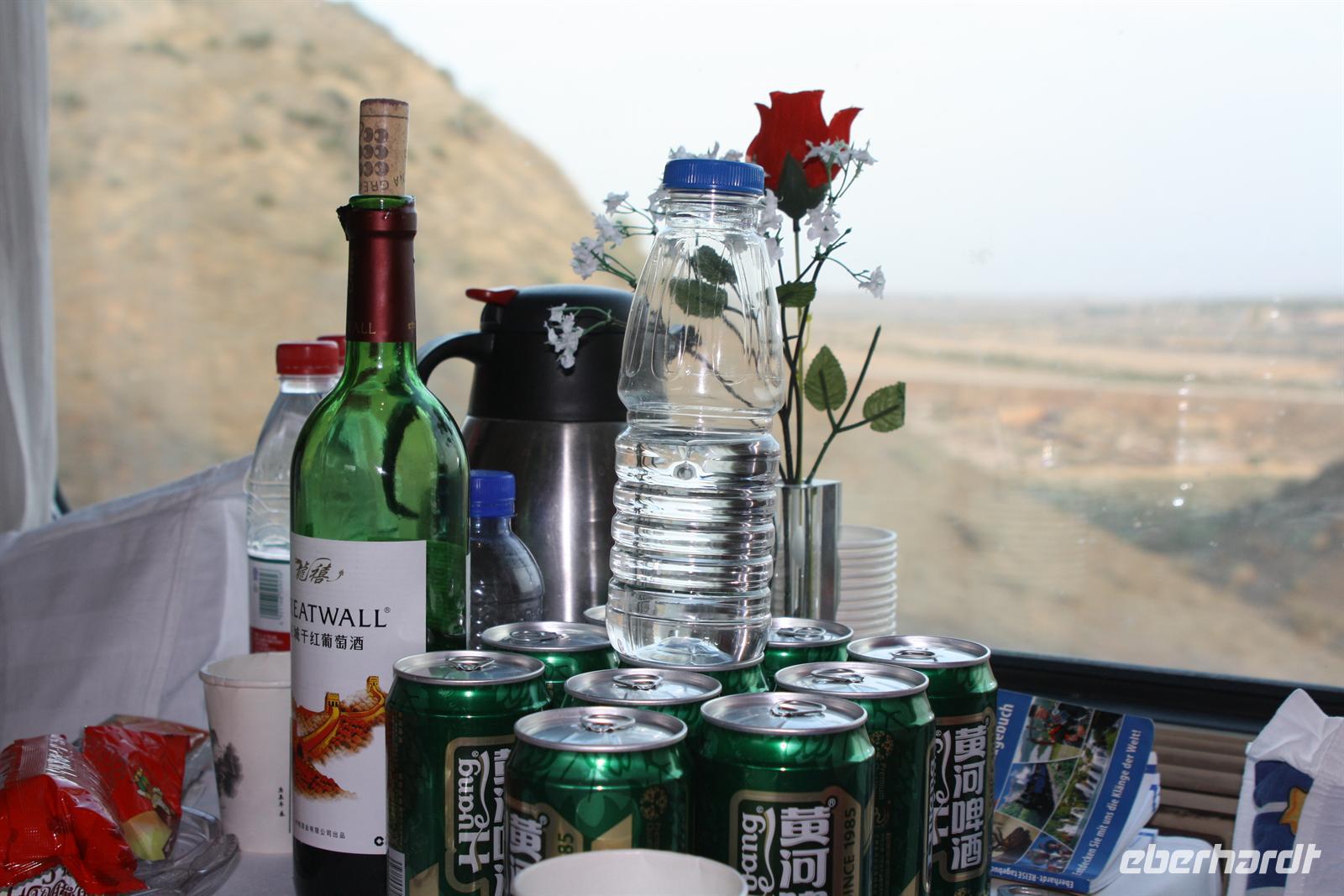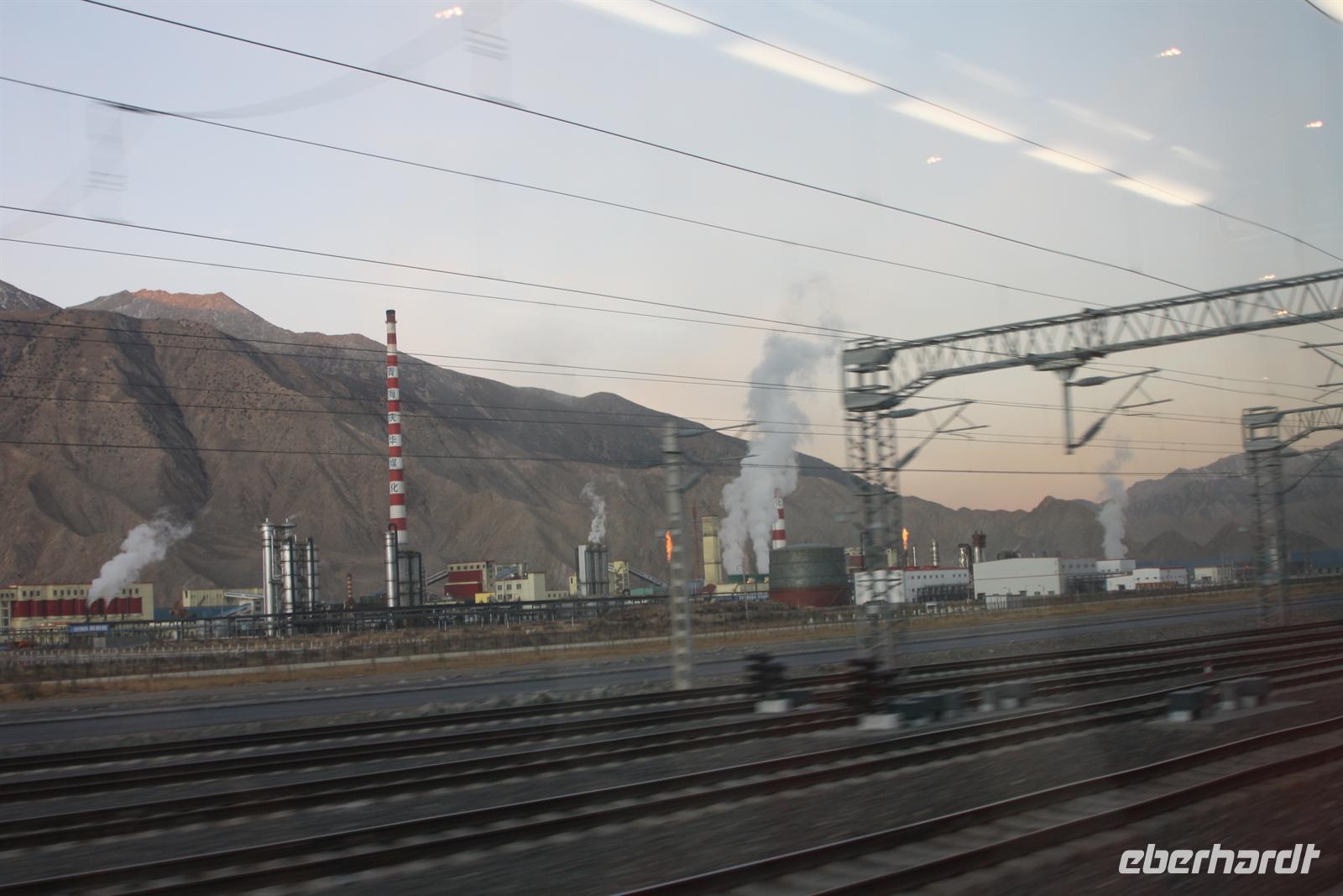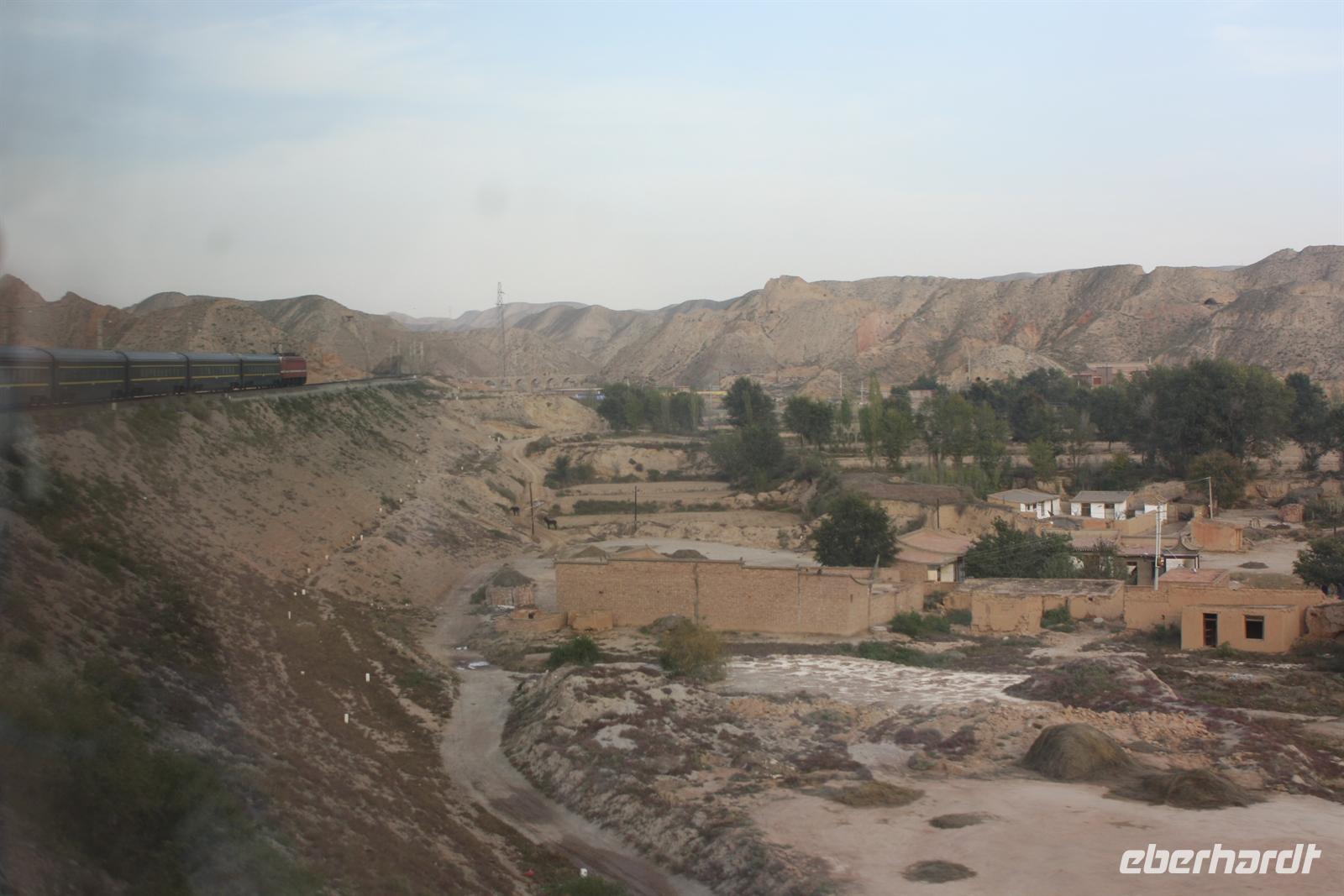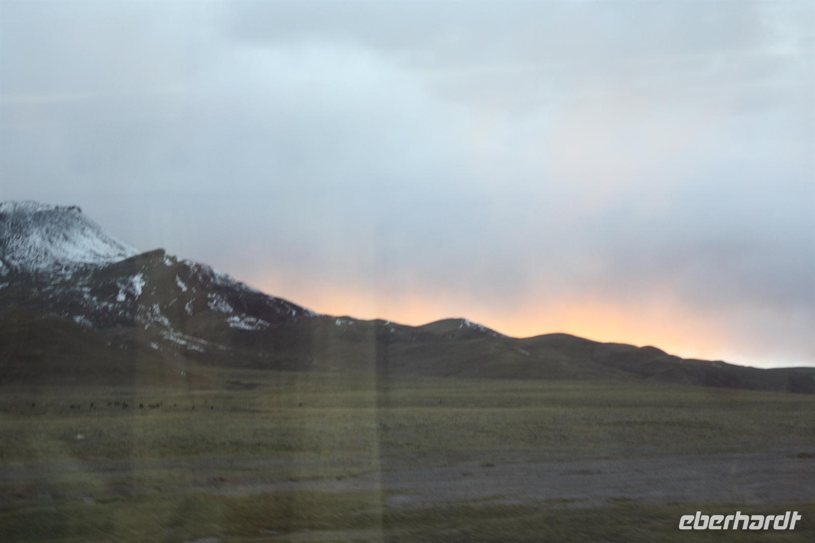 Nach einer mehr oder weniger ruhigen Nacht, heißt es Aufstehen! Mit dem Sonnenaufgangsfrühstück im Bordrestaurant starten wir in den Tag. Heute steht Schauen, Staunen und Fotografieren auf dem Programm. Die abwechslungsreiche Landschaft setzt sich fort: weite Hochebenen, Yak-Herden, kleine Siedlungen „mitten im Nirgendwo“ und plötzlich auch größere Städte und Industrie. Es ist eine kurzweilige Fahrt, die wir mit Plaudern und Träumen verbringen. Die köstlichen Mahlzeiten zum Mittag und zum Abendessen versüßen uns den Tag zusätzlich.