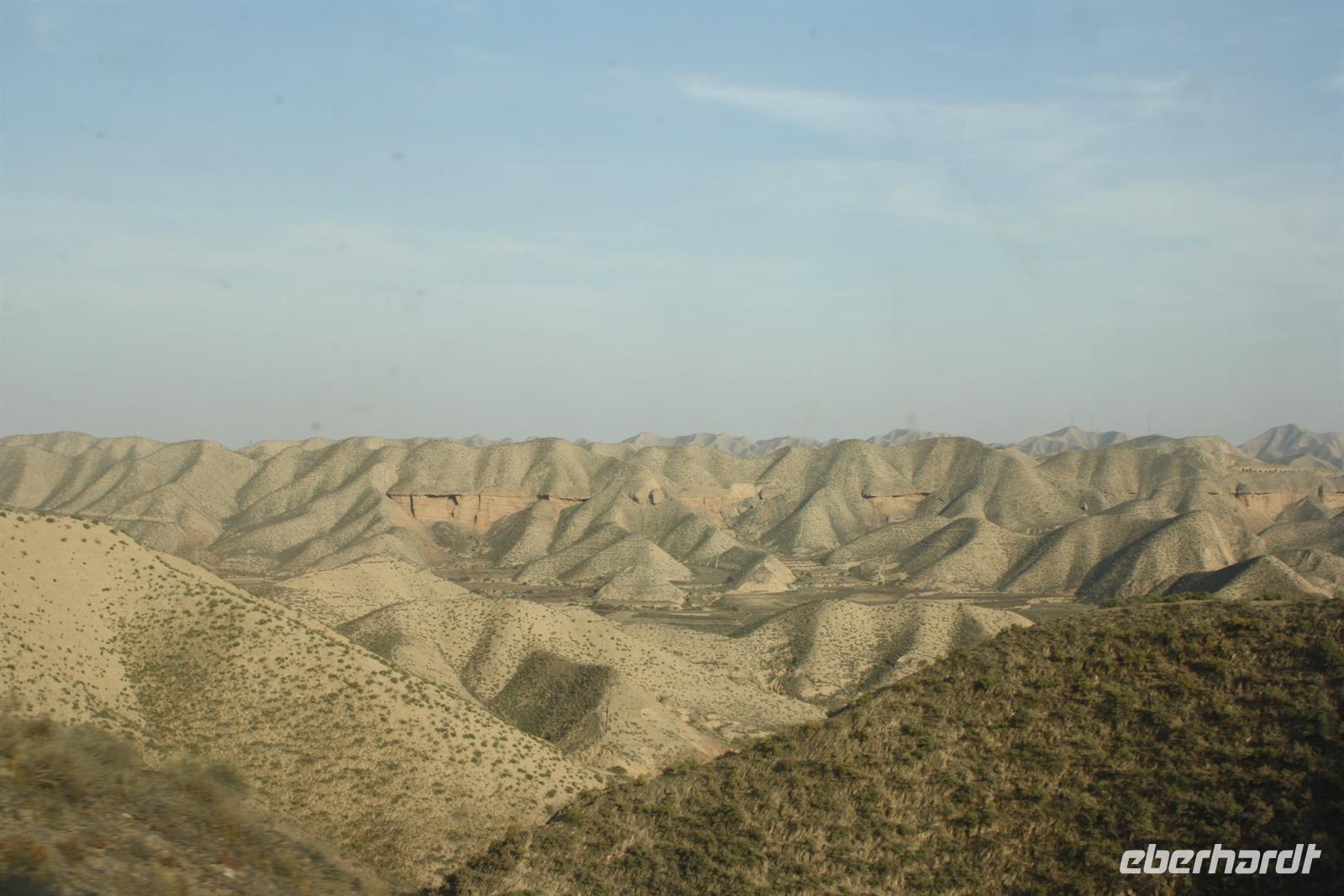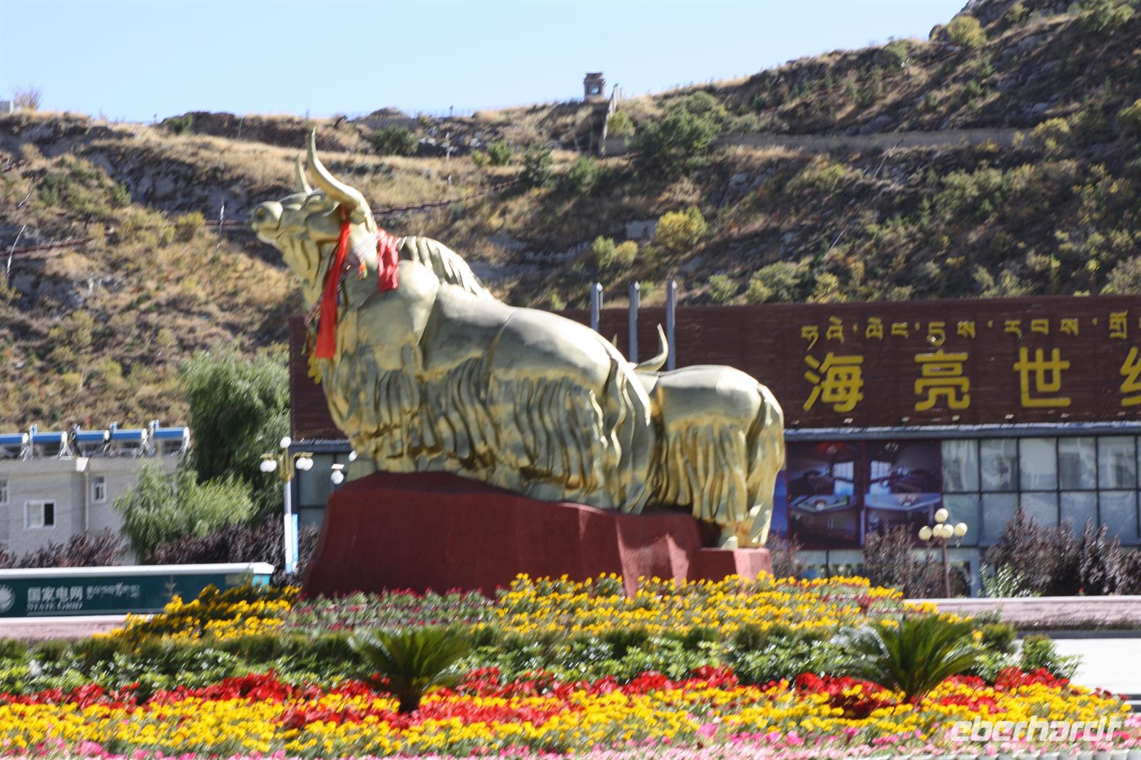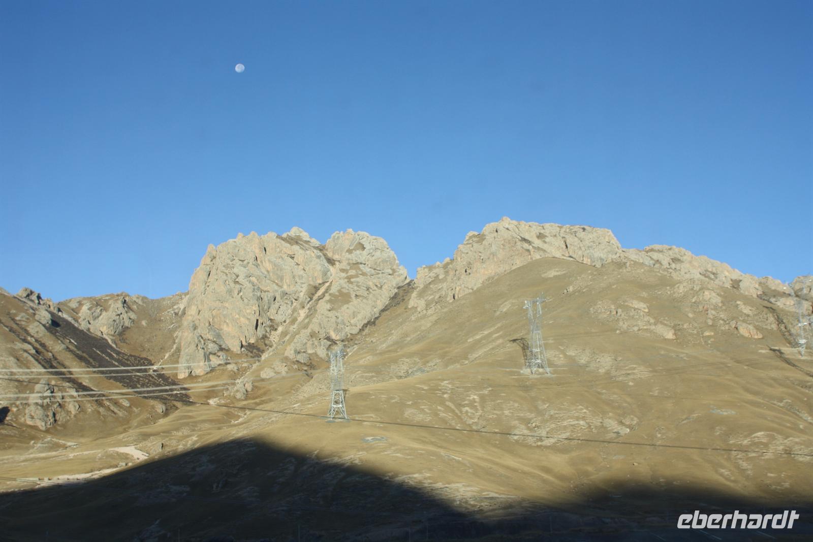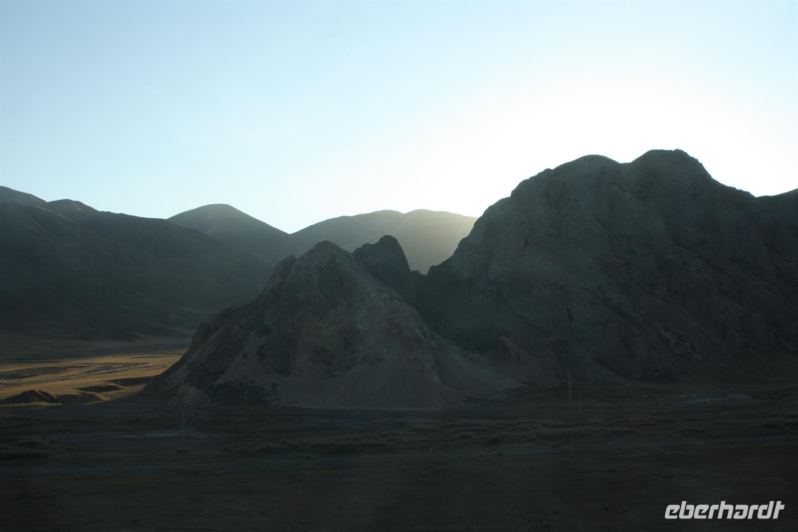 Nach einer mehr oder weniger ruhigen Nacht, heißt es Aufstehen! Mit dem Sonnenaufgangsfrühstück im Bordrestaurant starten wir in den Tag. Heute steht Schauen, Staunen und Fotografieren auf dem Programm. Die abwechslungsreiche Landschaft setzt sich fort: weite Hochebenen, Yak-Herden, kleine Siedlungen „mitten im Nirgendwo“ und plötzlich auch größere Städte und Industrie. Es ist eine kurzweilige Fahrt, die wir mit Plaudern und Träumen verbringen. Die köstlichen Mahlzeiten zum Mittag und zum Abendessen versüßen uns den Tag zusätzlich.