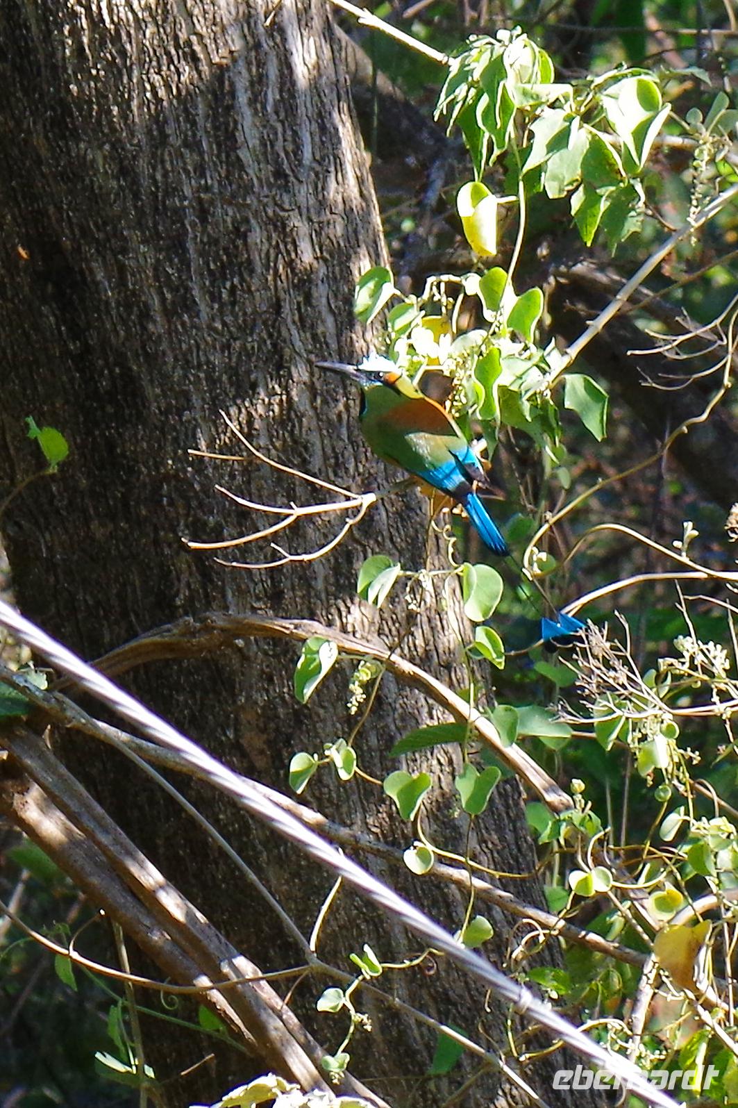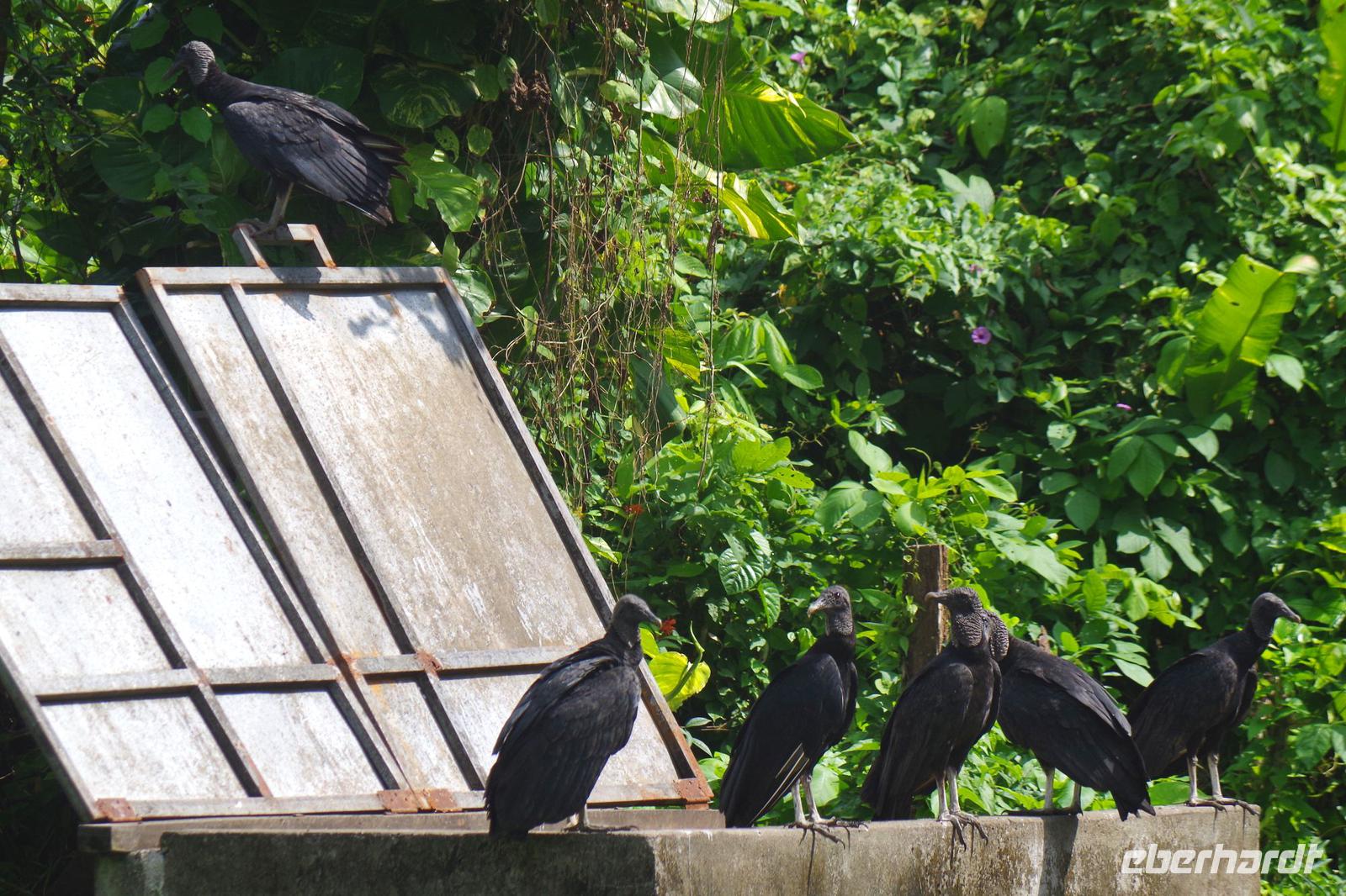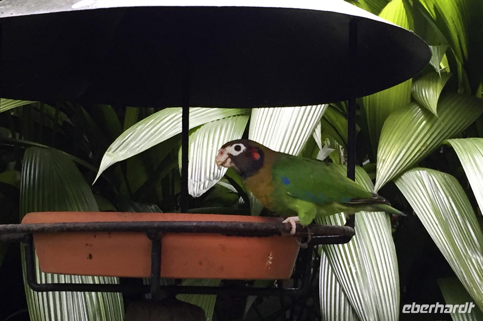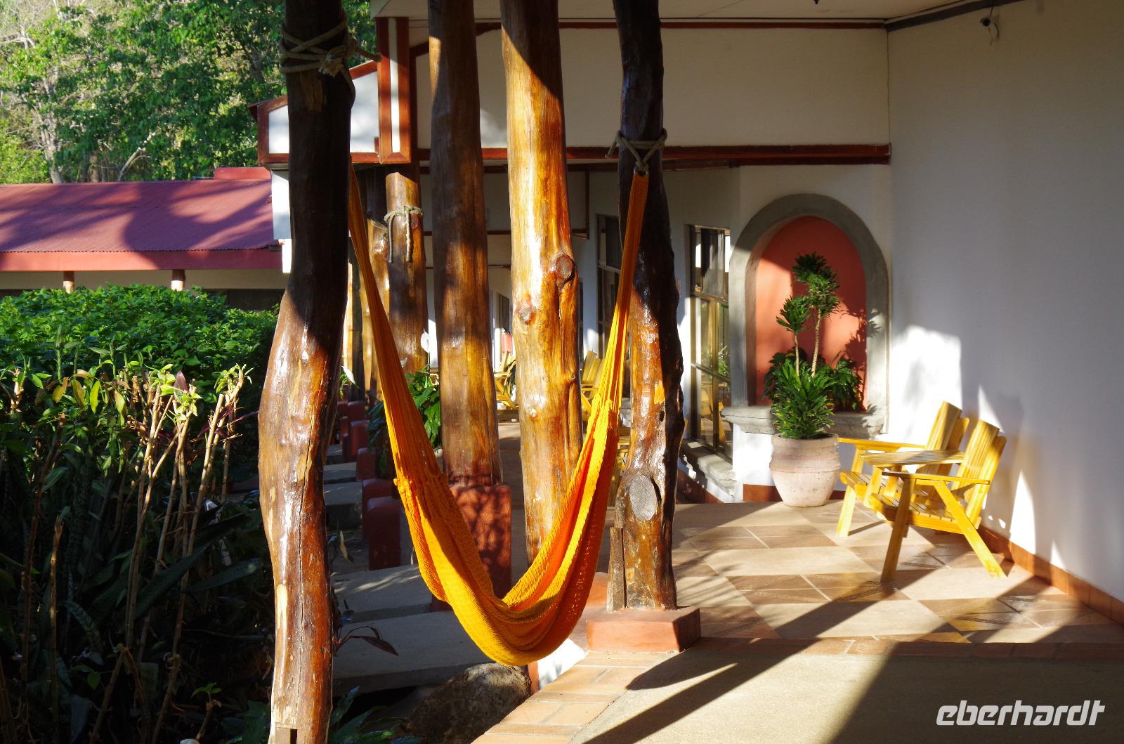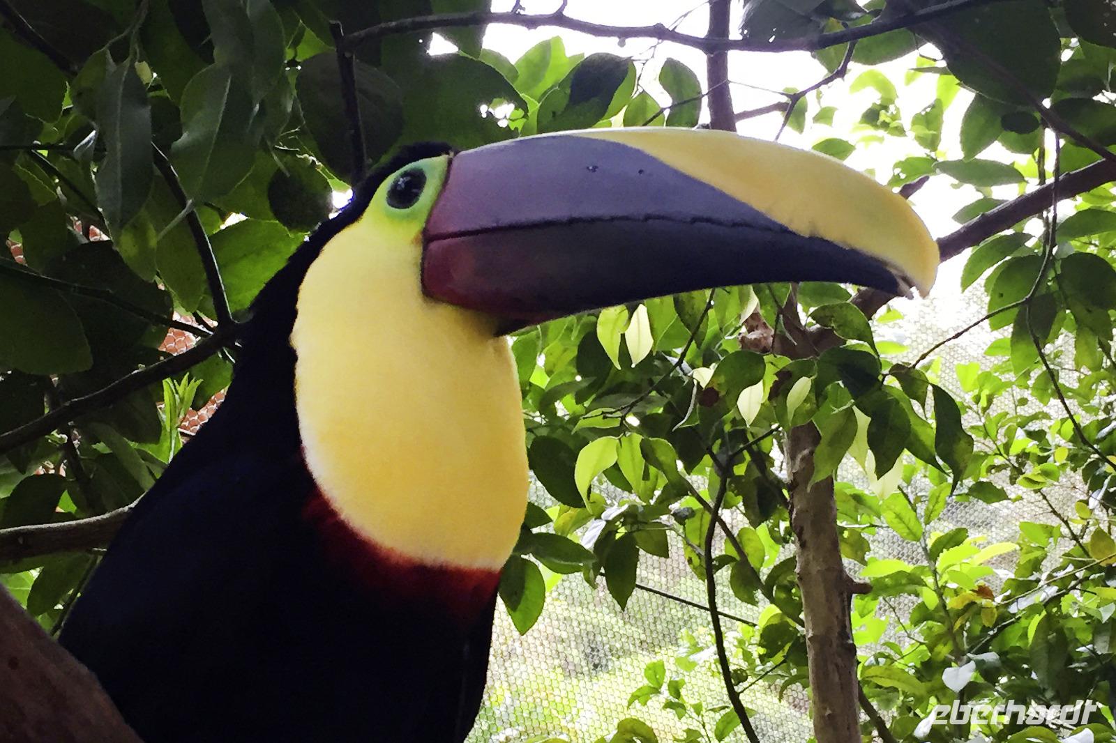 8.00 Uhr fuhren wir über Guacimal und Cebadilla auf der Panamericana bis Liberia. Unterwegs hielten wir in Canas an der Tieraufzuchtstation Las Pumas, um weitere Tiere zu sehen. In der freien Natur sind uns die Tiere natürlich sehr viel lieber, aber diese hier wurden gerettet und teils von Hand aufgezogen, somit hätten sie in freier Wildbahn keine Chance. Mittagessen gab es unterwegs, am Nachmittag kamen wir in der Hacienda Guachipelin in Rincon de la Vieja an. Die weitläufige Anlage im Ranchstil bot einen Pool, ein großzügiges Restaurant und auch wieder etliche Vögel, die es sich hier auf den schönen Bäumen bequem machten.