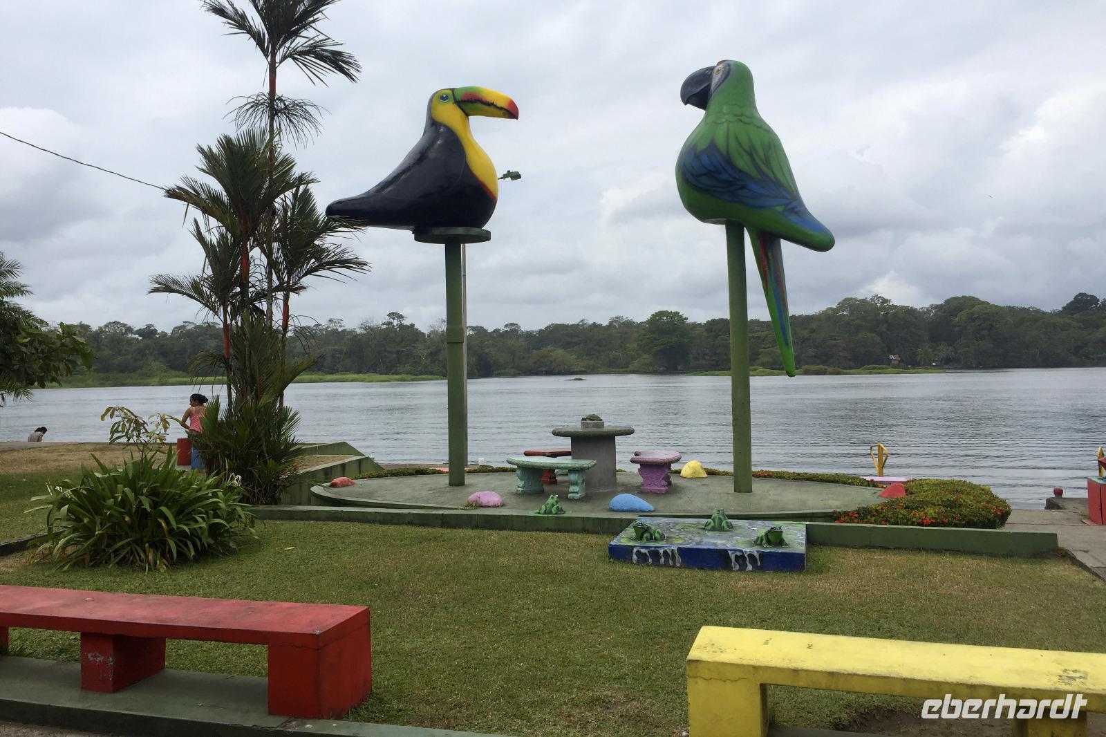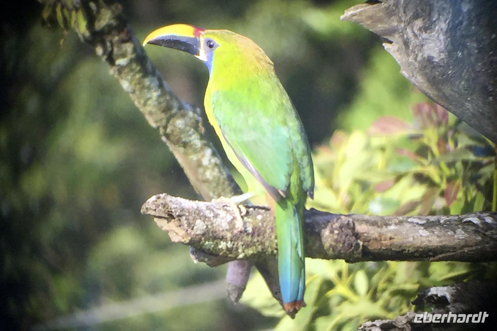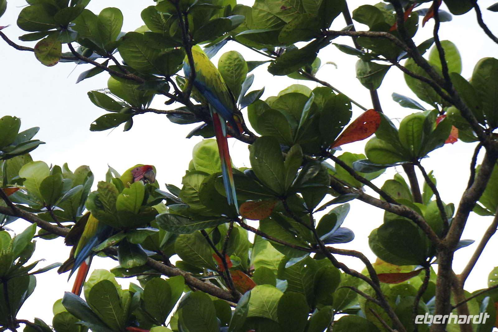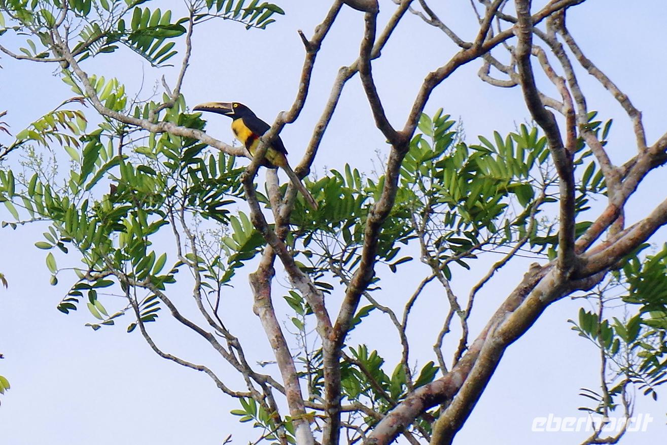 Und da die Piepmätze die Eigenart haben, auch mal ganz schnell weiter zu fliegen, haben wir natürlich nicht von jedem ein Beweisfoto gemacht. Hier eine textliche Auswahl unserer entdeckten Arten (habe ich aus dem schlauen Buch von Maurice übersetzt), ein paar Fotos gibt es in der Fotogalerie: Graufalke, Großer Soldatenara, Krabbenreiher, Kahnschnabel, Gilbdrossel, Trauertangare, Möwenbussard, Truthahngeier, Grünscheitelbrillant, Kupferköpfchen (Kolibri), Prachthaubenadler, Rabengeier, Gelbscheitelwaldsänger, Gelbstirn-Blatthühnchen, Graureiher, Rotstirnamazone, Silberreiher, Krabbenbussard, Kiebitzregenpfeifer, Stahlgrüne Amazilie und Braunschwanzamazilie (Kolibris), Cayenneralle, Brillenzaunkönig, Kupferschattenkolibri, Schwefeltyrann, Bauchschnabeltyrann, Purpurdegenflügel (Kolibri), Kuhreiher, Schmuckreiher, Gartenkolibri, Feuerrückentangare, Cherrietangare, Bischofstangare, Blaureiher, Amerikanischer Schlangenhalsvogel, Zitronenwaldsänger, Baumläuferwaldsänger, Schwarzachseltangare, Schwarzkehl-Zaunkönig, Bindenbaumsteiger, Schwarznacken-Stelzenläufer, Amazonasfischer, Weißbinden-Schattenkolibri, Edwardamazilie (Kolibri), Halsbandarassari, Regenbogentukan, Goldkehltukan, Zwergbinsenralle, Nacktkehlreiher, Riesentagschläfer, Cayennekuckuck, Grünreiher, Dreifarbenreiher, Fischadler, Sumpfseeschwalbe, Zimthokko, Graukopftschatschalaka, Langschwanzhäher, Schwalbenorganist, Rotbrustfischer, Blaukappenhäher, Braunhäher, Schwarzmaskenguan, Breitschwingenbussard, Bananaquit (Zuckervogel), Bootschwanzgrackel, Flusswaldsänger, Langschwanzhäher, Olivmantelspecht, Weißohrammer, Braunnacken-Ammer, Larvenwaldsänger, Schlichtdrossel, Schieferschwanztrogon, Königsspecht, Lachhabicht und der Kronentyrann (Angaben ohne Gewähr :-)