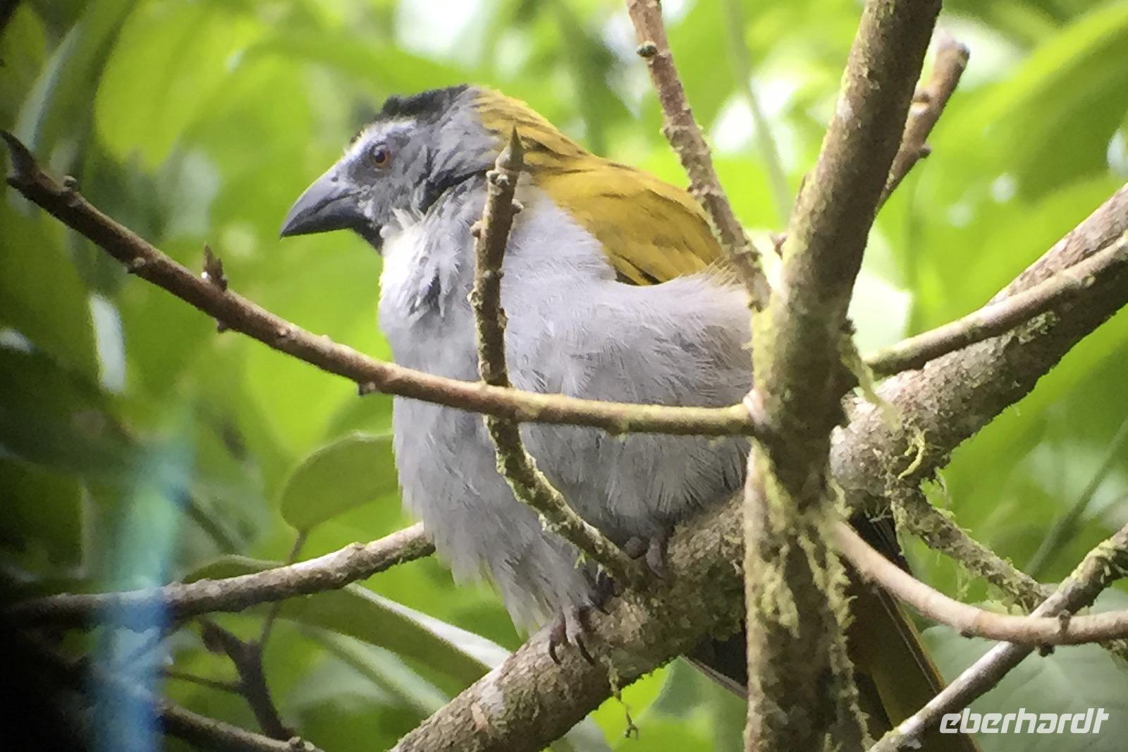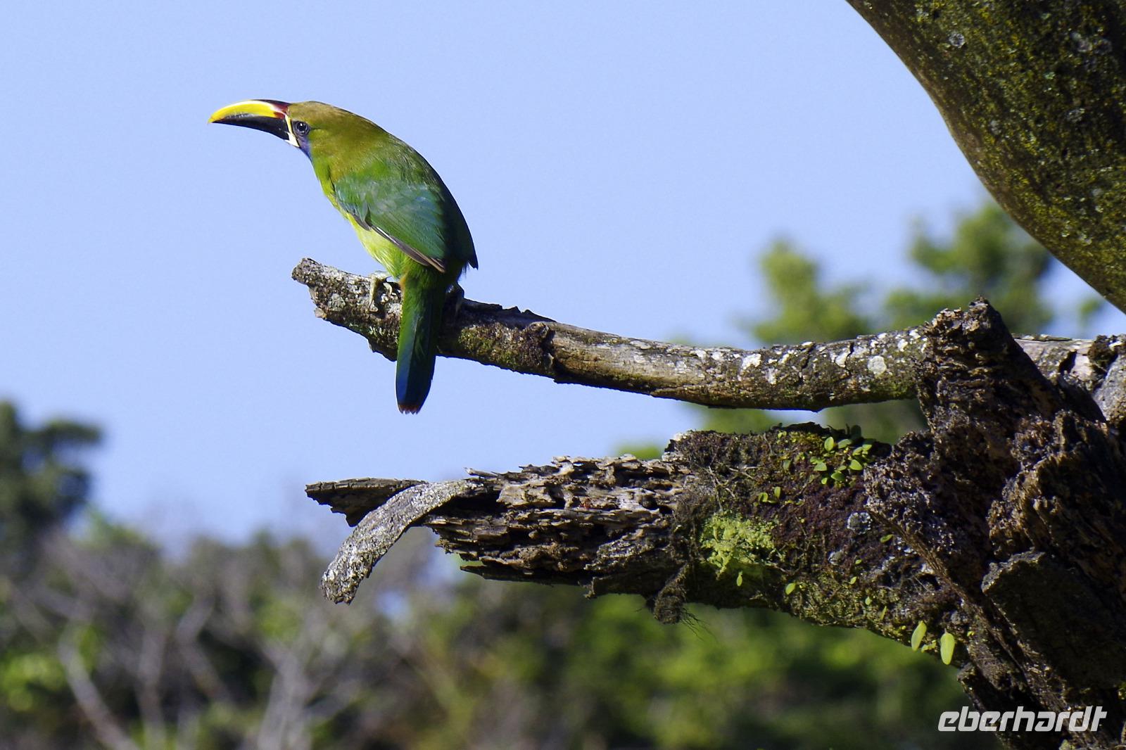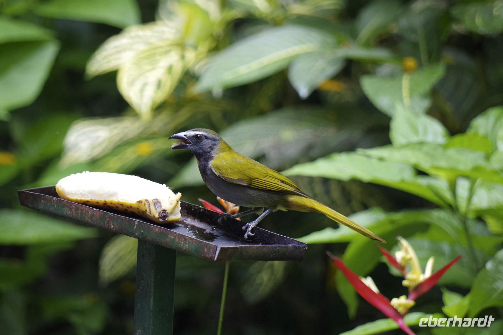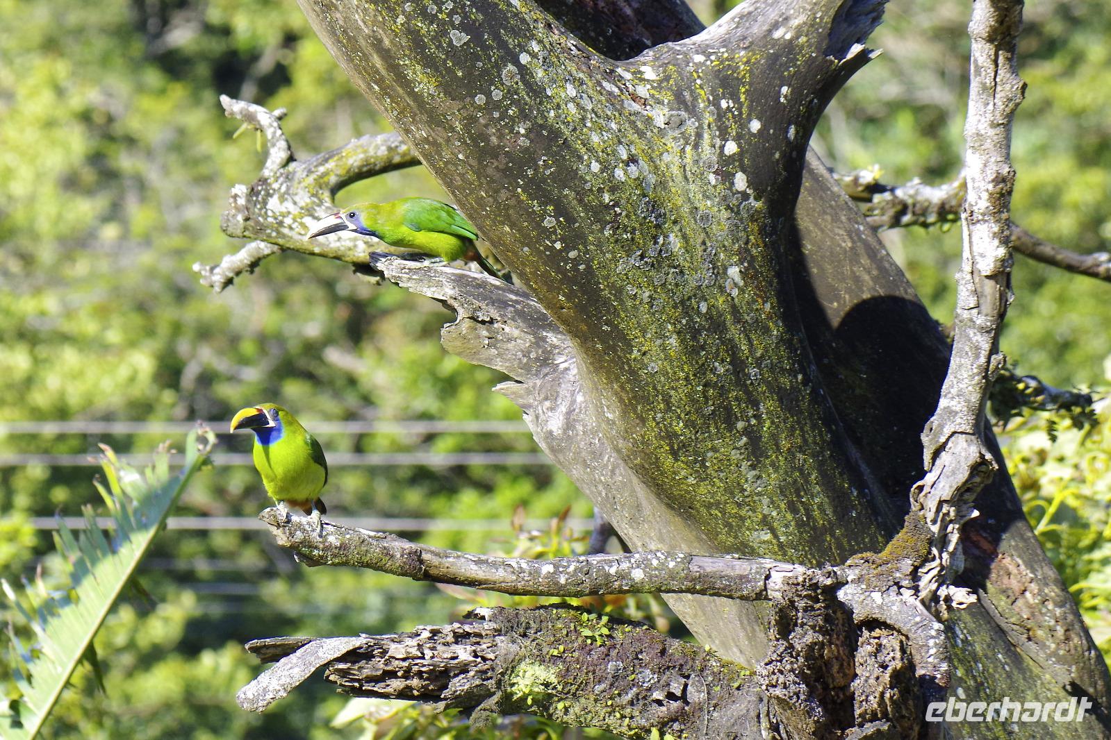 Und da die Piepmätze die Eigenart haben, auch mal ganz schnell weiter zu fliegen, haben wir natürlich nicht von jedem ein Beweisfoto gemacht. Hier eine textliche Auswahl unserer entdeckten Arten (habe ich aus dem schlauen Buch von Maurice übersetzt), ein paar Fotos gibt es in der Fotogalerie: Graufalke, Großer Soldatenara, Krabbenreiher, Kahnschnabel, Gilbdrossel, Trauertangare, Möwenbussard, Truthahngeier, Grünscheitelbrillant, Kupferköpfchen (Kolibri), Prachthaubenadler, Rabengeier, Gelbscheitelwaldsänger, Gelbstirn-Blatthühnchen, Graureiher, Rotstirnamazone, Silberreiher, Krabbenbussard, Kiebitzregenpfeifer, Stahlgrüne Amazilie und Braunschwanzamazilie (Kolibris), Cayenneralle, Brillenzaunkönig, Kupferschattenkolibri, Schwefeltyrann, Bauchschnabeltyrann, Purpurdegenflügel (Kolibri), Kuhreiher, Schmuckreiher, Gartenkolibri, Feuerrückentangare, Cherrietangare, Bischofstangare, Blaureiher, Amerikanischer Schlangenhalsvogel, Zitronenwaldsänger, Baumläuferwaldsänger, Schwarzachseltangare, Schwarzkehl-Zaunkönig, Bindenbaumsteiger, Schwarznacken-Stelzenläufer, Amazonasfischer, Weißbinden-Schattenkolibri, Edwardamazilie (Kolibri), Halsbandarassari, Regenbogentukan, Goldkehltukan, Zwergbinsenralle, Nacktkehlreiher, Riesentagschläfer, Cayennekuckuck, Grünreiher, Dreifarbenreiher, Fischadler, Sumpfseeschwalbe, Zimthokko, Graukopftschatschalaka, Langschwanzhäher, Schwalbenorganist, Rotbrustfischer, Blaukappenhäher, Braunhäher, Schwarzmaskenguan, Breitschwingenbussard, Bananaquit (Zuckervogel), Bootschwanzgrackel, Flusswaldsänger, Langschwanzhäher, Olivmantelspecht, Weißohrammer, Braunnacken-Ammer, Larvenwaldsänger, Schlichtdrossel, Schieferschwanztrogon, Königsspecht, Lachhabicht und der Kronentyrann (Angaben ohne Gewähr :-)