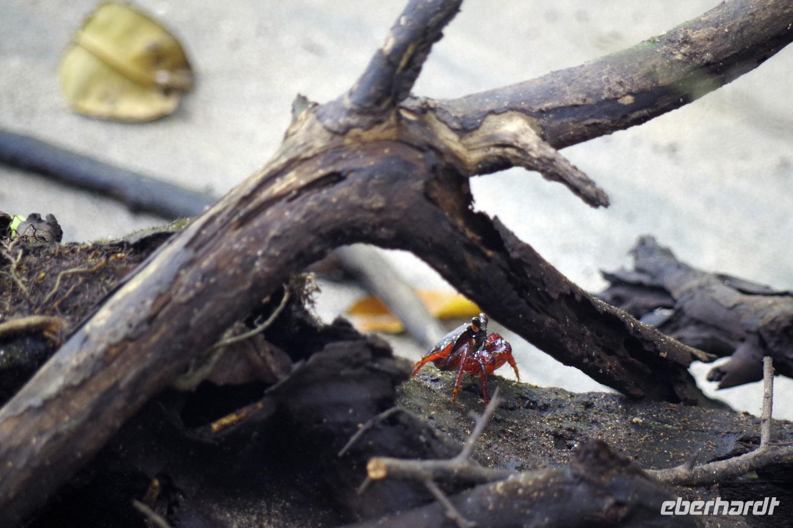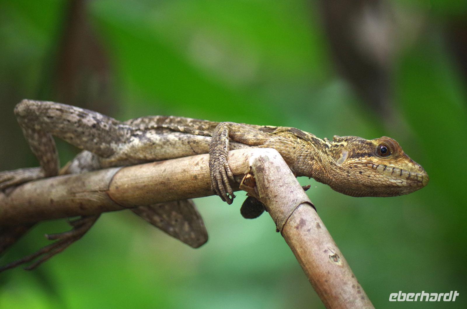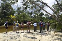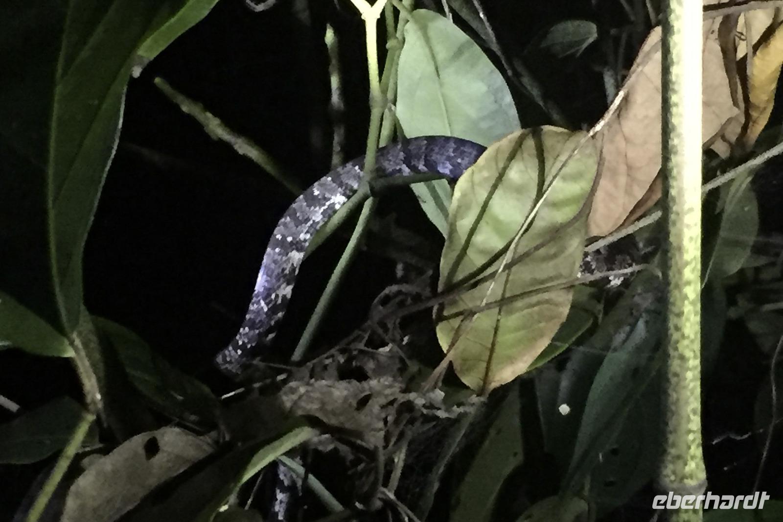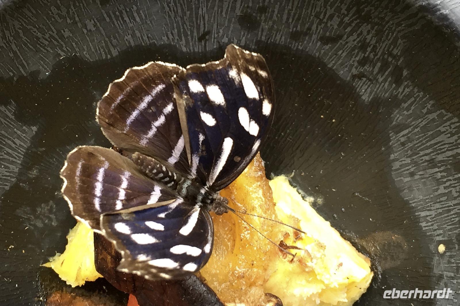 Wir starteten sehr zeitig zu unserer recht langen Fahrt in den Tortuguero-Nationalpark. Es gab einen Kaffee im Hotel, dann ging es mit Frühstückspaketen in den Bus. Da unser Reiseleiter Maurice einen Anruf bekam, dass wir doch nicht 11.00 Uhr am Bootssteg sein müssen, sondern noch eine Stunde Zeit haben, kam uns das sehr gelegen. Denn unterwegs fuhren wir vorbei an Ölpalmen- und Bananen-Plantagen - nun konnten wir auch anhalten und uns die verschiedenen Arbeitsschritte aus nächster Nähe anschauen: wie die Bananen geerntet, transportiert, gewaschen, sortiert und verpackt werden. Gegen 12.00 Uhr kamen wir in Pavona an und bestiegen ein Boot mit leichtem Gepäck. Die Koffer ließen wir im Bus zurück, so hatten wir weniger zu tragen. Bei der über zweistündigen Fahrt stoppten wir bei einigen Tieren und ließen uns dann wieder den Fahrtwind um die Nase wehen. Nach unserer Ankunft in der Mawamba Lodge, die zwischen Kanal und offenem Meer liegt, und einem Begrüßungsgetränk ging es gleich zum Mittagessen. Und nach einer Siesta trafen wir uns zu einem Spaziergang in der Hotelanlage. Hier allein entdeckten wir schon so viele Tiere und interessante Pflanzen, dass die Foto-Akkus bald wieder aufgeladen werden mussten. In der Anlage befinden sich auch mehrere Gehege mit Schmetterlingen, Fröschen und Schildkröten. Nach dem Abendessen vom Buffet gingen einige aus der Reisegruppe fakultativ auf die Suche nach eierlegenden Meeresschildkröten am Strand. Nach einem anstrengenden Fußmarsch durch den Sand waren wir leider nicht erfolgreich, sahen jedoch noch eine Schlange und hatten viel Spaß auf dem Rückweg ins Hotel.