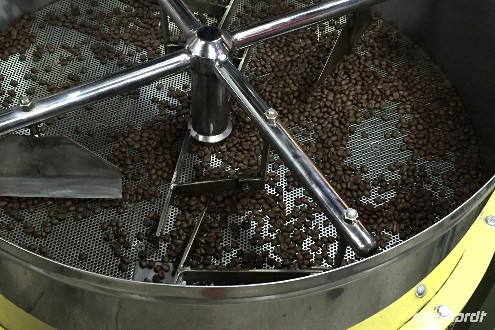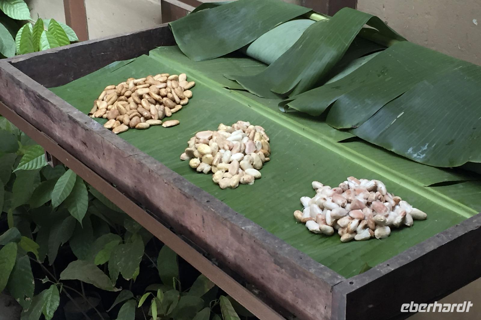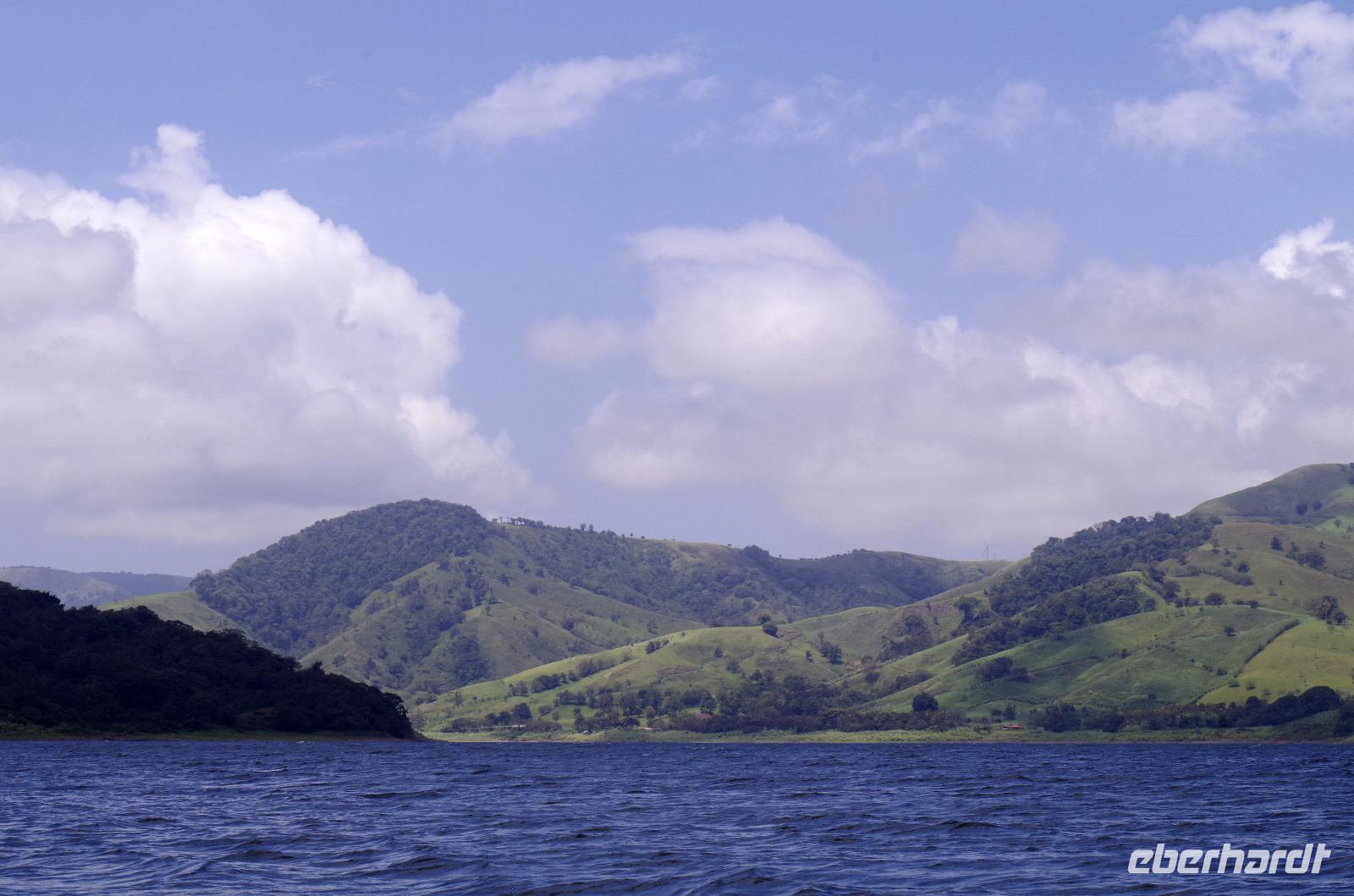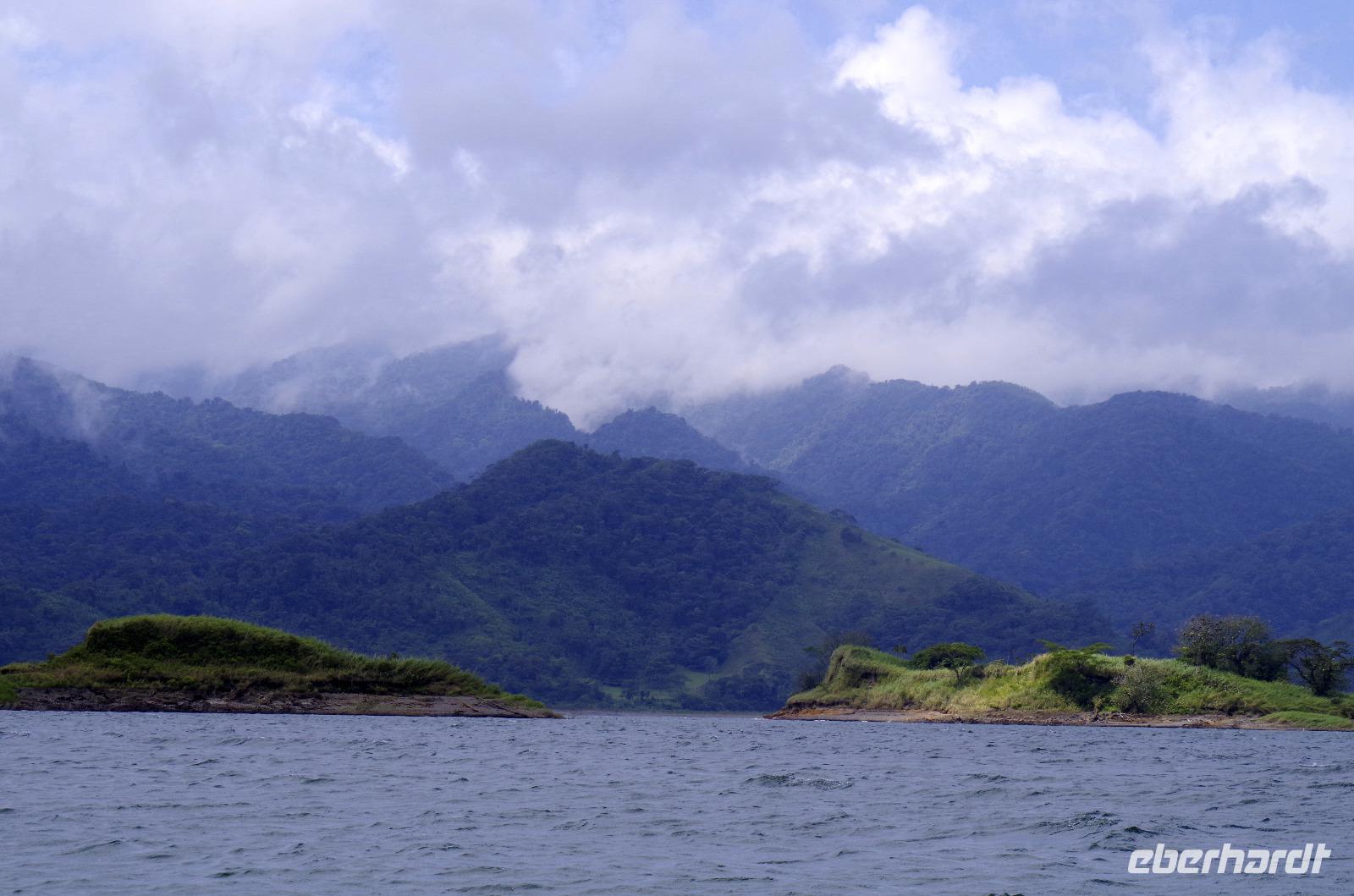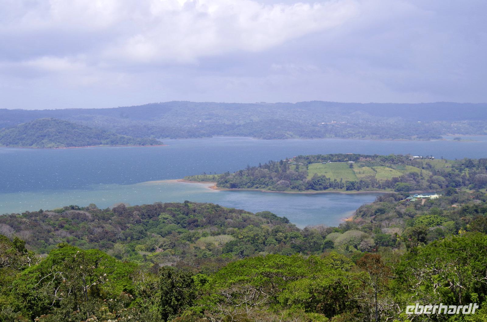 7.30 Uhr ging es los, wir hatten wieder viel vor heute. Und wieder einmal gut durchschütteln bitte! Es gibt einige schlechte Pisten in Costa Rica, man kann auch nicht an allen Stellen von Straßen sprechen. Außer die Fahrten auf der Panamericana waren immer 1A. Unser erster Stopp war das Danaus Eco Center, ein liebevoll angelegter Park, durch den uns Maurice gewohnt kompetent führte. Eine derartige Artenvielfalt ließ uns einfach nur staunen. Immer wieder entdeckten wir neue Tiere in der gepflegten Anlage: im Schmetterlingsgarten, an einem Natursee ... und auch ein Faultier wartete schlafend auf einem Baum am Parkplatz auf uns und rundete auch dieses Tiererlebnis mal wieder ab. Wir fuhren weiter zum Arenal-See. Dort erwartete uns ein Eisvogel zum „Foto-Shooting" und ein Boot zu einer einstündigen Tour auf dem See. Der Nachmittag hielt dann ein paar Leckereien bereit. Bei einer fakultativen Kaffee-, Kakao- und Zuckerrohr-Tour, an der alle teilnahmen, erfuhren wir wichtige Details zu Anbau, Weiterverarbeitung und Zubereitung. Ein Rinderkarren fuhr uns anfangs den Berg hinauf, während kleiner Spaziergänge durch das Areal genossen wir etliche Kostproben von Kakao, Karamell, Schnaps und Kaffee. Natürlich konnte man auch Kaffee in fünf verschiedenen Röstungen kaufen. Weiter ging es in das Mountain Hotel El Establo - es umfasst ein sehr großes Gelände mit vielen Gebäuden, die alle einen zauberhaften Blick auf die Berge und das Tal bieten und mitten im Nebelwald liegt. Das Wetter war hier nun deutlich anders als die letzten Tage. Es nieselte, war sehr viel kühler und es fühlte sich ein wenig an wie in der Waschküche. Die Wege gingen steil bergauf und ein Shuttle brachte uns wieder hinunter zu unserem Reisebus, der uns dann zum Abendessen fuhr, ins Restaurant Tramonti in Monte Verde. Vor- und Nachspeise konnten wir wieder aus verschiedenen leckeren Angeboten wählen, zum Nachtisch gab es Eis. Das geht immer :-)