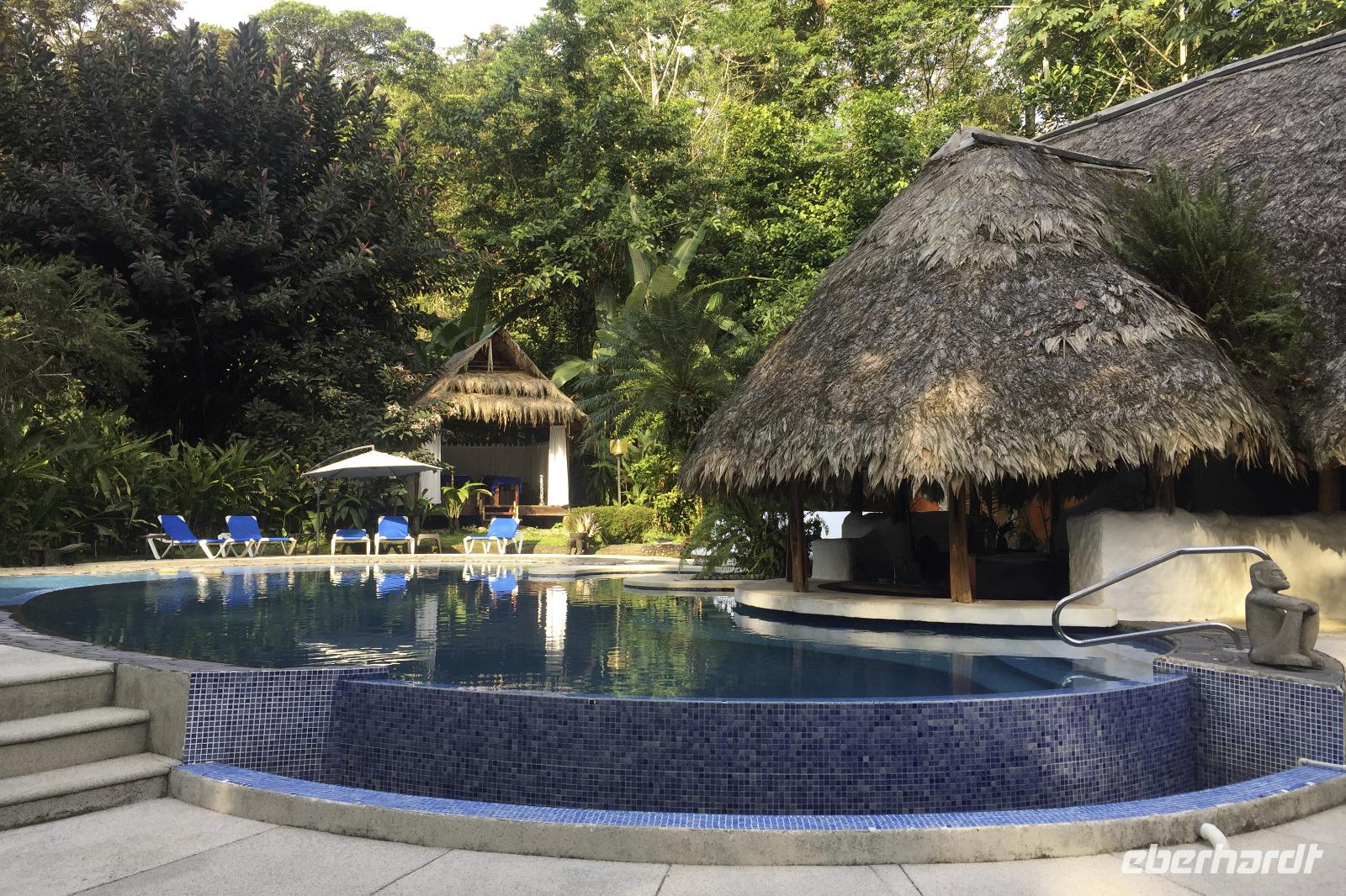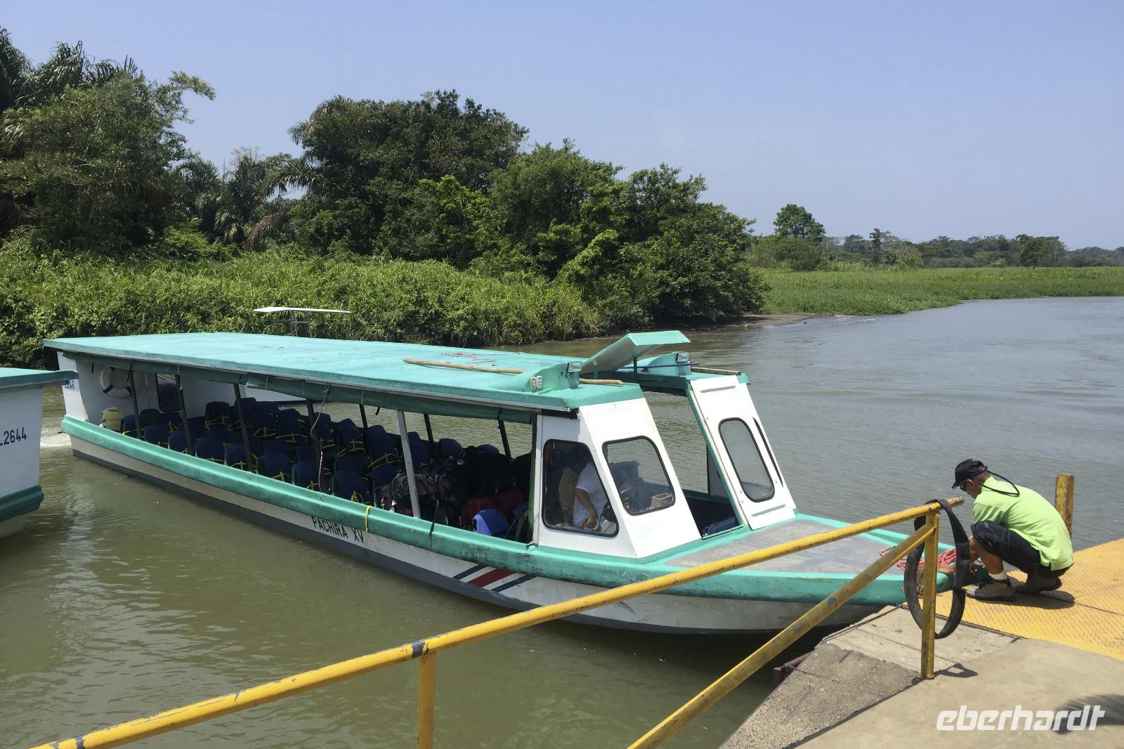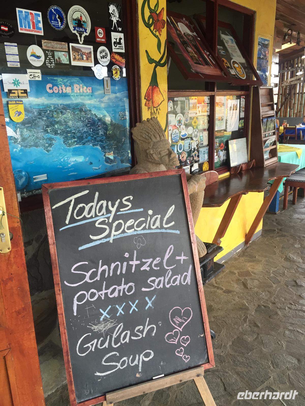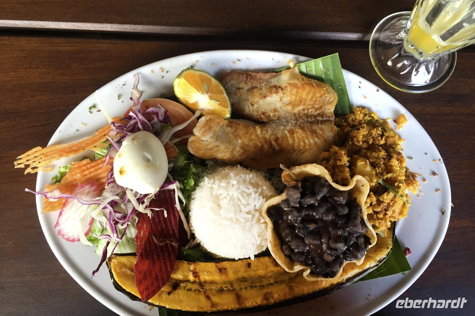 Heute war mal ausschlafen angesagt. Und wegen dem wenigen Gepäck gab es nicht viel Stress mit dem Packen. Nach einem entspannten Frühstück ging es wieder aufs Boot und nach einer zweistündigen, lustigen Fahrt saßen wir wieder in unserem Reisebus. Fahrer Alex war auch wieder genesen, er hatte ja auch 2 Tage frei :-) Wir fuhren zum Mittagessen ins Restaurant Rio Danta, das auch zur Mawamba Lodge gehört. An dieser Stelle sei gesagt: Ich bin sehr froh, dass wir so eine fantastische Reisegruppe waren und auch derart Verhalten des Gastes einer anderen Reisegruppe bei uns in keiner Weise geduldet worden wäre. Alle die dabei waren wissen, was ich meine!