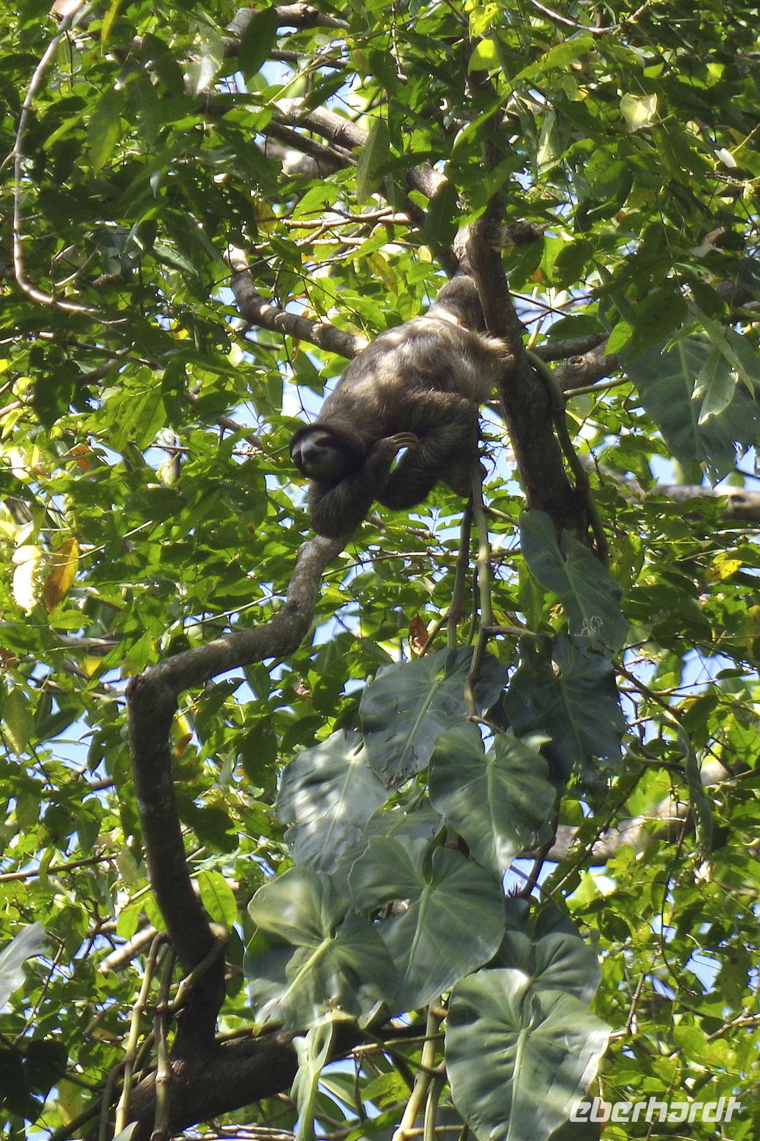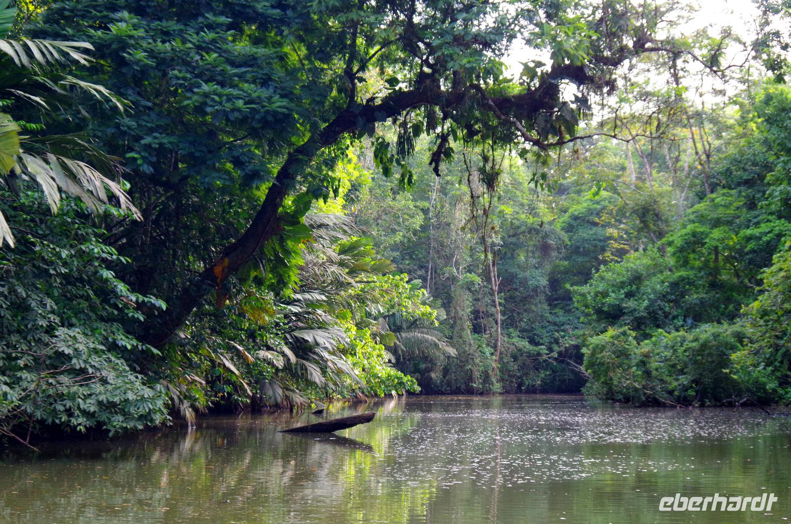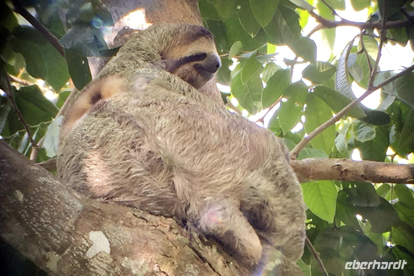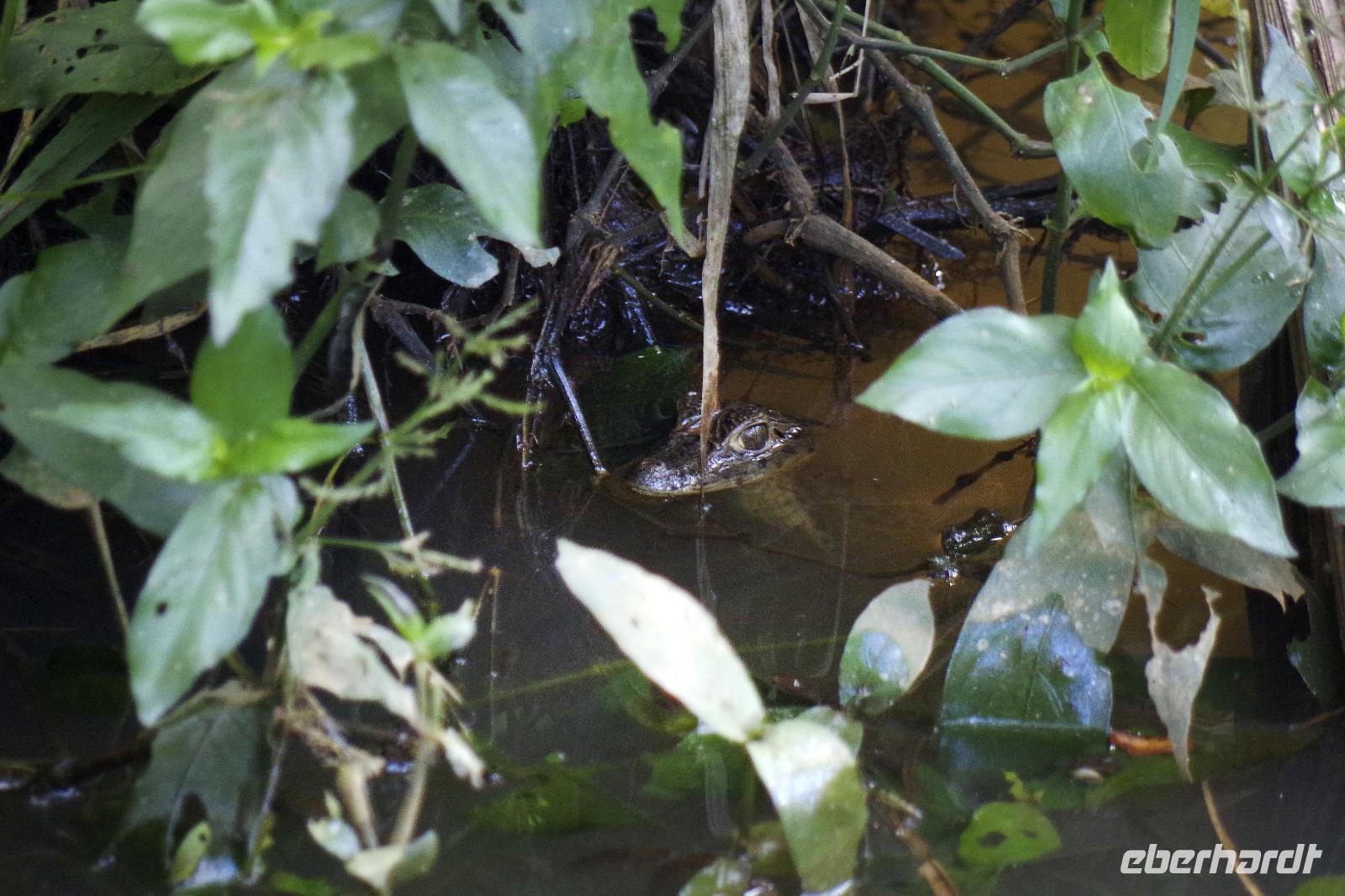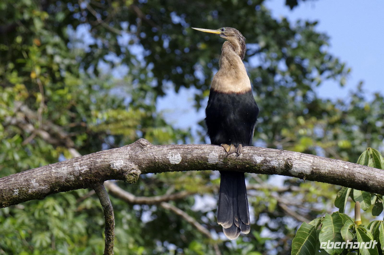 Heute ging es zur Pirsch im Tortuguero-Nationalpark! Nach einem schnellen Kaffee an der Rezeption ging es 6.00 Uhr zur ersten Bootstour. Anschließend gab es Frühstück. Und weiter ging es per Boot in das nahegelegene Dorf Tortuguero. 1400 Menschen leben hier, viele vom Tourismus: Ein kleines buntes Dörfchen mit tollen Souvenirshops, Kokosnüssen zum Trinken und netten Menschen! Zu Fuß ging es zurück in unsere Hotel-Anlage. Dort gab es bald Mittagessen und eine kurze Siesta, bevor es 14.30 Uhr erneut aufs Boot ging, um weitere Tiere, vor allem Vögel, zu entdecken. Dank der guten Augen und dem erfahrenen Blick von Maurice und unserem Bootsführer sahen wir ... > die lange Liste kommt weiter unten :-) Der weitere Nachmittag stand dann ganz im Zeichen von Müßiggang und Entspannung: am Strand, am Fluss, nochmals im Schmetterlings- oder Froschgarten oder einfach in der Hängematte vor dem eigenen Bungalow. Nach dem Abendessen gab es einen zweiten Versuch, Eier legende Schildkröten zu sehen. Es wurde dann ein nachtaktiver Wickelbär, den sieht man ja auch nicht alle Tage. Es war einfach zu trocken, dadurch war es ziemlich heiß am Abend. Beim Einschlafen hörte man dann sogar das Meeresrauschen.