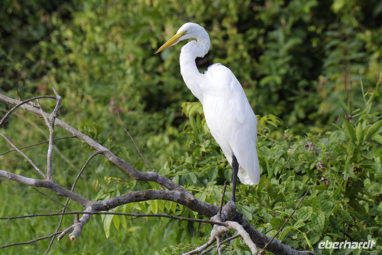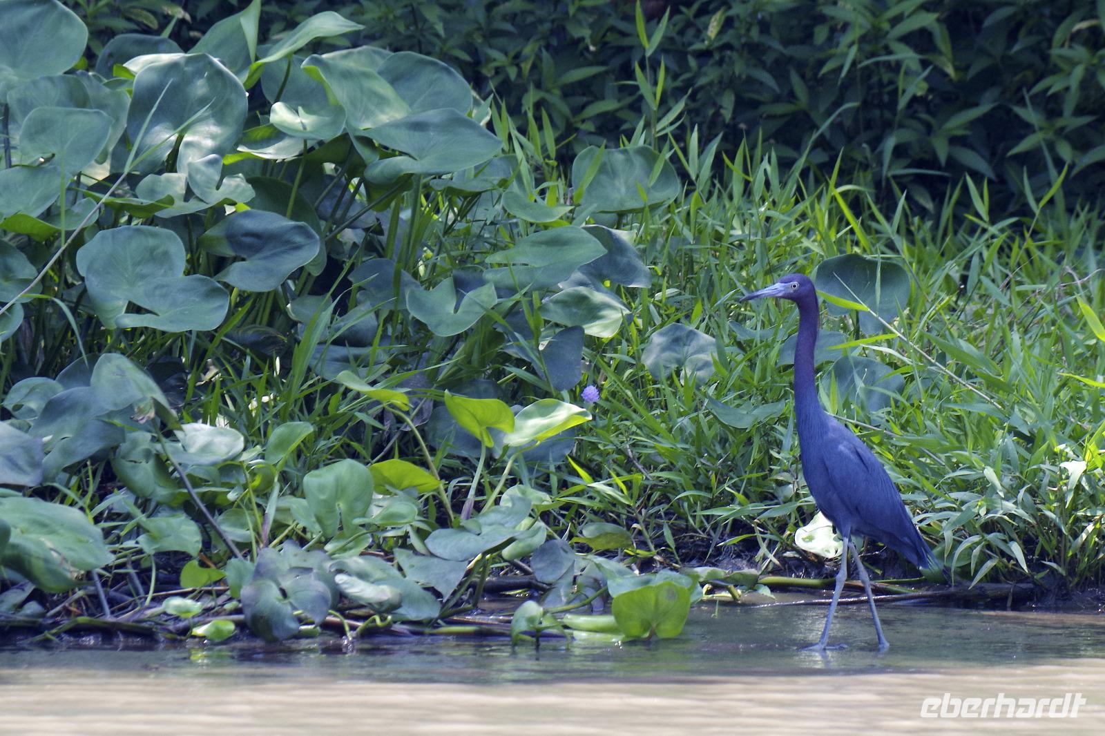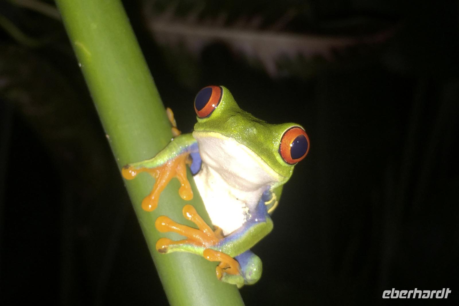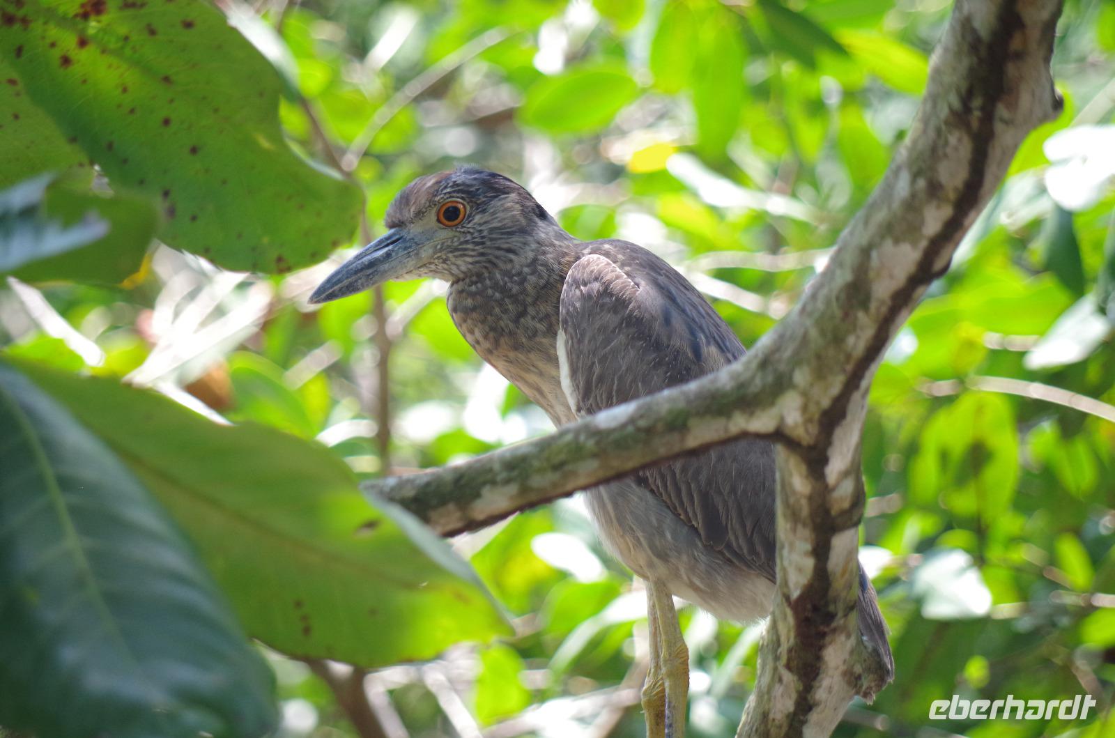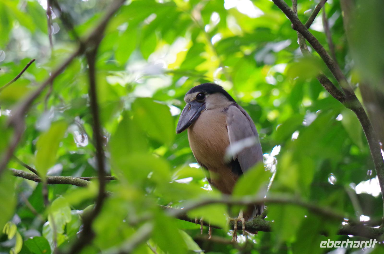 Heute ging es zur Pirsch im Tortuguero-Nationalpark! Nach einem schnellen Kaffee an der Rezeption ging es 6.00 Uhr zur ersten Bootstour. Anschließend gab es Frühstück. Und weiter ging es per Boot in das nahegelegene Dorf Tortuguero. 1400 Menschen leben hier, viele vom Tourismus: Ein kleines buntes Dörfchen mit tollen Souvenirshops, Kokosnüssen zum Trinken und netten Menschen! Zu Fuß ging es zurück in unsere Hotel-Anlage. Dort gab es bald Mittagessen und eine kurze Siesta, bevor es 14.30 Uhr erneut aufs Boot ging, um weitere Tiere, vor allem Vögel, zu entdecken. Dank der guten Augen und dem erfahrenen Blick von Maurice und unserem Bootsführer sahen wir ... > die lange Liste kommt weiter unten :-) Der weitere Nachmittag stand dann ganz im Zeichen von Müßiggang und Entspannung: am Strand, am Fluss, nochmals im Schmetterlings- oder Froschgarten oder einfach in der Hängematte vor dem eigenen Bungalow. Nach dem Abendessen gab es einen zweiten Versuch, Eier legende Schildkröten zu sehen. Es wurde dann ein nachtaktiver Wickelbär, den sieht man ja auch nicht alle Tage. Es war einfach zu trocken, dadurch war es ziemlich heiß am Abend. Beim Einschlafen hörte man dann sogar das Meeresrauschen.
