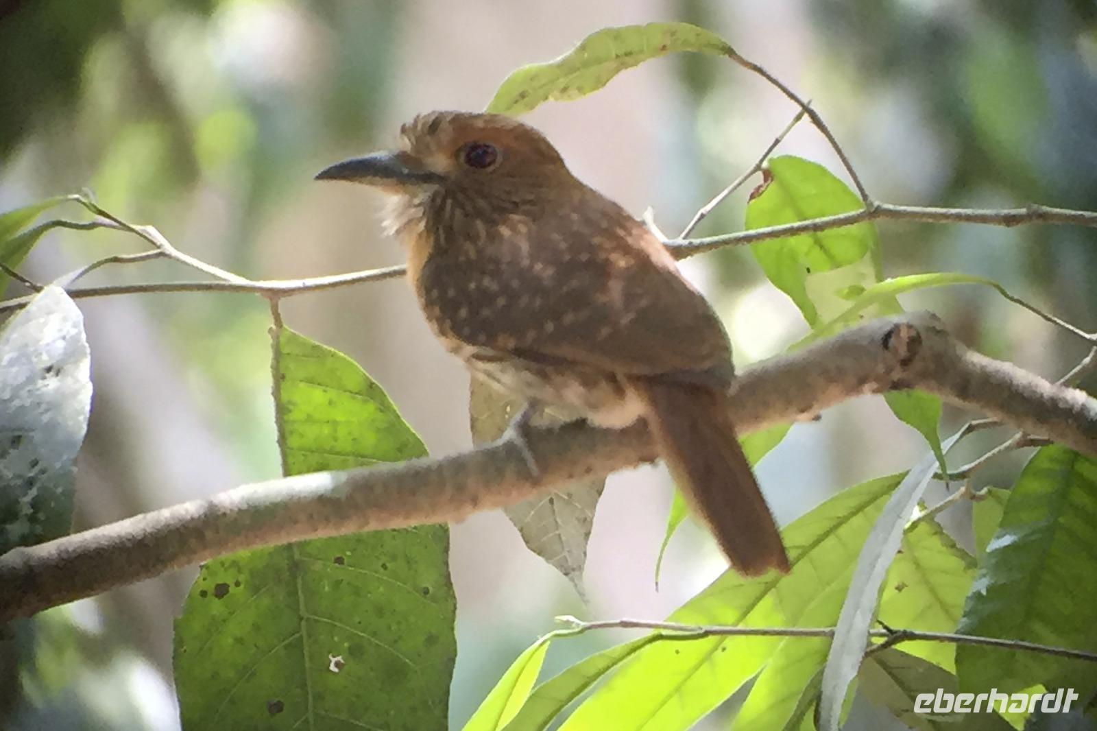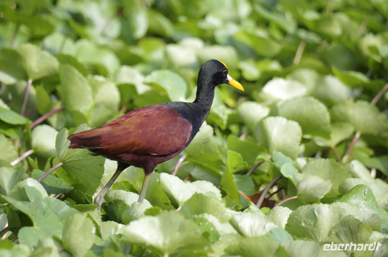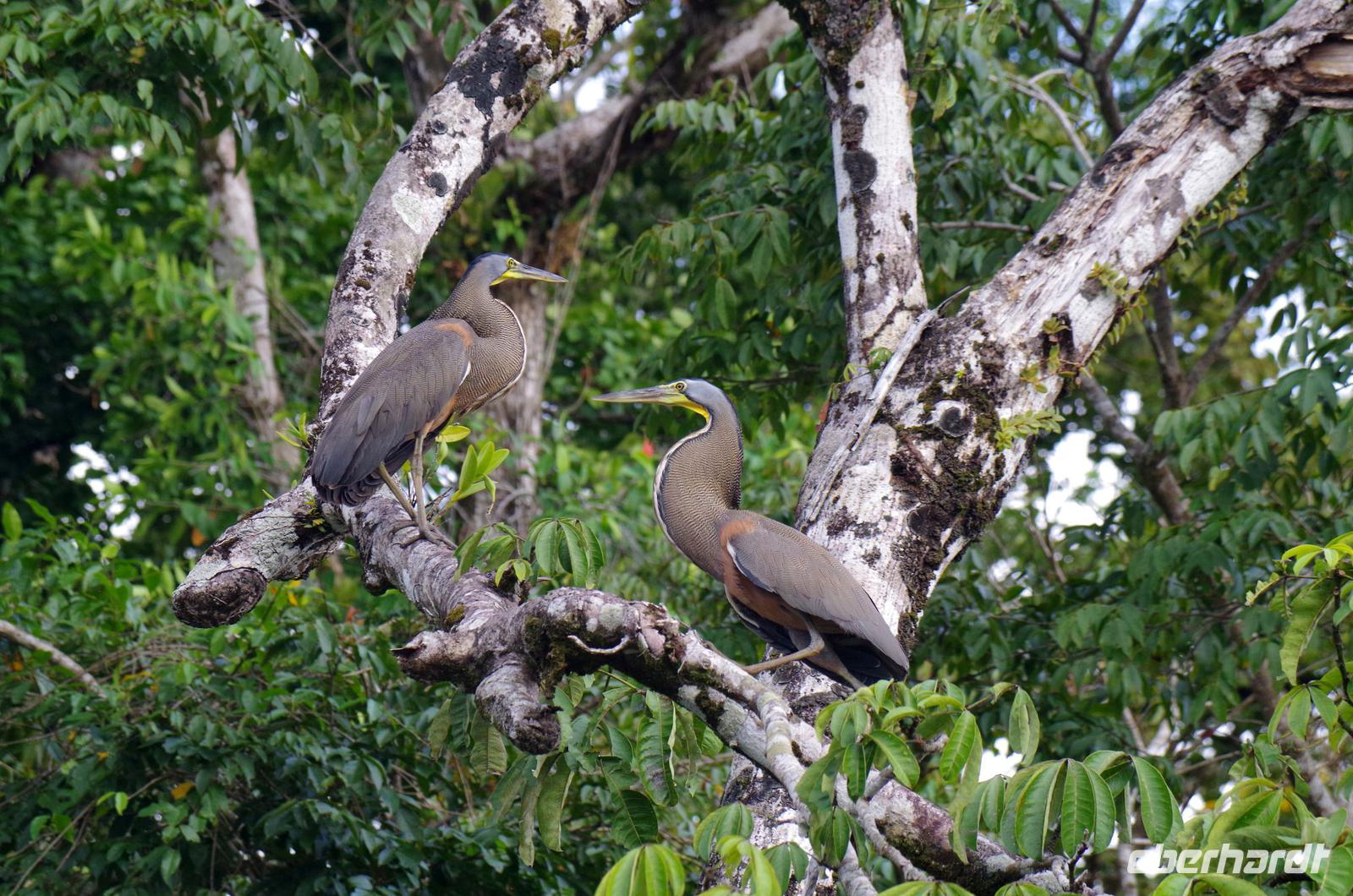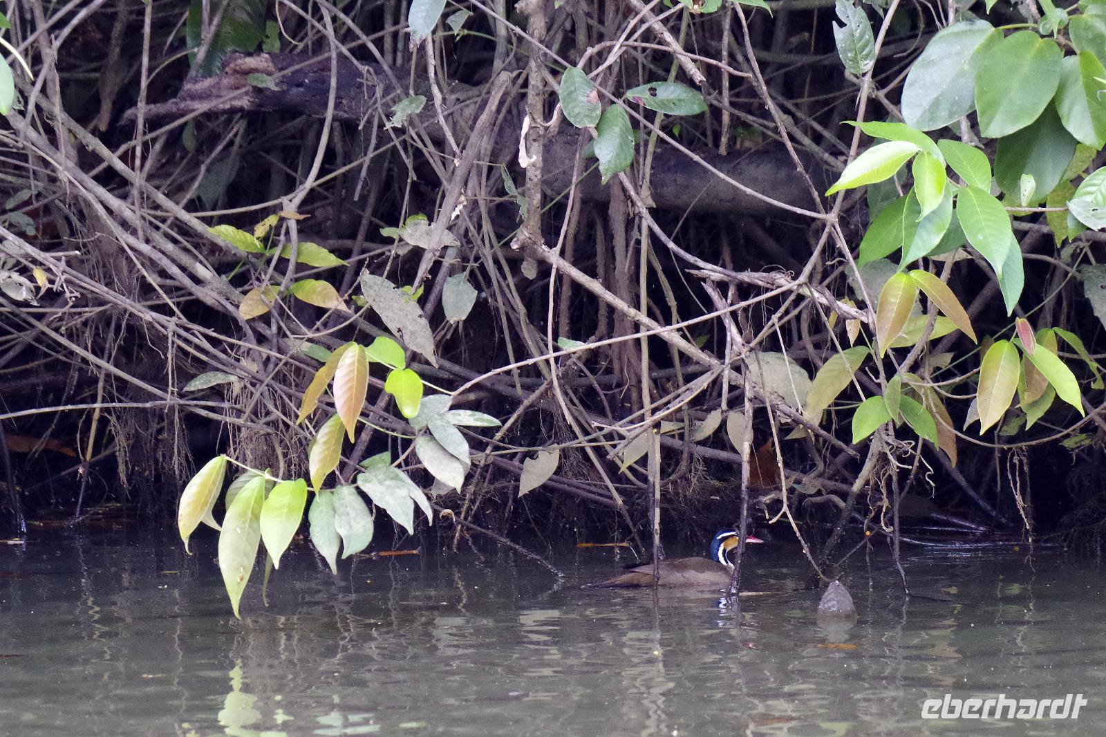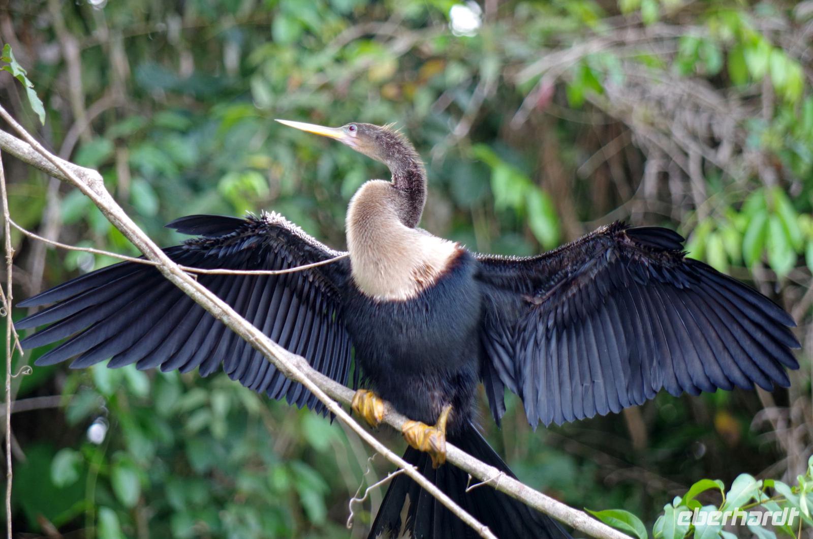Heute ging es zur Pirsch im Tortuguero-Nationalpark! Nach einem schnellen Kaffee an der Rezeption ging es 6.00 Uhr zur ersten Bootstour. Anschließend gab es Frühstück. Und weiter ging es per Boot in das nahegelegene Dorf Tortuguero. 1400 Menschen leben hier, viele vom Tourismus: Ein kleines buntes Dörfchen mit tollen Souvenirshops, Kokosnüssen zum Trinken und netten Menschen! Zu Fuß ging es zurück in unsere Hotel-Anlage. Dort gab es bald Mittagessen und eine kurze Siesta, bevor es 14.30 Uhr erneut aufs Boot ging, um weitere Tiere, vor allem Vögel, zu entdecken. Dank der guten Augen und dem erfahrenen Blick von Maurice und unserem Bootsführer sahen wir ... > die lange Liste kommt weiter unten :-) Der weitere Nachmittag stand dann ganz im Zeichen von Müßiggang und Entspannung: am Strand, am Fluss, nochmals im Schmetterlings- oder Froschgarten oder einfach in der Hängematte vor dem eigenen Bungalow. Nach dem Abendessen gab es einen zweiten Versuch, Eier legende Schildkröten zu sehen. Es wurde dann ein nachtaktiver Wickelbär, den sieht man ja auch nicht alle Tage. Es war einfach zu trocken, dadurch war es ziemlich heiß am Abend. Beim Einschlafen hörte man dann sogar das Meeresrauschen.