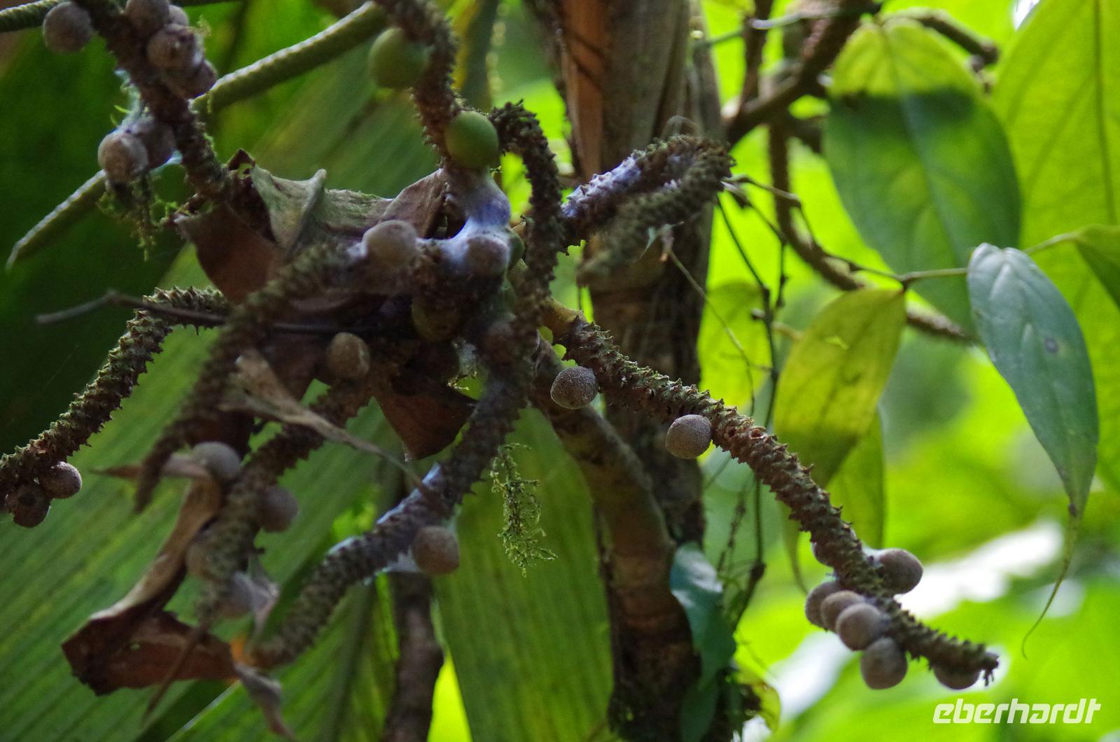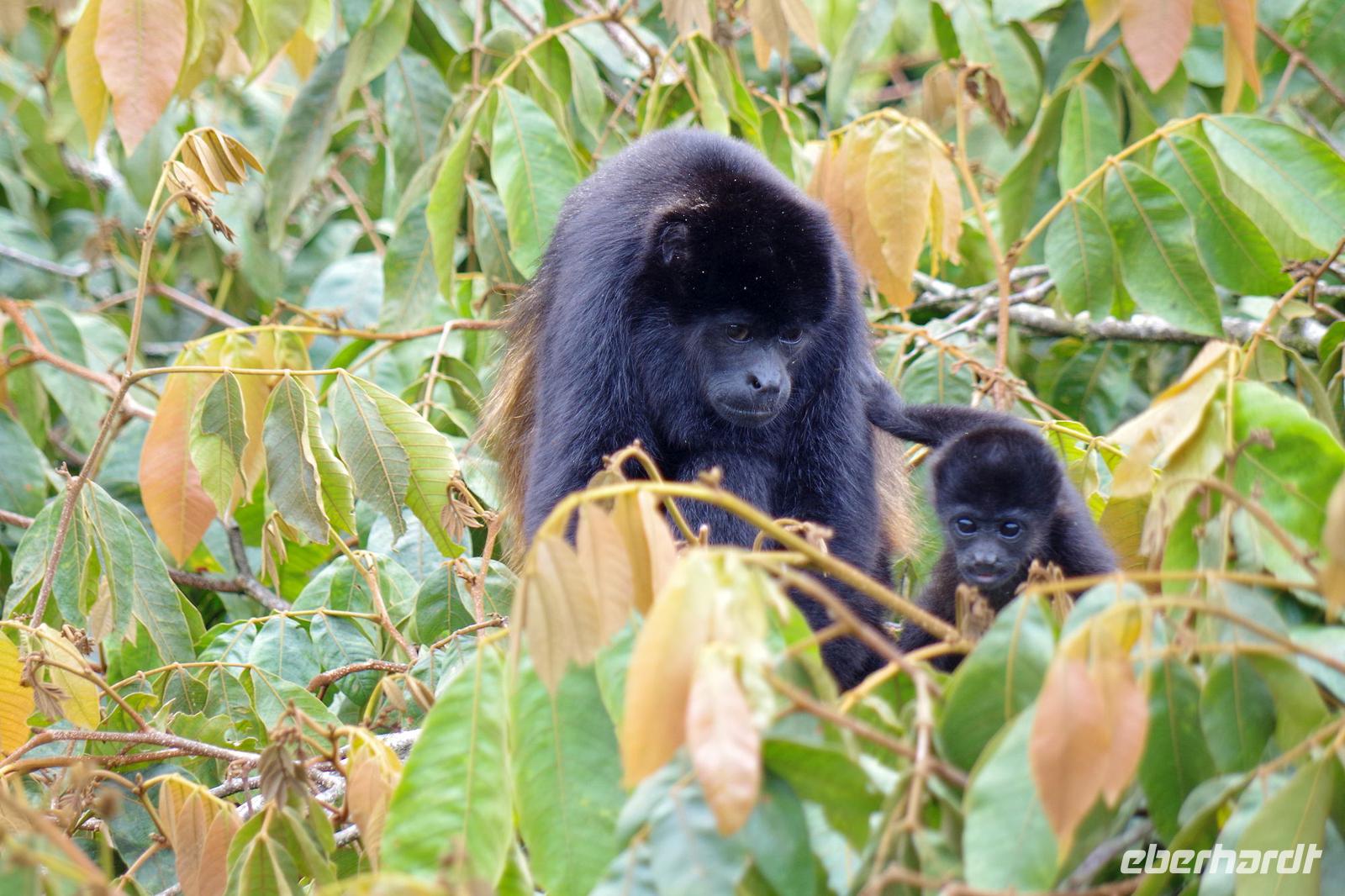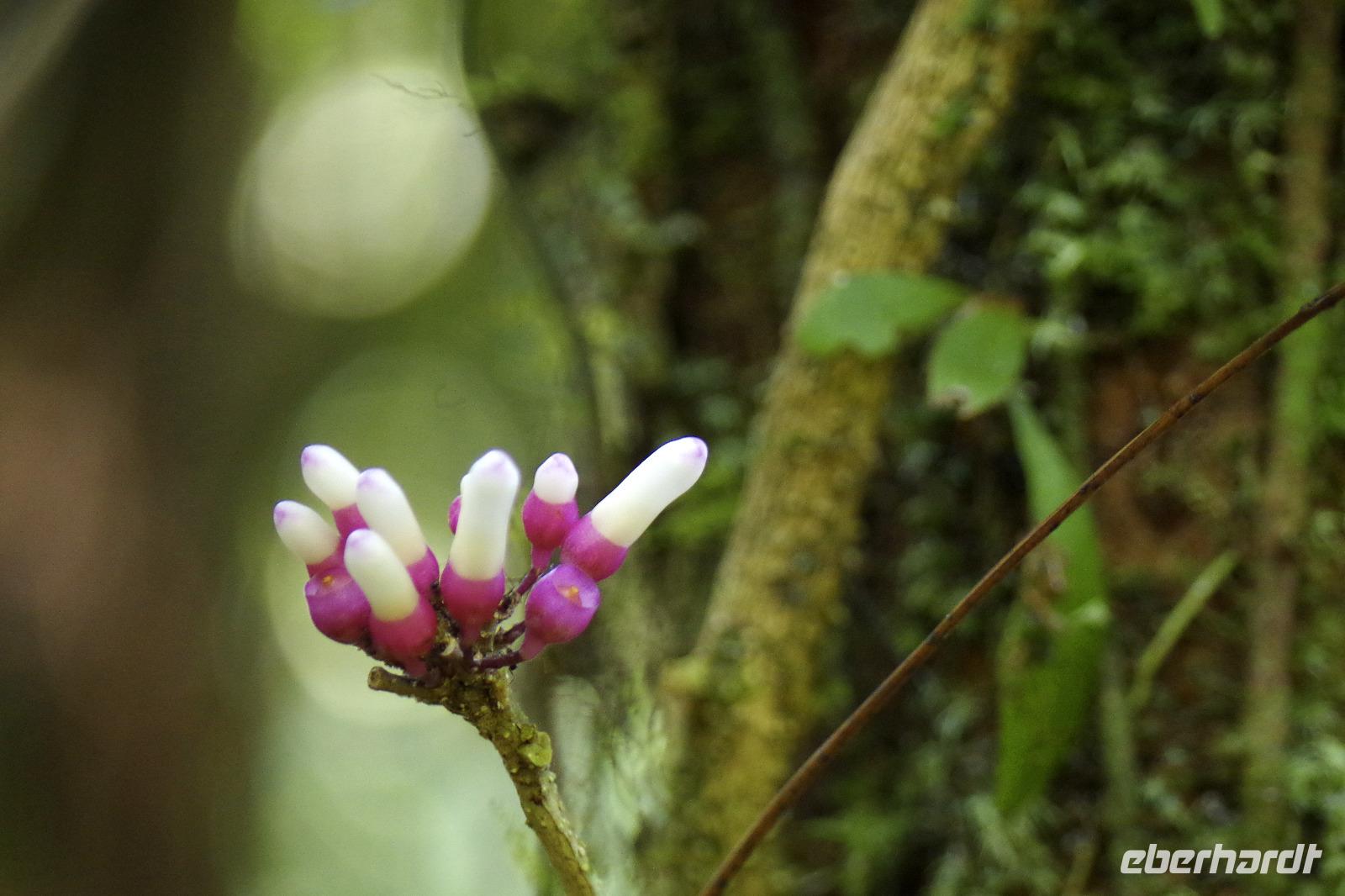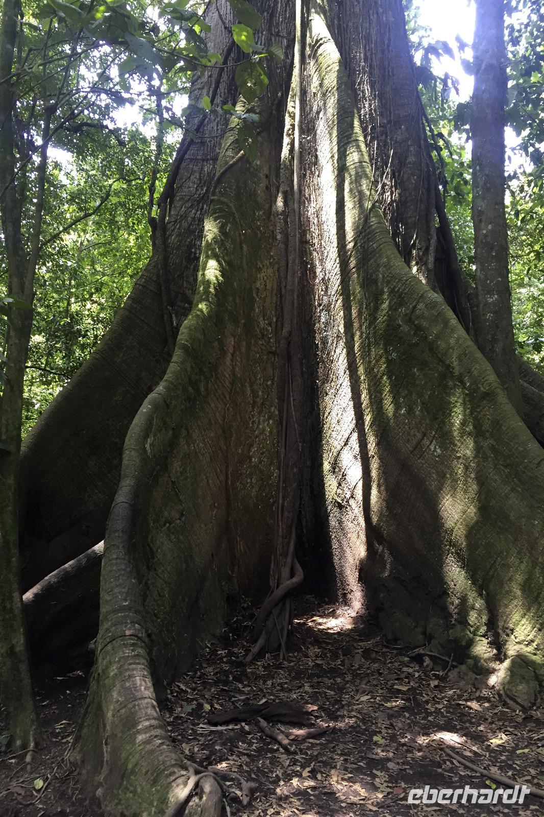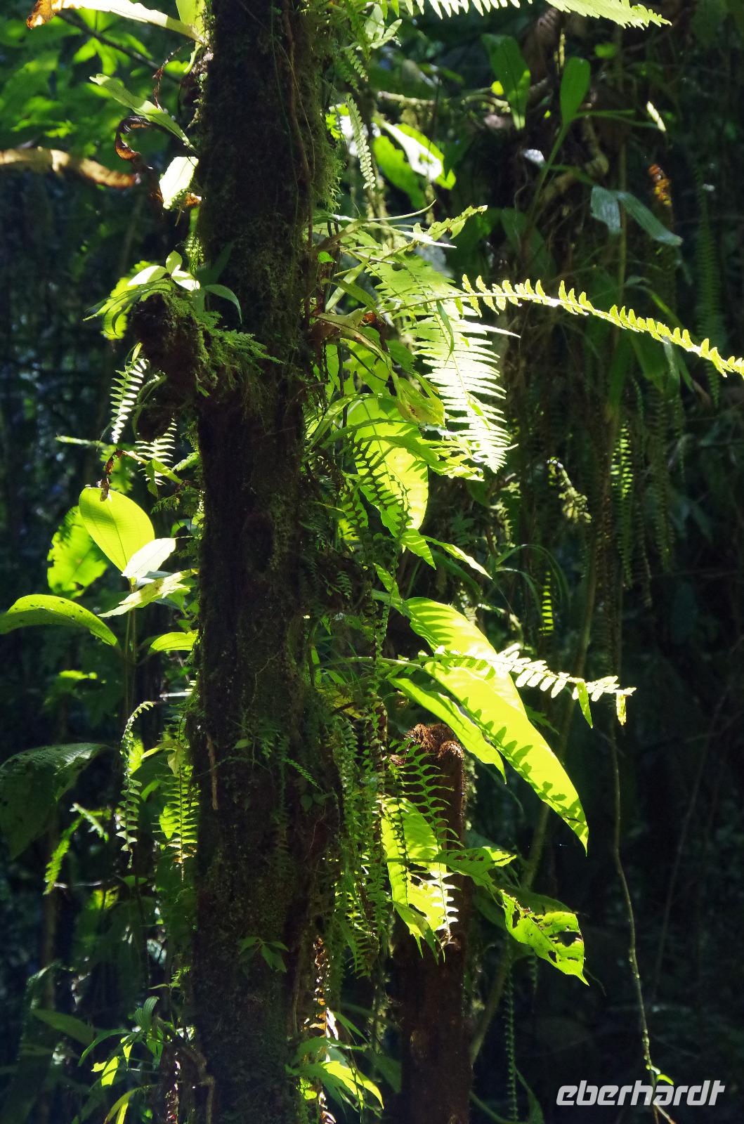 8.30 Uhr ging es heute, deutlich wärmer und wasserdichter angezogen als beim Rest der Reise, in das Naturschutzgebiet Santa Elena in 1.800 Metern Höhe. Wir befanden uns mitten im Nebelwald und durch Nebelschwaden und viel Wasserdunst wirkte alles sehr mystisch. Allzu viele Tiere konnten wir nicht entdecken. Aber die Pflanzenwelt barg ein paar neue Exemplare, die wir zuvor noch nicht gesehen hatten. Weiter ging unsere holprige Fahrt zum sogenannten Skywalk. Über sieben Hängebrücken führte ein ebenso mystischer Wanderweg durch Flora und Fauna. Eigentlich dürfen nur zehn Personen eine Brücke zeitgleich überqueren, aber eine Horde Brüllaffen hielt sich nicht daran, als wir schon fotografierend auf dieser standen :-) Sie turnten und kletterten die Seile entlang ... so nah und frei von Blättern, Ästen und Zweigen hatten wir sie nie gesehen und fotografiert. In diesem Areal versuchten wir auch den Quetzal, einen ganz besonderen Vogel, zu sichten. Reiseleiter Maurice ahmte ihre Rufe nach und höre da, es antwortete jemand, schnell in die Richtung gelaufen ... tja, blöderweise hatte ein anderer Reiseleiter „geantwortet". :-) So sahen wir leider nur die Brutlöcher der seltenen Vögel. Dafür hörten wir den Glockenvogel!