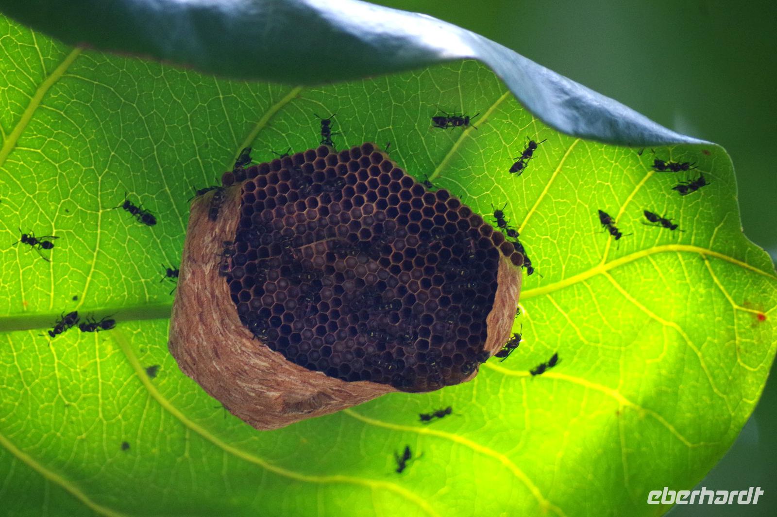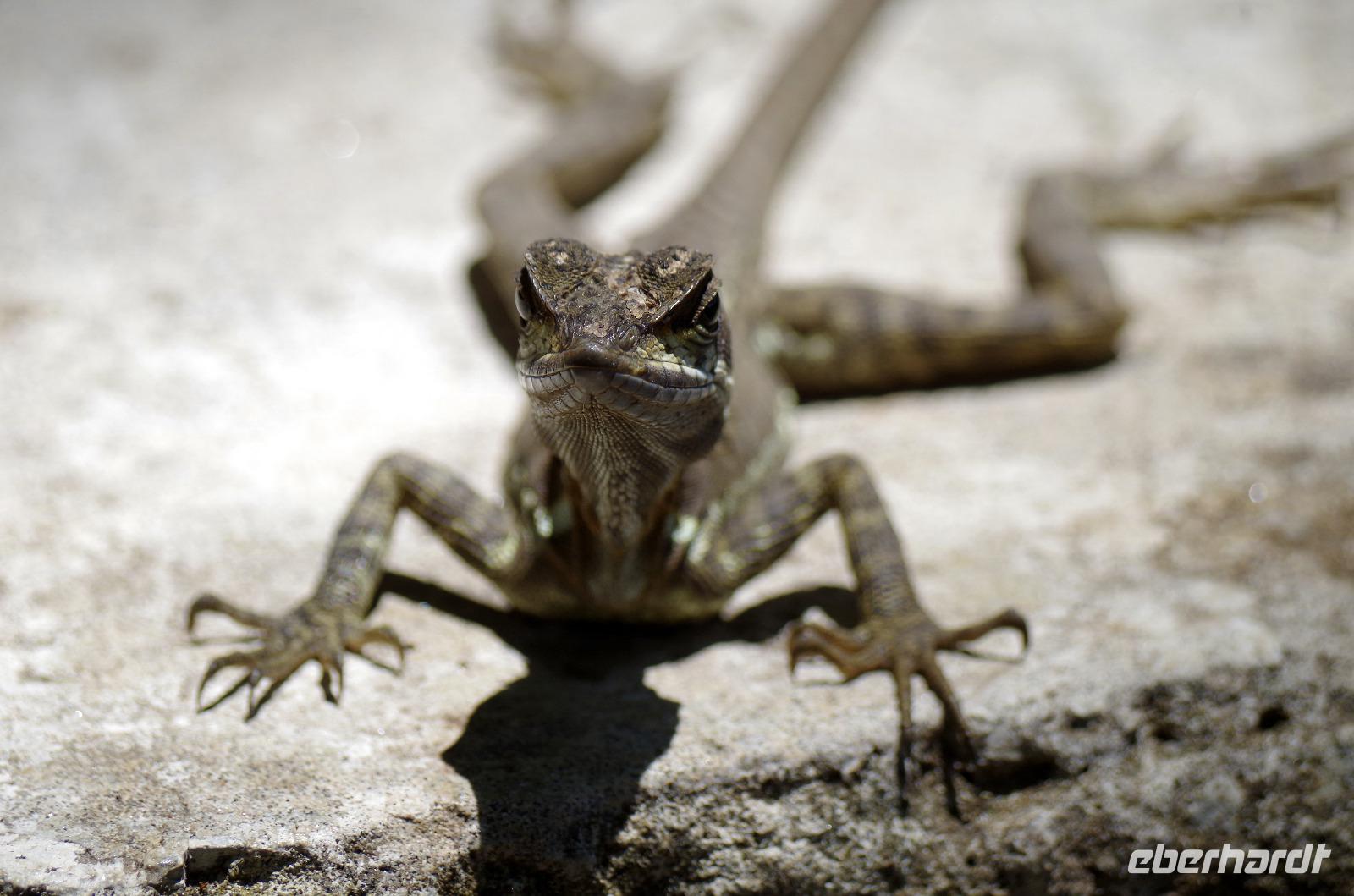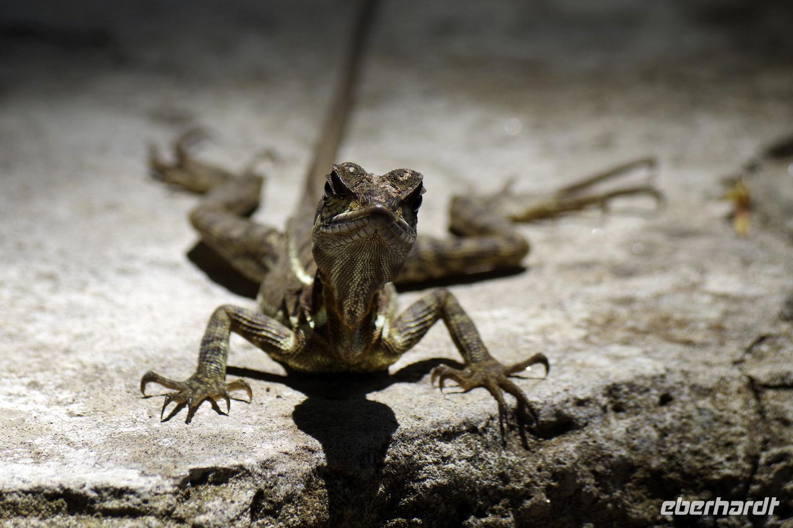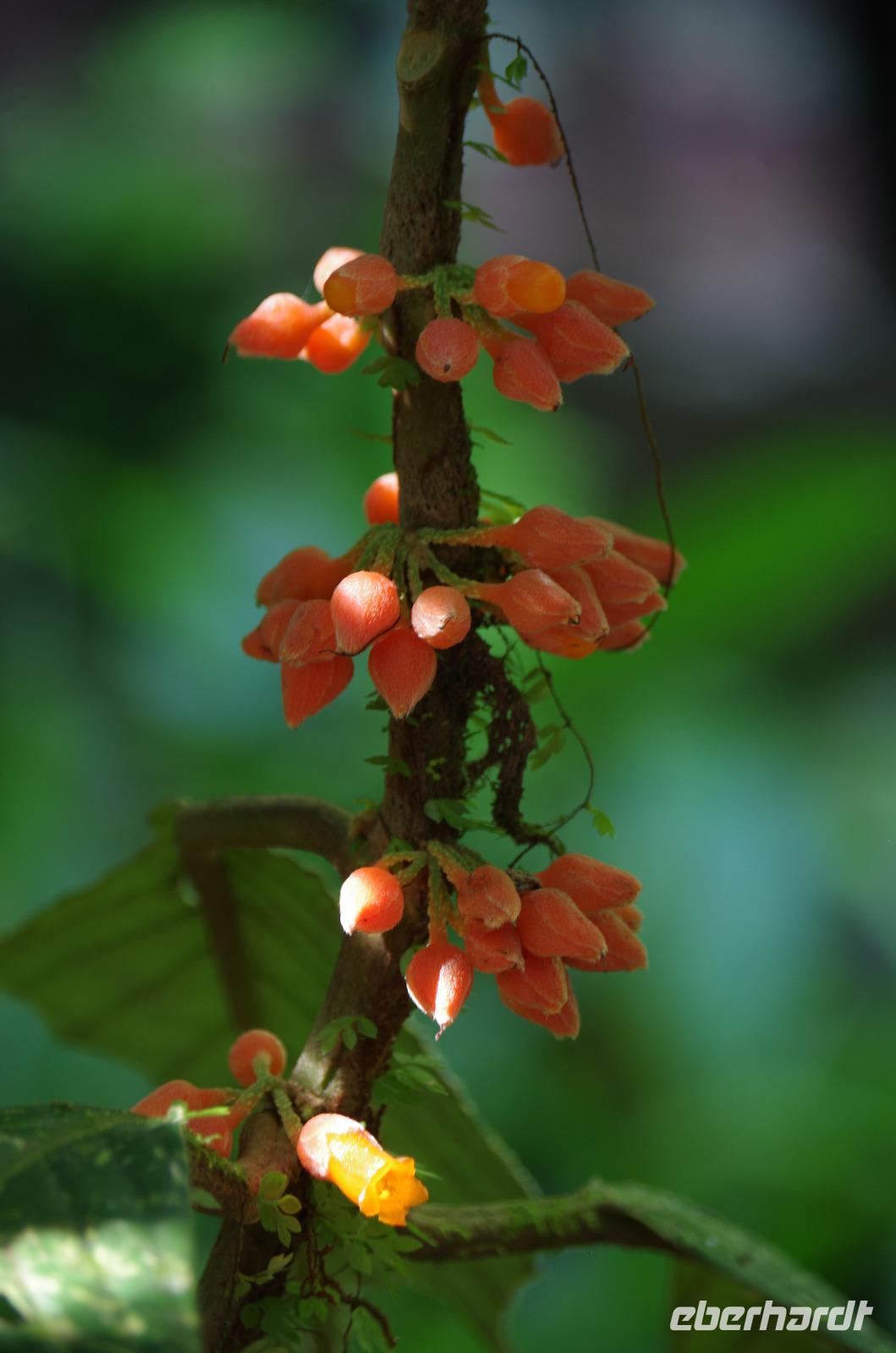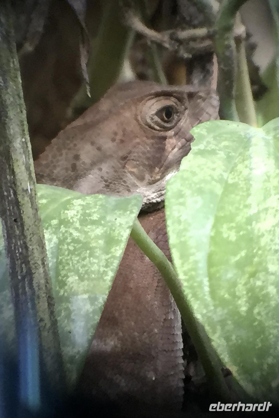 8.30 Uhr ging es heute, deutlich wärmer und wasserdichter angezogen als beim Rest der Reise, in das Naturschutzgebiet Santa Elena in 1.800 Metern Höhe. Wir befanden uns mitten im Nebelwald und durch Nebelschwaden und viel Wasserdunst wirkte alles sehr mystisch. Allzu viele Tiere konnten wir nicht entdecken. Aber die Pflanzenwelt barg ein paar neue Exemplare, die wir zuvor noch nicht gesehen hatten. Weiter ging unsere holprige Fahrt zum sogenannten Skywalk. Über sieben Hängebrücken führte ein ebenso mystischer Wanderweg durch Flora und Fauna. Eigentlich dürfen nur zehn Personen eine Brücke zeitgleich überqueren, aber eine Horde Brüllaffen hielt sich nicht daran, als wir schon fotografierend auf dieser standen :-) Sie turnten und kletterten die Seile entlang ... so nah und frei von Blättern, Ästen und Zweigen hatten wir sie nie gesehen und fotografiert. In diesem Areal versuchten wir auch den Quetzal, einen ganz besonderen Vogel, zu sichten. Reiseleiter Maurice ahmte ihre Rufe nach und höre da, es antwortete jemand, schnell in die Richtung gelaufen ... tja, blöderweise hatte ein anderer Reiseleiter „geantwortet". :-) So sahen wir leider nur die Brutlöcher der seltenen Vögel. Dafür hörten wir den Glockenvogel!
