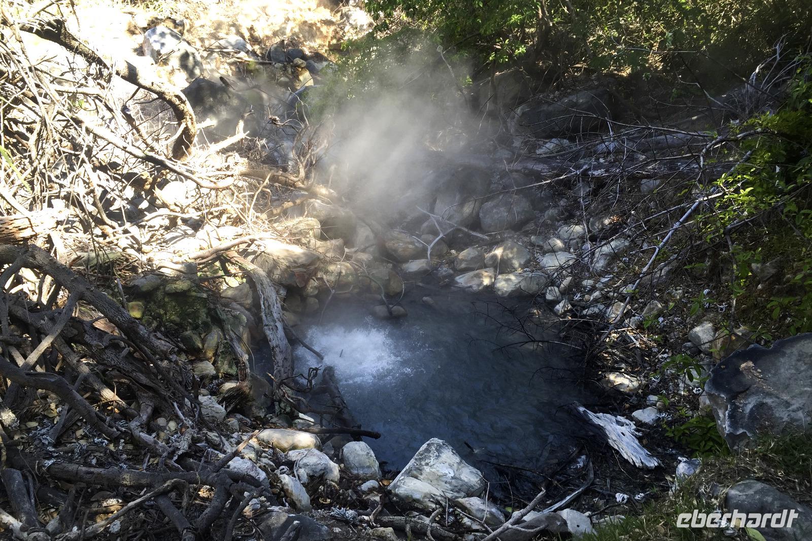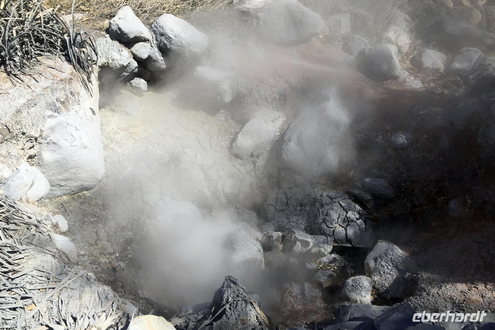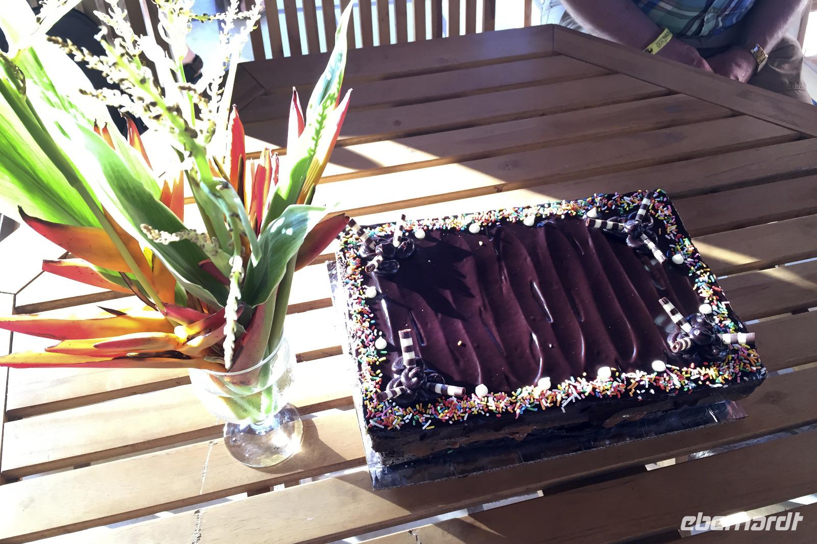 Es war Karfreitag und der Osterhase war im Bus - na ein Glück keine Versteckspiele bei der Wärme. 8.00 Uhr starteten wir zu unserer morgendlichen Wanderung, je später es wurde, desto heißer wurde es auch. Da unser Reiseleiter allergisch auf die Schwefeldämpfe reagiert, blieb er in der Hotelanlage und Busfahrer Alex und ich begleiteten die Gruppe. Viele Tiere waren leider nicht unterwegs in diesem Nationalpark. Wir sahen die Fumarolen, aber viel mehr auch nicht. Mittagessen in der Hacienda vom Buffet. 14.30 Uhr fuhren wir dann zum Rio Negro, zu den heißen Quellen. Mit Schlamm einschmieren, abwechselnd kaltes und warmes Wasser, ja ich denke das fetzt jemandem, der mit dem Kreislauf alles in Ordnung hat. ;-) 17.00 Uhr trafen wir uns dann zwischen Pool und Rezeption für einen kleinen Geburtstags-Nachmittags-Überraschungs-Kuchen mit Kaffee. Ein Reisegästin feierte mit uns und wir gern mit ihr. :-) Sehr lecker der Schoko-Monster-Kuchen mit extra Schokoladensauce und bunten Zuckerperlen bei Vollverpflegung an diesem Tag. Zwischen Zuckerschock und Abendessen ließen uns dann Reiseleiter und Busfahrer an ihrem Stolz über ihre Nationalmannschaft teilhaben. Gegen Jamaika stand ein WM-Quali-Spiel in der Nord- und Mittelamerika-Sparte an. Dank eines Unentschiedens beruhigten sich die zwei dann auch wieder. Nicht auszumalen, was bei einer Niederlage passiert wäre und was für eine Stimmung geherrscht hätte. :-)